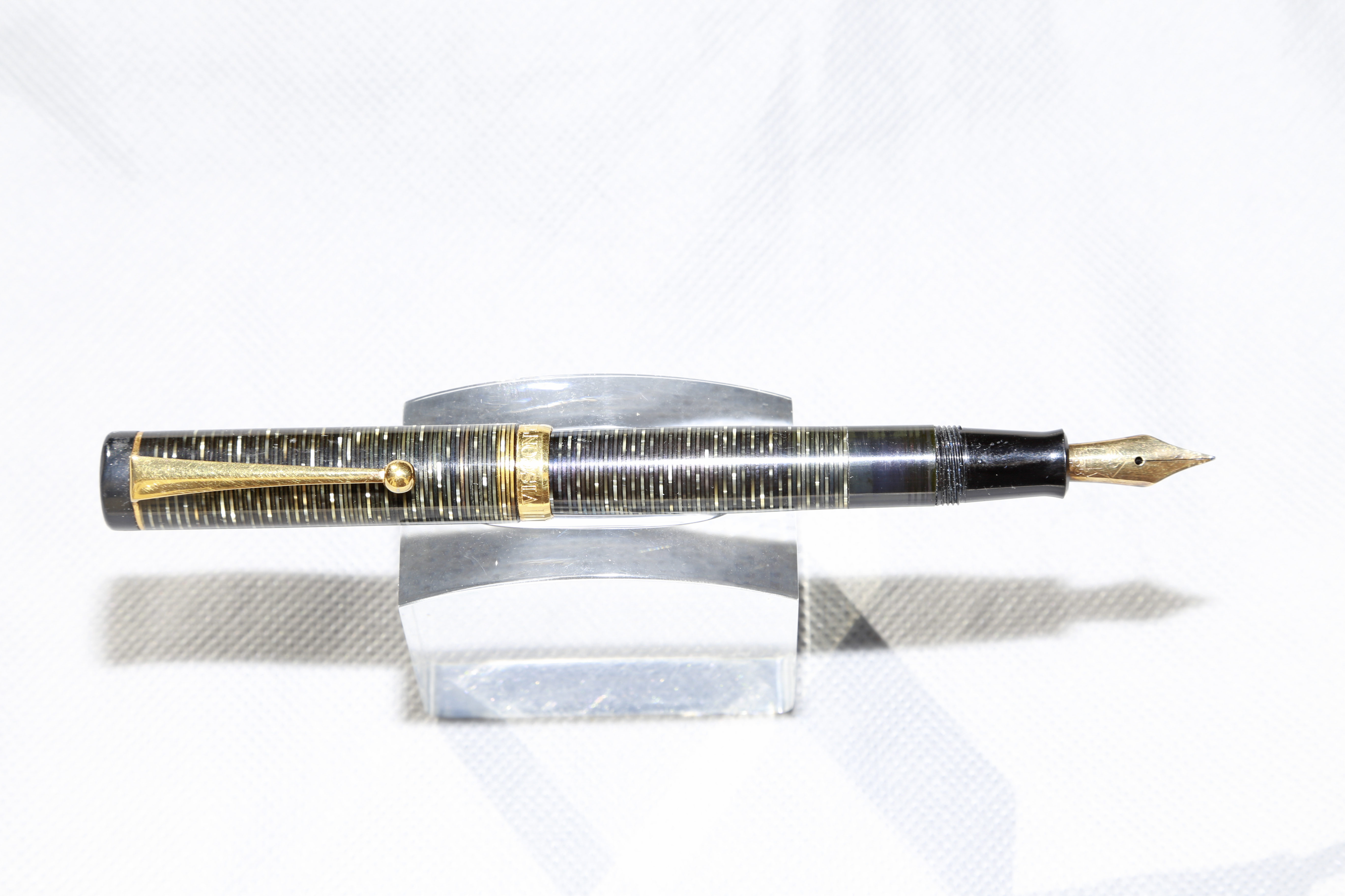 Nel caso però di questa penna e di altre vennero usate barre di celluloide degli anni 30 come mi ha scritto la gentilissima sig.ra Trovatelli di Visconti che avevo contattato a causa di mie perplessità sull'originalità del pennino che è completamente diverso da quello dell'altra D'Essai che possiedo