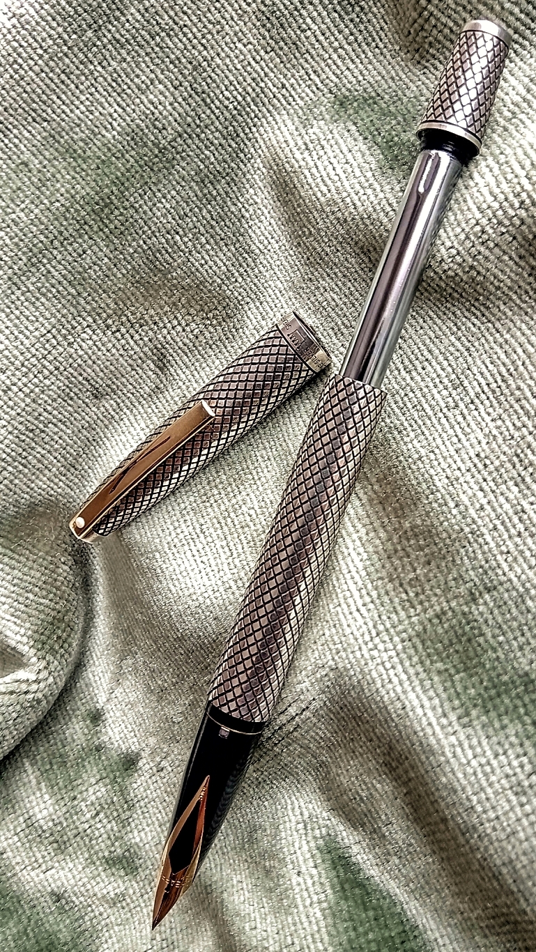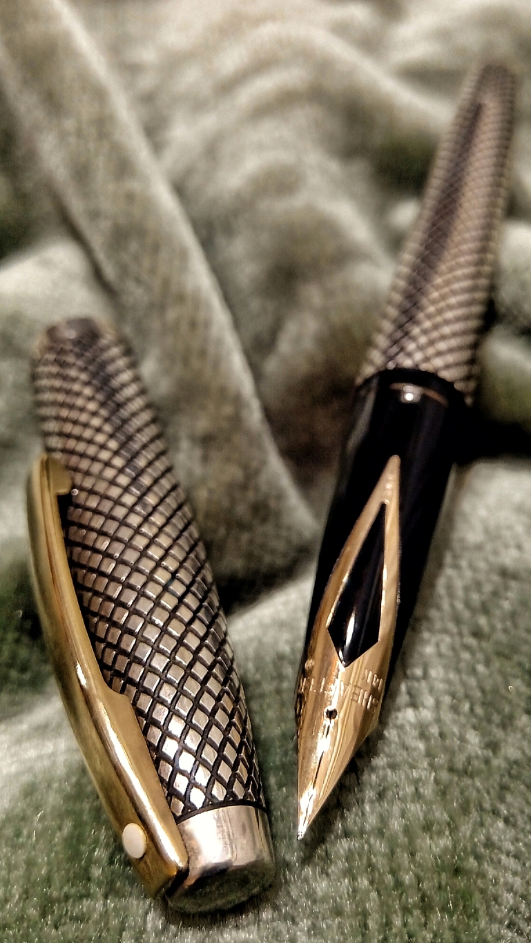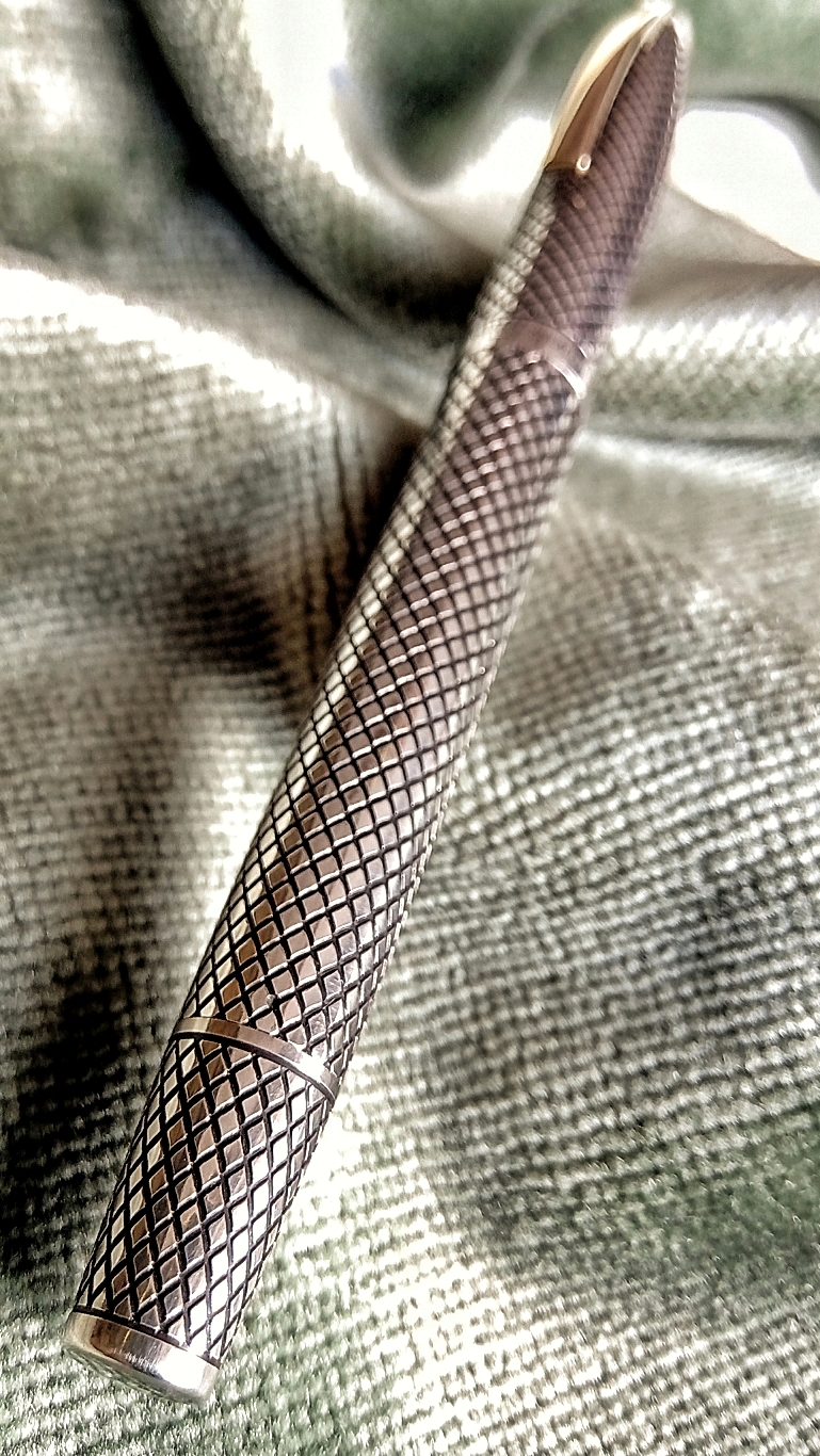 And ending with that wonderful diamond-shaped engraving design, which comes out of the rigidity of Parker's orthogonal engraving, giving the pen a more stylized and colorful design...