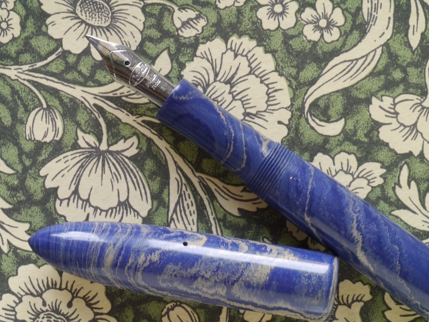 (ecco un altro esempio, una Ranga 8B in ebanite bianca e blu - il pennino è Bock, a vite, quindi lo puoi cambiare con qualsiasi altro pennino Bock)
