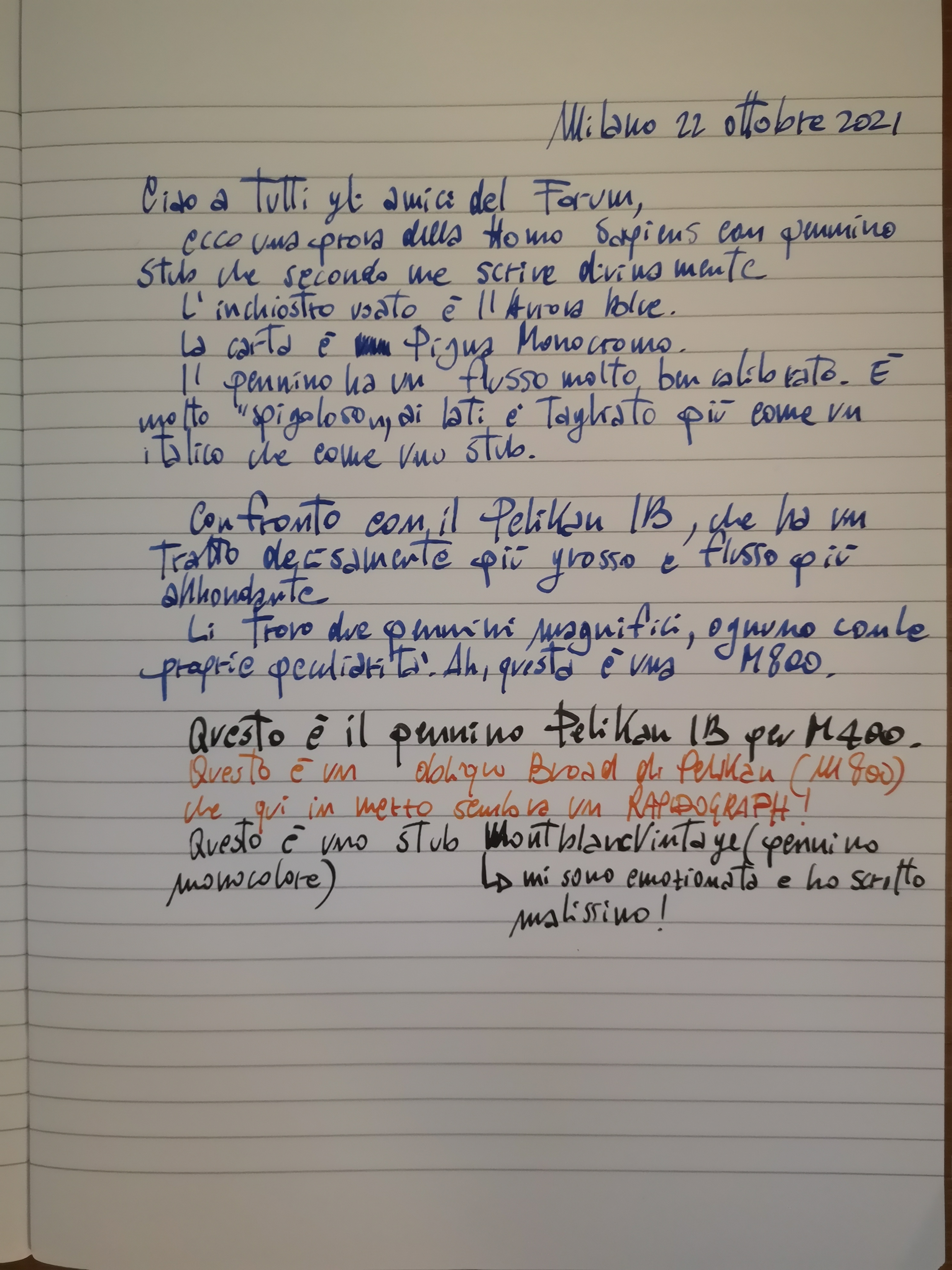 Ne ho avuta una con pennino F che scriveva come un broad, ora ne ho una con pennino M che scrive come un triplo broad…![]()