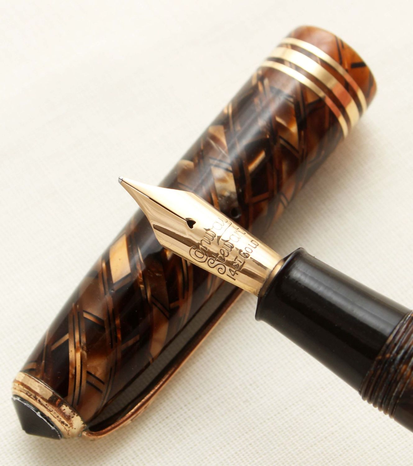 Volevo condividere con voi alcune immagini della splendida (a mio parere) celluloide denominata Tiger Eye che non sono riuscito a capire se si tratti di un esclusiva Conway Stewart oppure altre case l'hanno utilizzata.