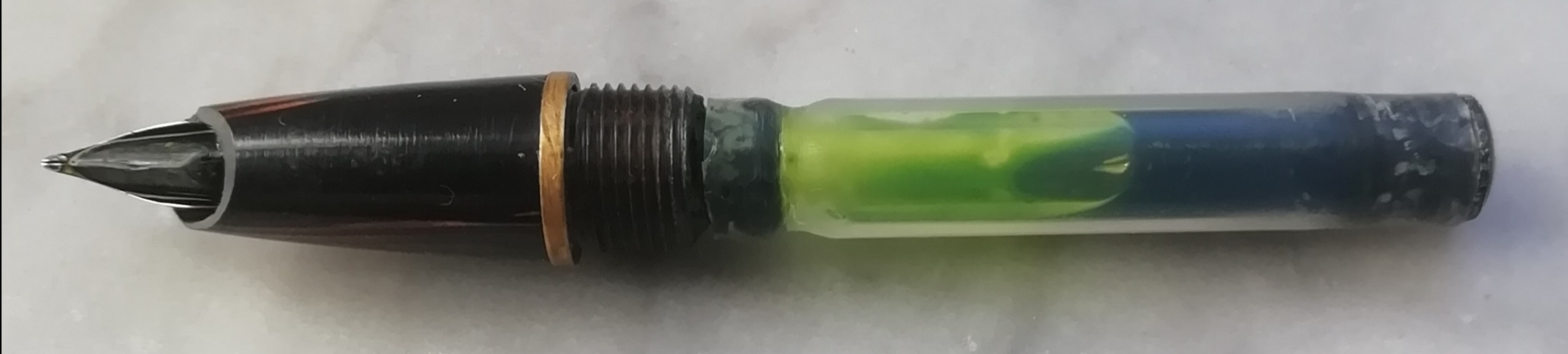 Le due estremità le ho lavorate con cutter e lima per ridurne lo spessore. Quella fotografata è la quantità di inchiostro che più o meno si riesce a caricare.