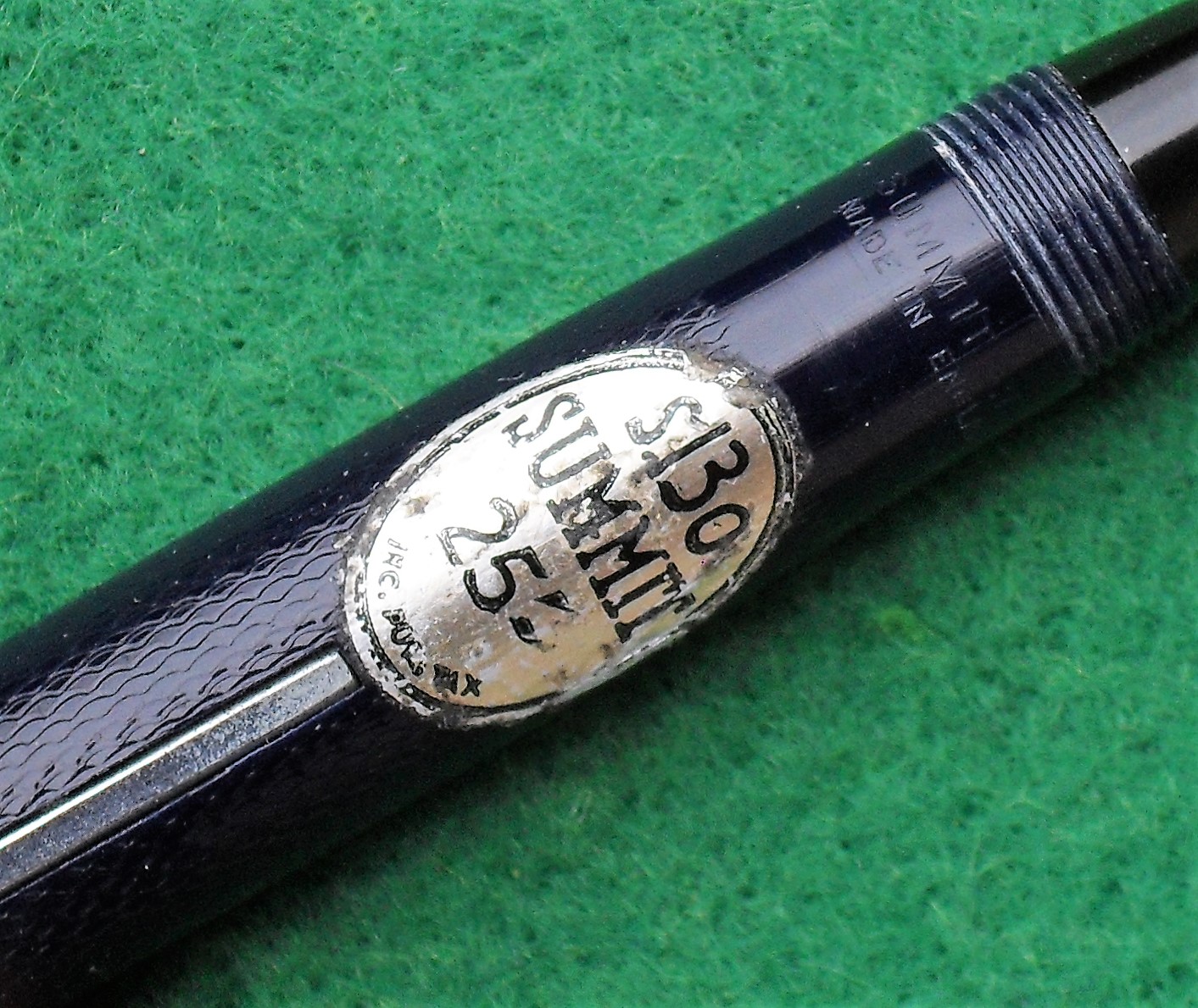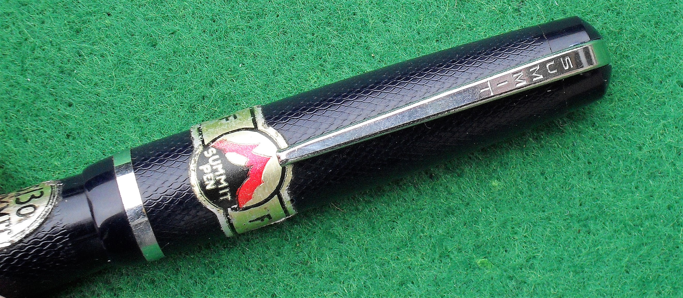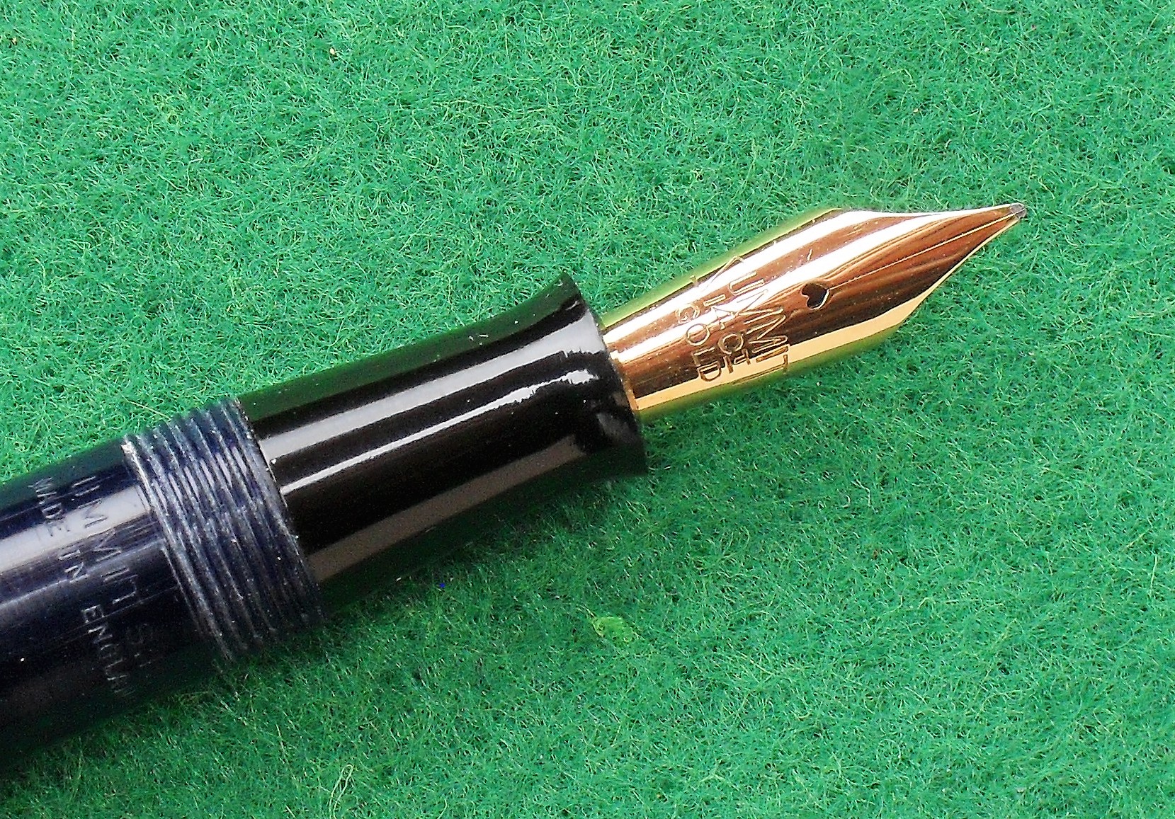 Anch'io tendo a preferire la seconda, soprattutto sulle stilografiche in ebanite. La lavorazione a chicco d'orzo era evidentemente molto popolare nel Regno Unito, perché fu adottata anche da altri marchi, come ad esempio Onoto, che la previde anche per la sua ammiraglia degli anni trenta: la Magna.