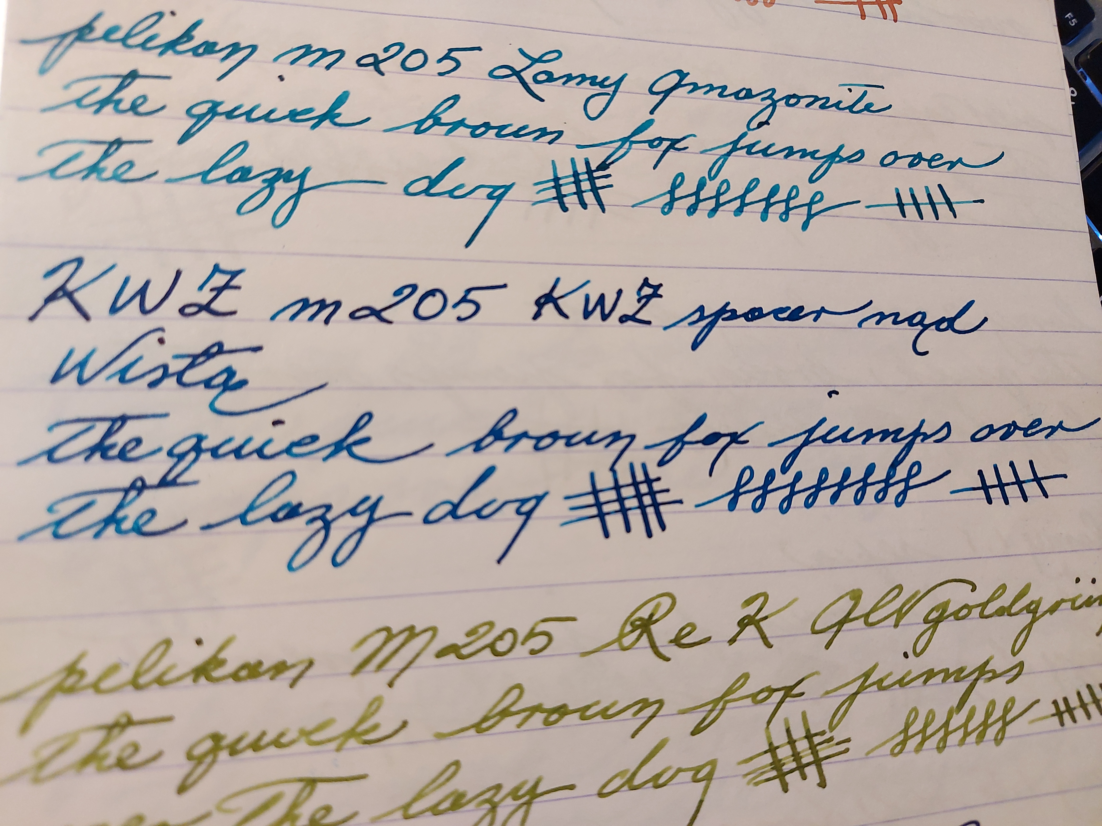 Pienamente in accordo con Vito72, il KWZ - apprezzo molto i prodotti con questo marchio - è molto bello, come belli sono i riflessi che rilascia sulle solite buone carte, però, pur non avendomi mai dato particolari problemi, mi lascia perplesso il fatto che quando devo aprire la boccetta faccio un pò di fatica a farlo, in quanto si creano delle incrostazioni (e questo per me è un indizio che in particolari circostanze problemi di intasamento potrebbero essercene). Non ha molto in comune con Verdgris di R&K (altro marchio e colore in particolare che mi garbano).
