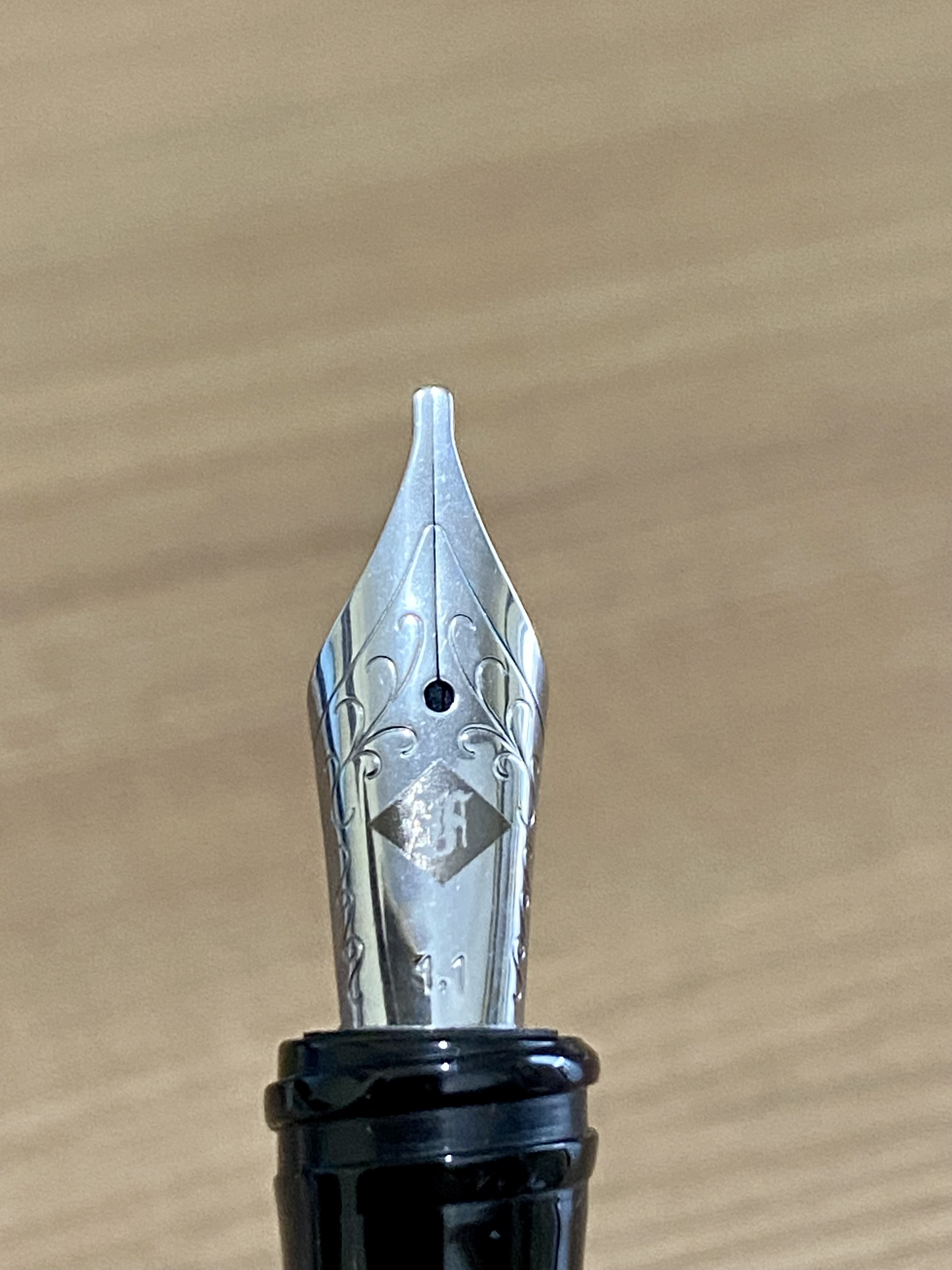 Il secondo gruppo scrittura è l'1.1 cursive calligraphy, in pratica uno stub JoWo perfettamente identico a quelli montati sulle penne Leonardo (oltretutto perfettamente intercambiabili con quest'ultimi). Non mi perdo in commenti su come scrive, dico solo che è il solito noioso e ben funzionante Stub di casa JoWo.