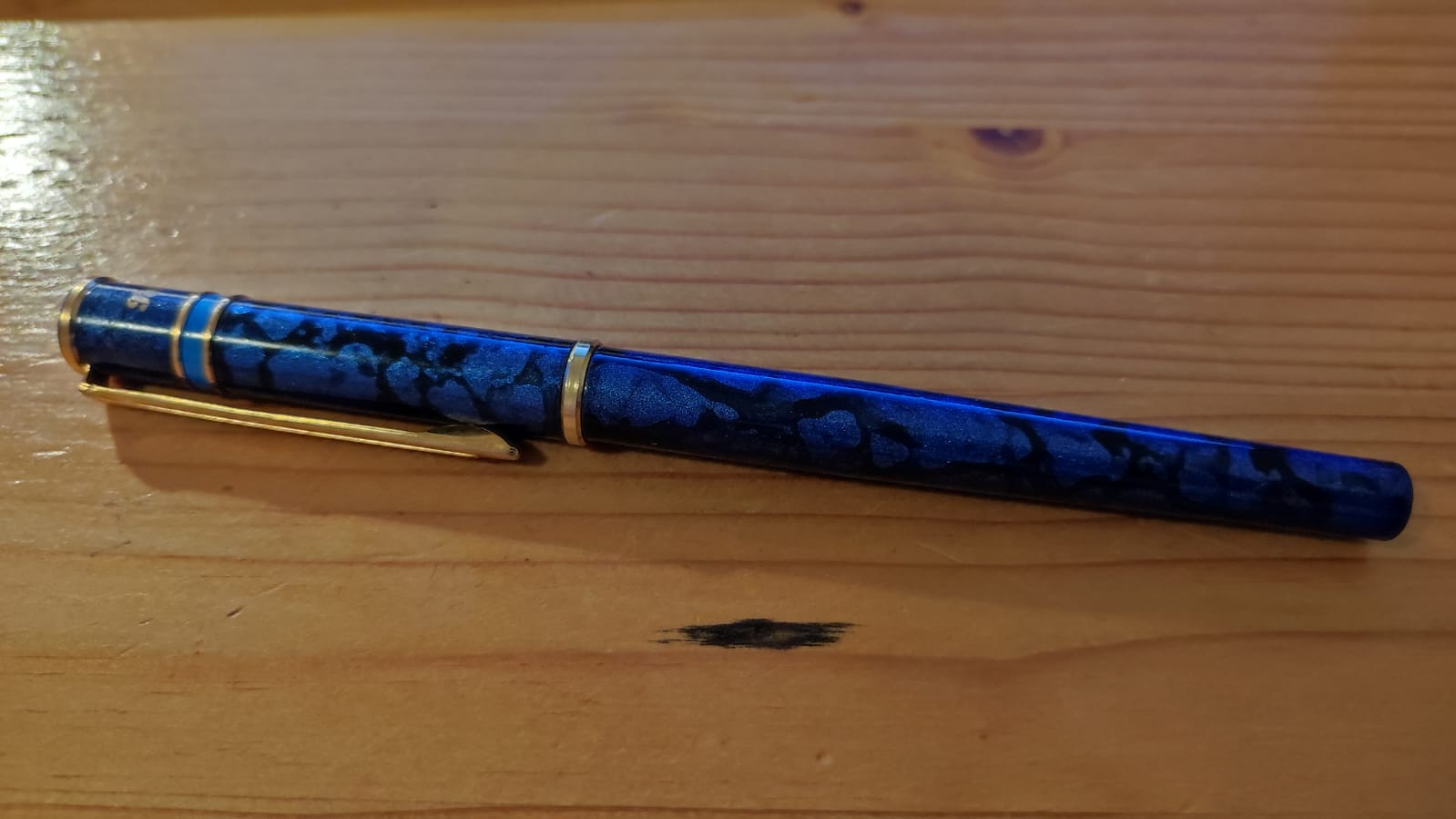 Ne avevo trovata una identica qualche mese fa, ricordo anche di averne tentato (ma non concluso) l’acquisto visto il prezzo conveniente spinto più per la curiosità per quella fascia sul cappuccio ed il logo stampato. Non si trova sui soliti siti dedicati alla pelikan. Poi qualche settimana fa quasi per caso avevo scoperto che era molto più recente di quanto pensassi, se non ricordo male di una decina d’anni fa. Ora non riesco a ritrovare il link. Mi spiace