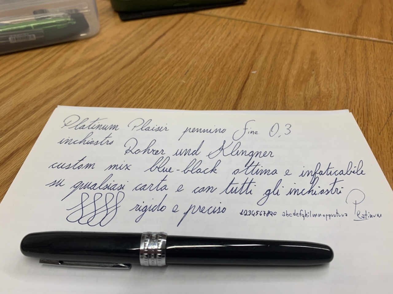 Bella recensione. La Plaisir è davvero un'ottima penna (ne possiedo una con pennino F 0.3), adatta sia a chi si avvicina al mondo stilografico, sia a mani più esperte alla ricerca di un prodotto affidabilissimo senza spendere un capitale.