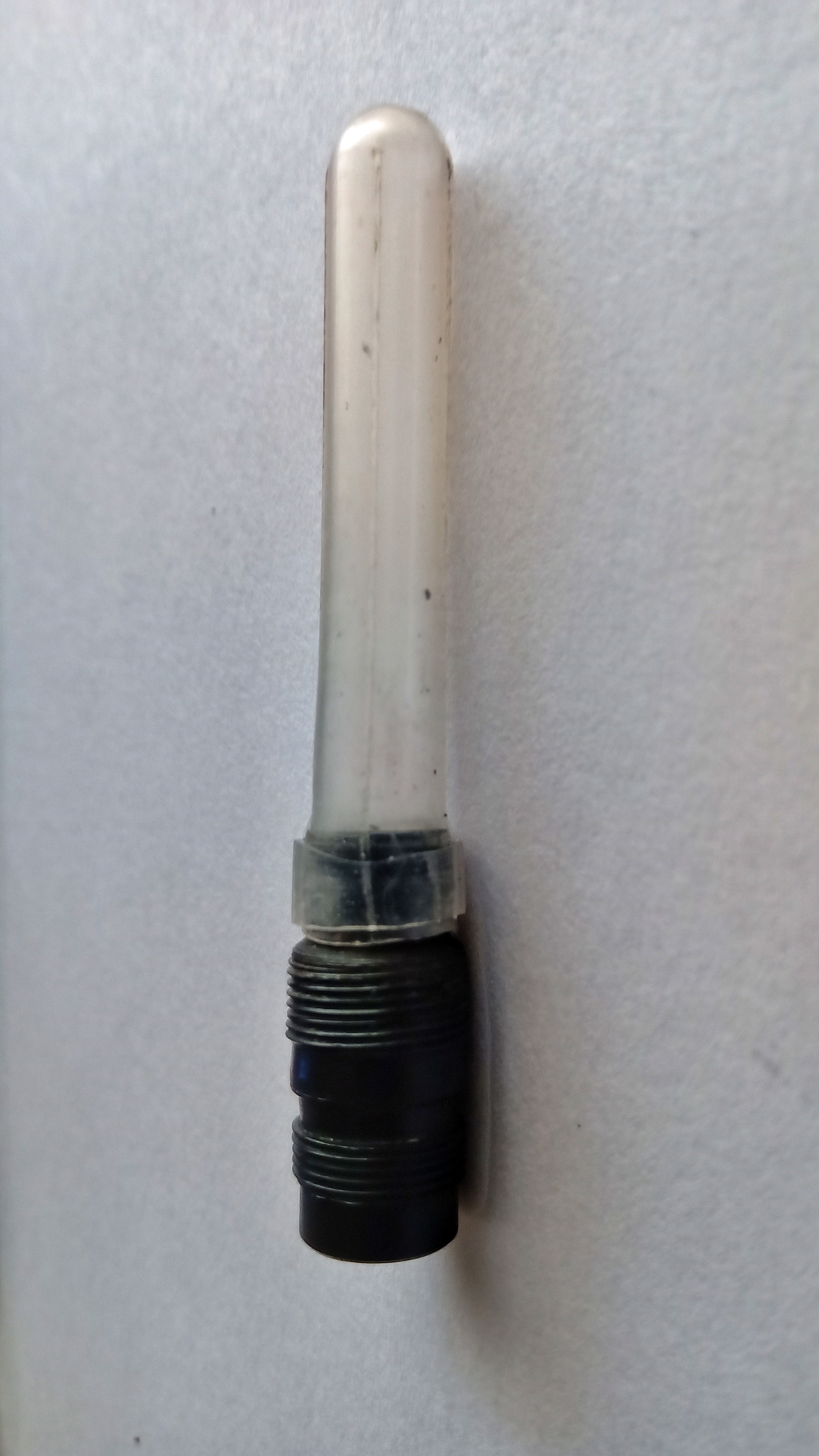 Successivamente ho dovuto tagliare il fusto, e generare un filo interno nel cappuccio del pulsante con cianoacrilato e teflon, copiando il filo della guida in alluminio del pulsante.
