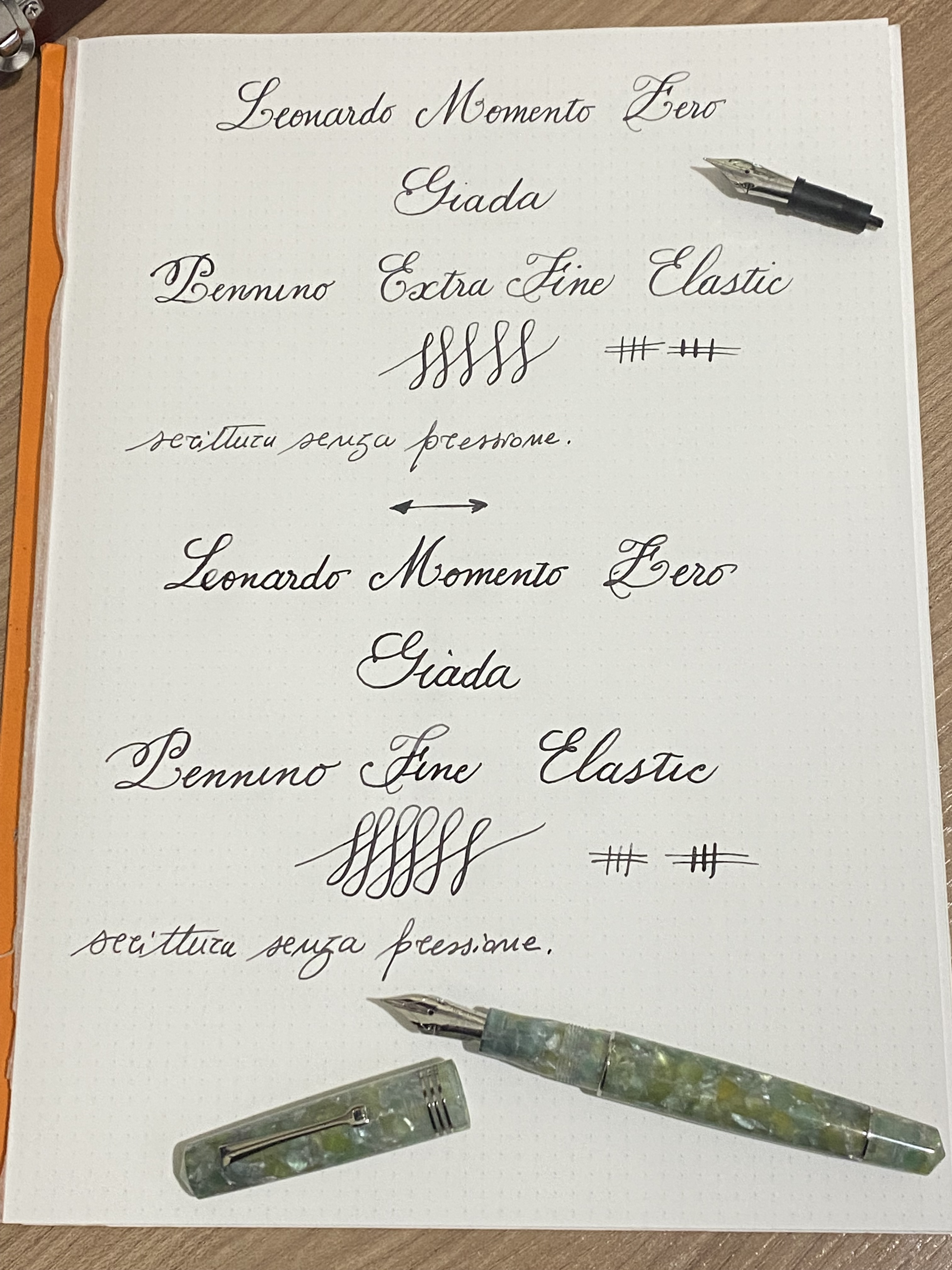 In quest'ultimo periodo le oversize sono diventate un po' la tendenza, e io ne sono stato preso, ma l'usabilità di una Momento Zero è impareggiabile, sono penne fatte bene, funzionali e pratiche grazie al sistema di caricamento a cartuccia e le dimensioni assolutamente umane. La Momento Zero è stato ed è il cavallo di battaglia di questa azienda, ma non per questo è un prodotto fatto in economia, l'attenzione ai dettagli c'è tutta e, soprattutto, è una penna in continuo miglioramento. L'attenzione alle esigenze del cliente è la parola chiave e si riflette in ogni piccola modifica fatta sui prodotti di Leonardo.