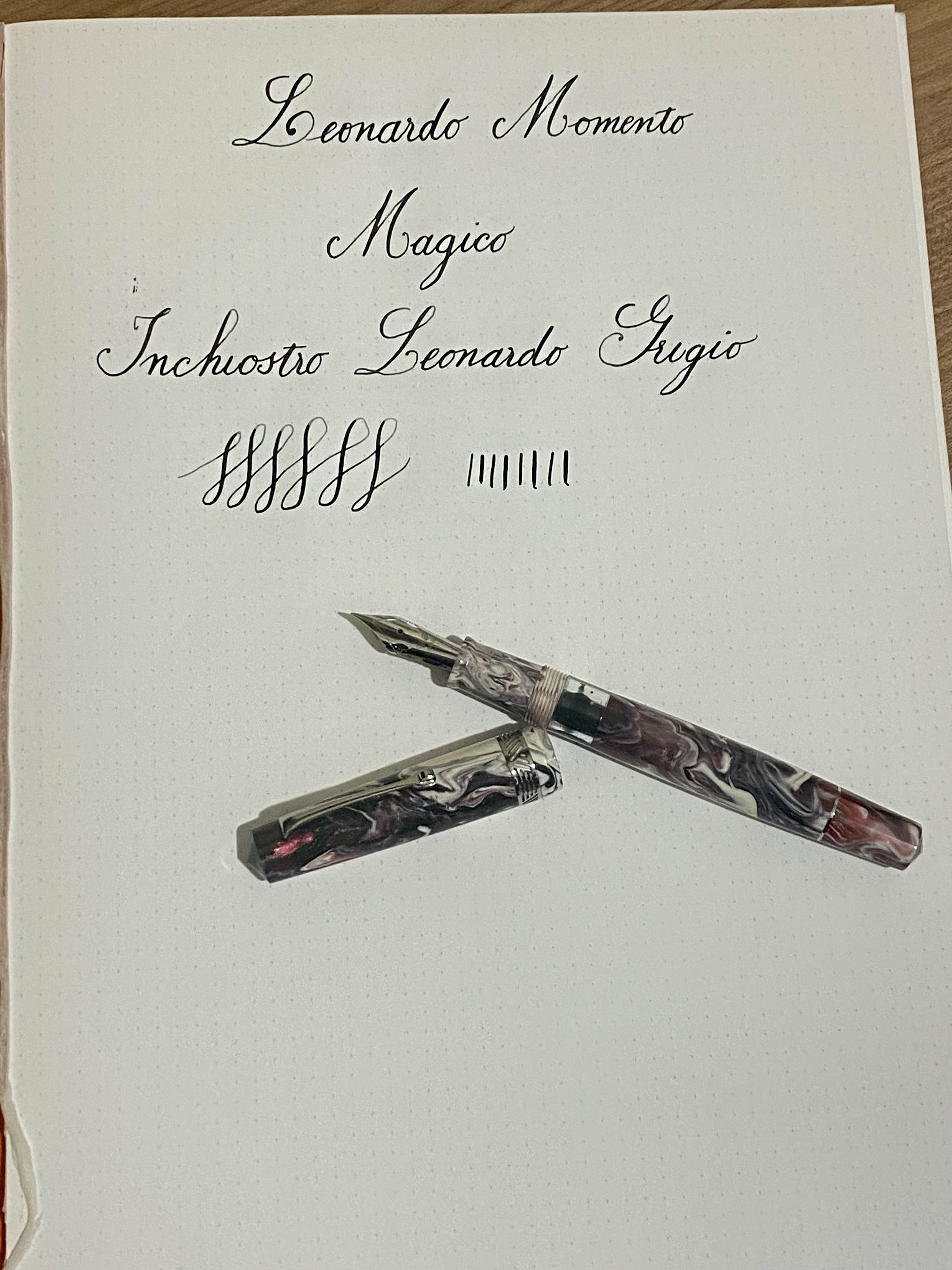 Eccoci, stessa carta, stesso inchiostro, pennino Elastic EF montato sulla Momento Magico KOI con alimentatore in ebanite.