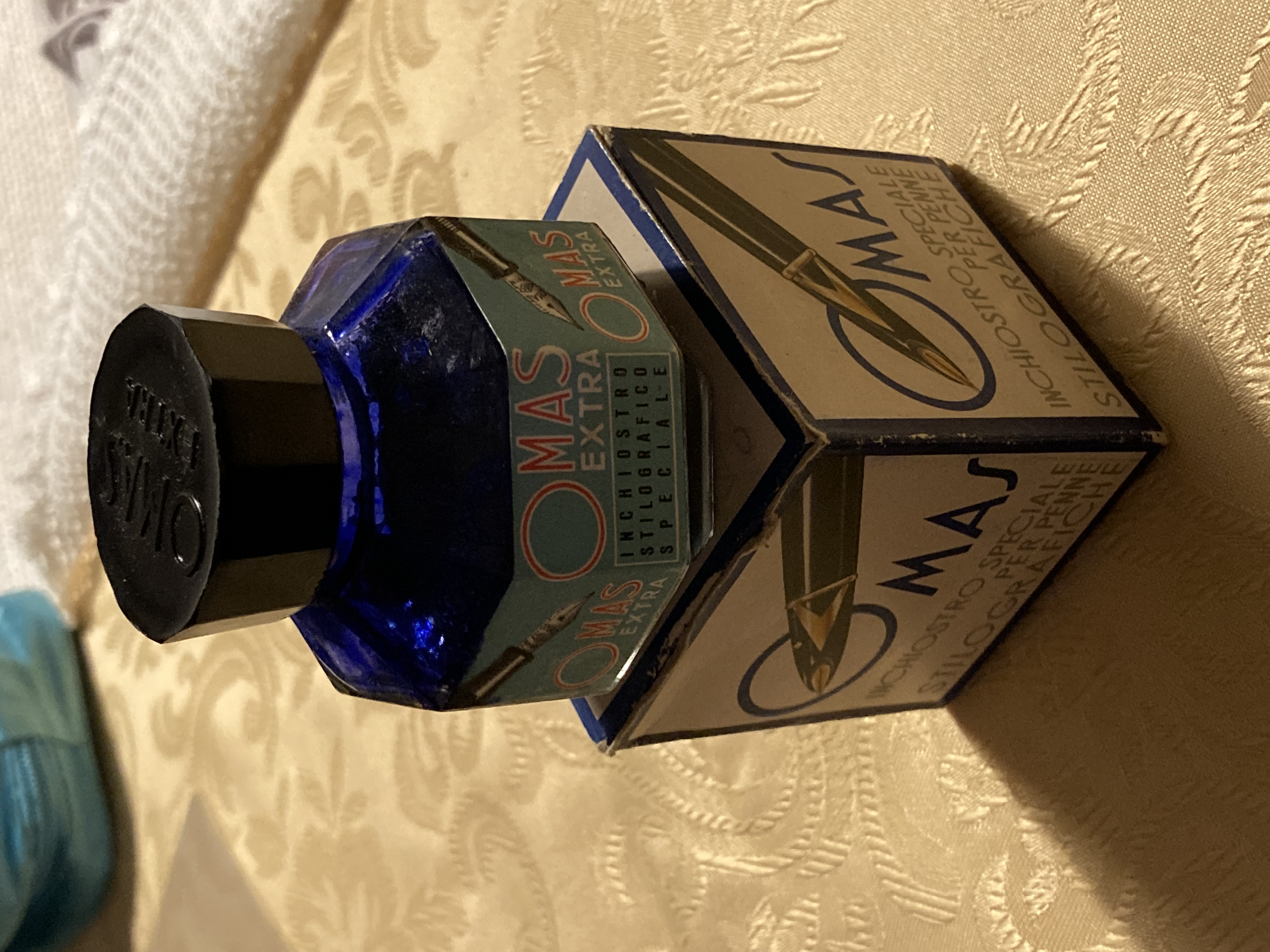 In effetti, il disegno che compare sulla scatolina di inchiostro è riportato nel libro su Omas di Emilio Dolcini, a pag. 47, che lo presenta a fianco dell'inizio della trattazione dei vari modelli di Omas 361 (non posto la foto della pagina dell'opera, bellissima, perchè non vorrei incorrere in violazioni dei diritti dell'Autore. Se posso farlo, nondimeno, provvederò al più presto). Da qui, peraltro, il mio riferimento a questo particolare tipo di modello della penna, tuttavia non corretto in assoluto, perchè, in effetti, la particolare decorazione a V dorata che compare sulla corazza del blocco pennino (disegnata sulla scatolina) è stata mantenuta da OMAS nel tempo, fino al modello VS. Che è successivo e che, come scrive Dolcini, è una vera e propria <evoluzione> della 361 e non solo una sua mera declinazione.
