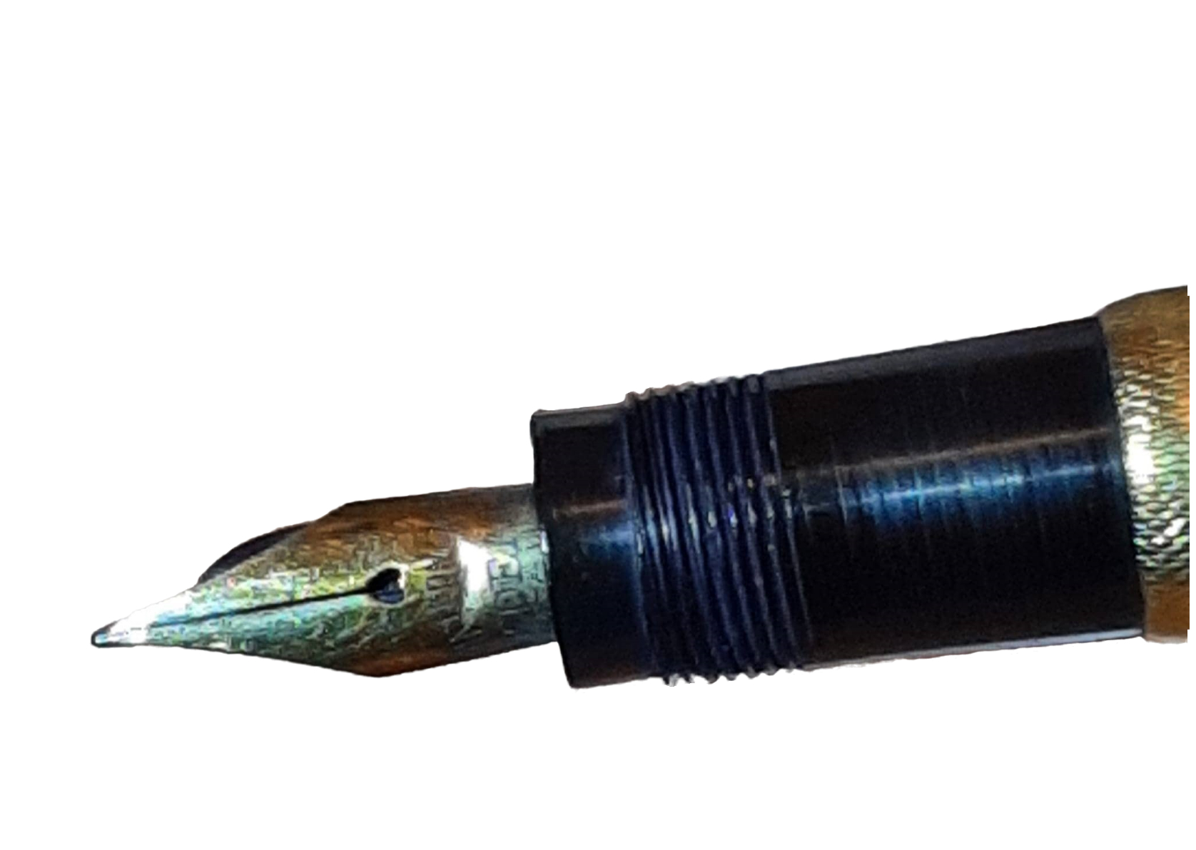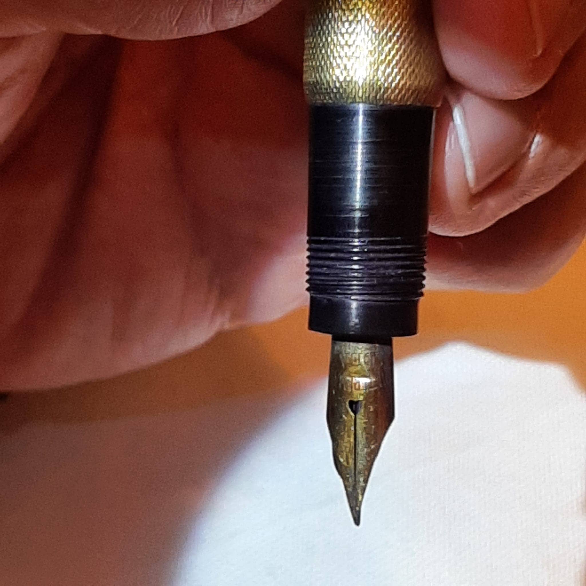 sanpei ha scritto: venerdì 31 dicembre 2021, 17:47 Waterman 42 anni '30 vista la filettatura "alta" pennino in oro 14K rivestimento in ottone con sottile strato d'oro 5/10 micron, crt non è un punzone dell'oro massiccio, ma di laminatura su supporto metallico non nobile, il cappuccio non mi pare originale ma nero in ebanite, di conseguenza valore economico esiguo purtroppo
