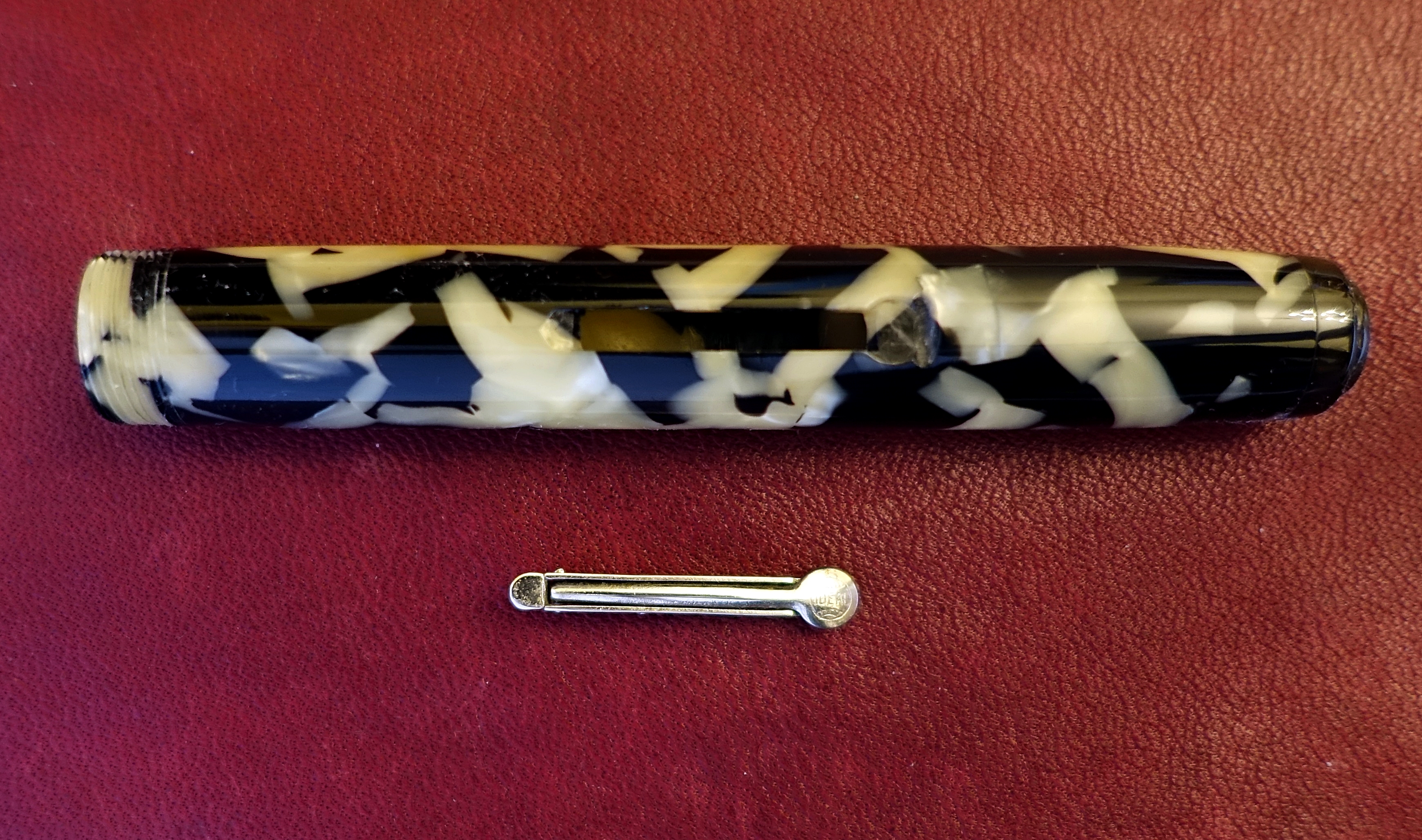 Purtroppo la levetta originale credo che sia impossibile da reperire, ho cercato e trovato su di una vecchia Waterman 52 da rottamare quella che si vede in fotografia e direi che si adatta bene e fa la sua figura grazie alla fresatura sul corpo penna circolare. In fine, andare per mercatini a volte vale la penna. ;)
