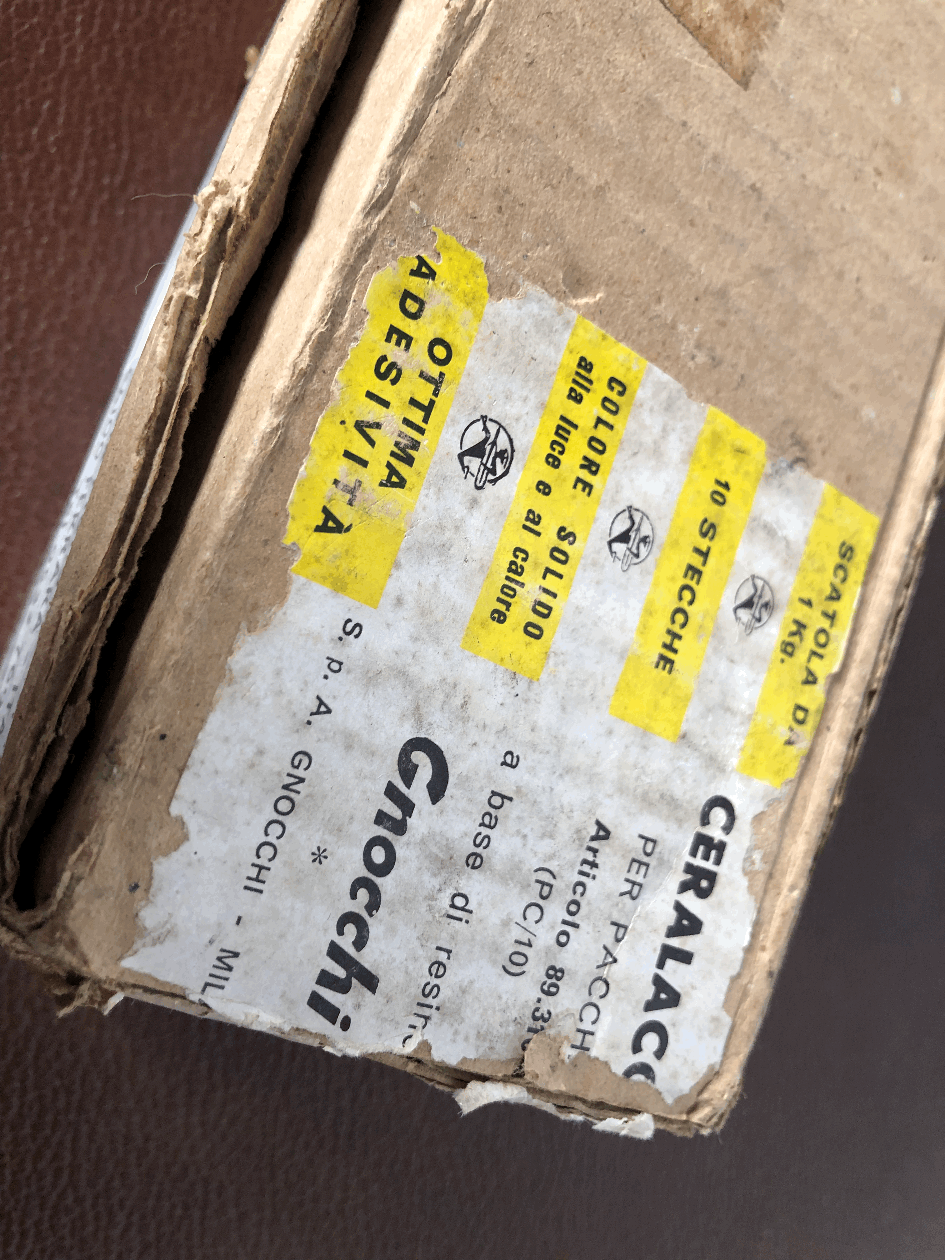 Sulla ceralacca Gnocchi, invece, non c'è scritto nulla sulle stecche ma solo sulla scatola.