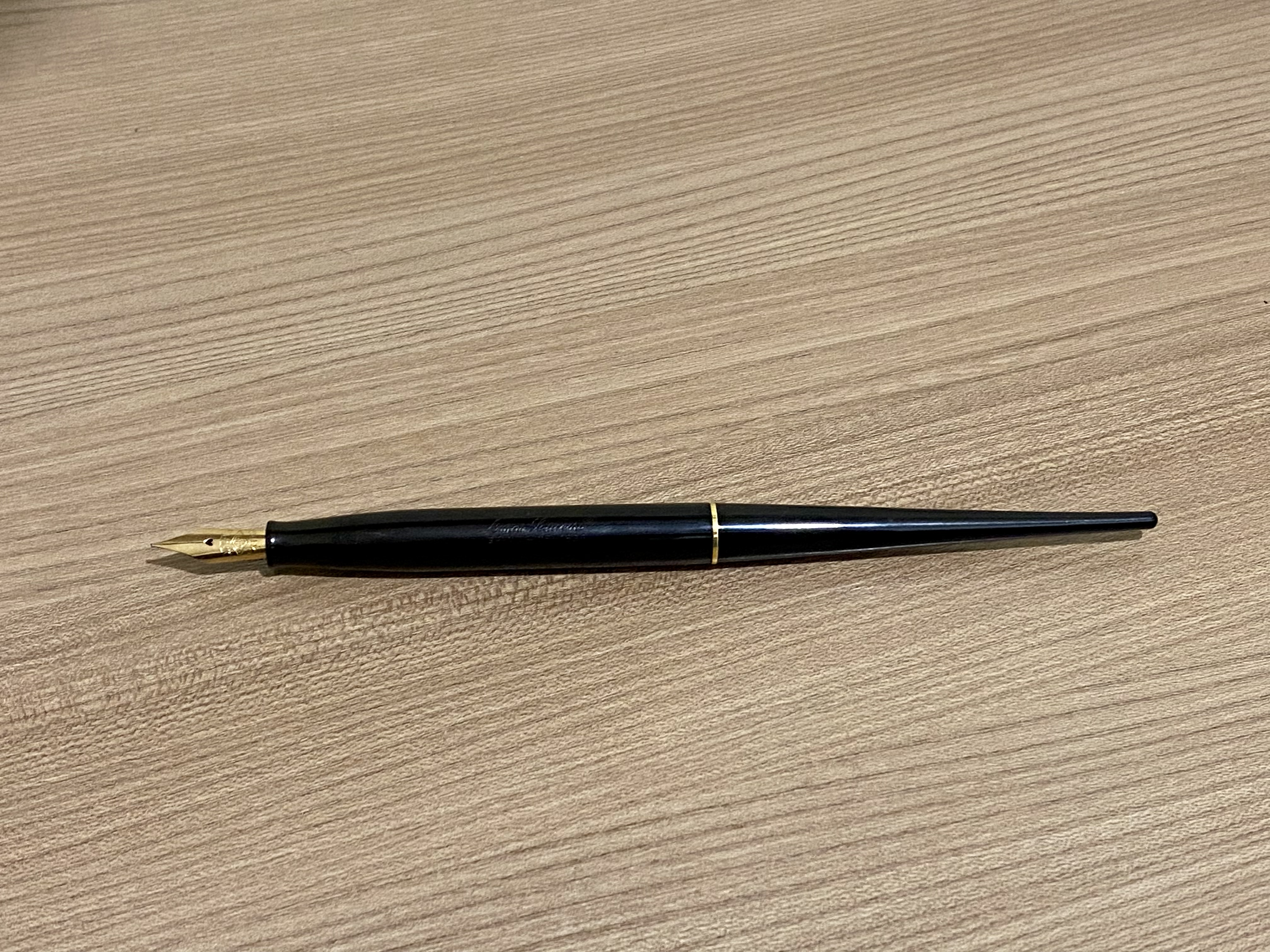 Penna da tavolo, una penna che tipicamente si mette esclusivamente nello stiloforo in quanto non ha cappuccio