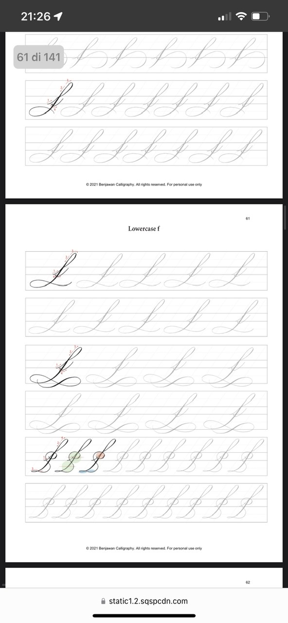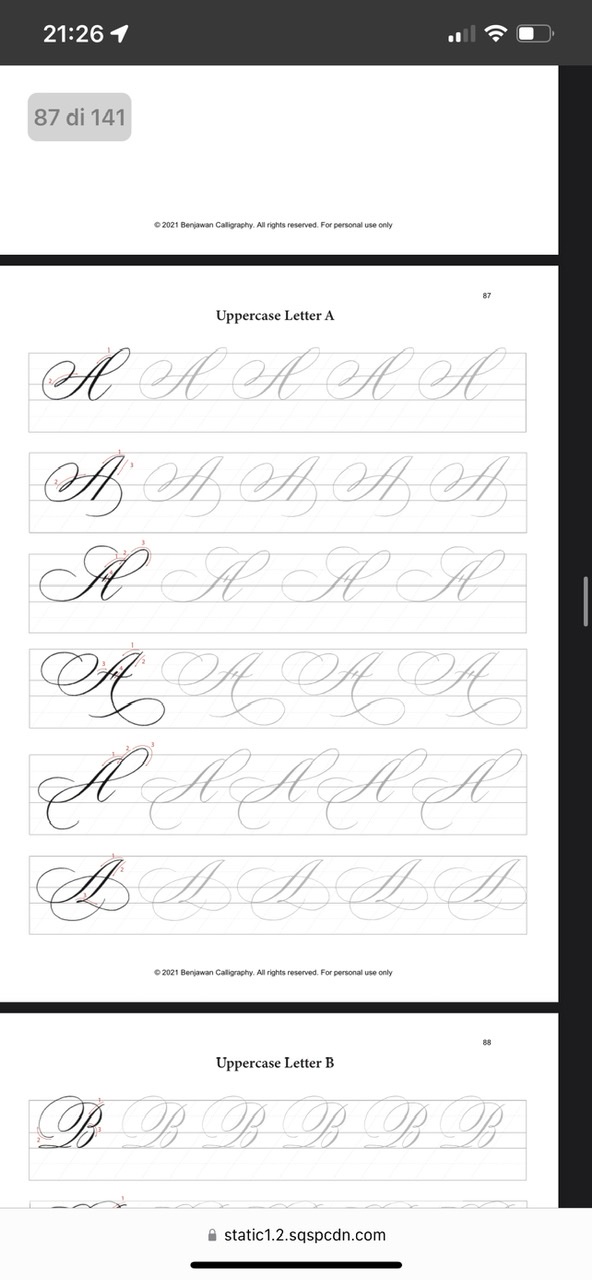 Instagram ogni tanto si rivela utile, strano a dirsi, per imparare a scrivere meglio. Qualche ora fa mi è passato sotto il naso un video che pubblicizzava un manuale illustrato con tante pagine per esercizi di fioritura Copperplate.