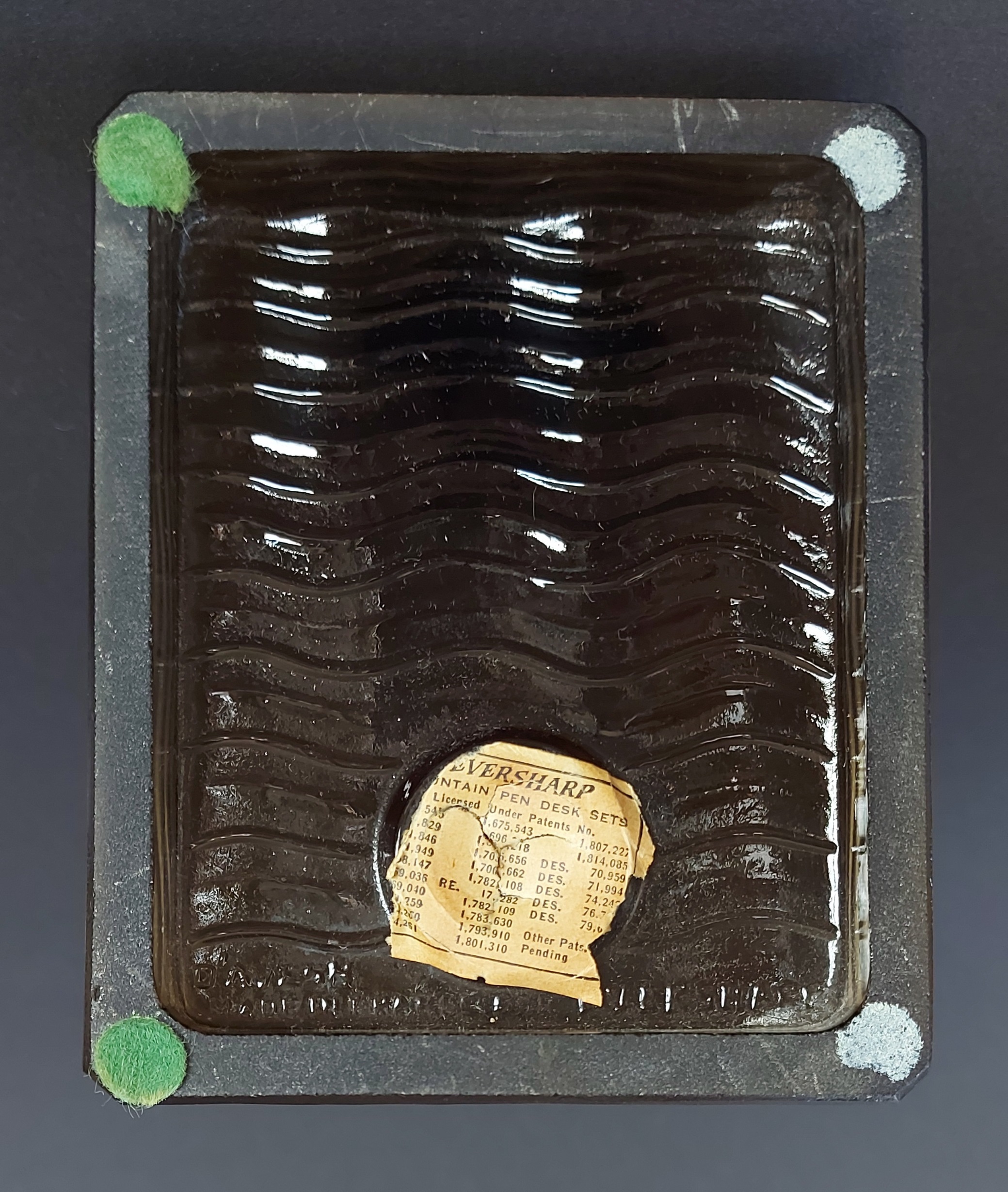 Vi sono réclame d’epoca persino più rare degli oggetti che pubblicizzano: è il caso della versione patinata di una misteriosa eliocromia dei Gorsky Frères di Parigi, realizzata nel 1931 per il lancio del mitico stiloforo in cristallo creato in Francia da Pierre D’Avesn per la Wahl-Eversharp di Chicago.