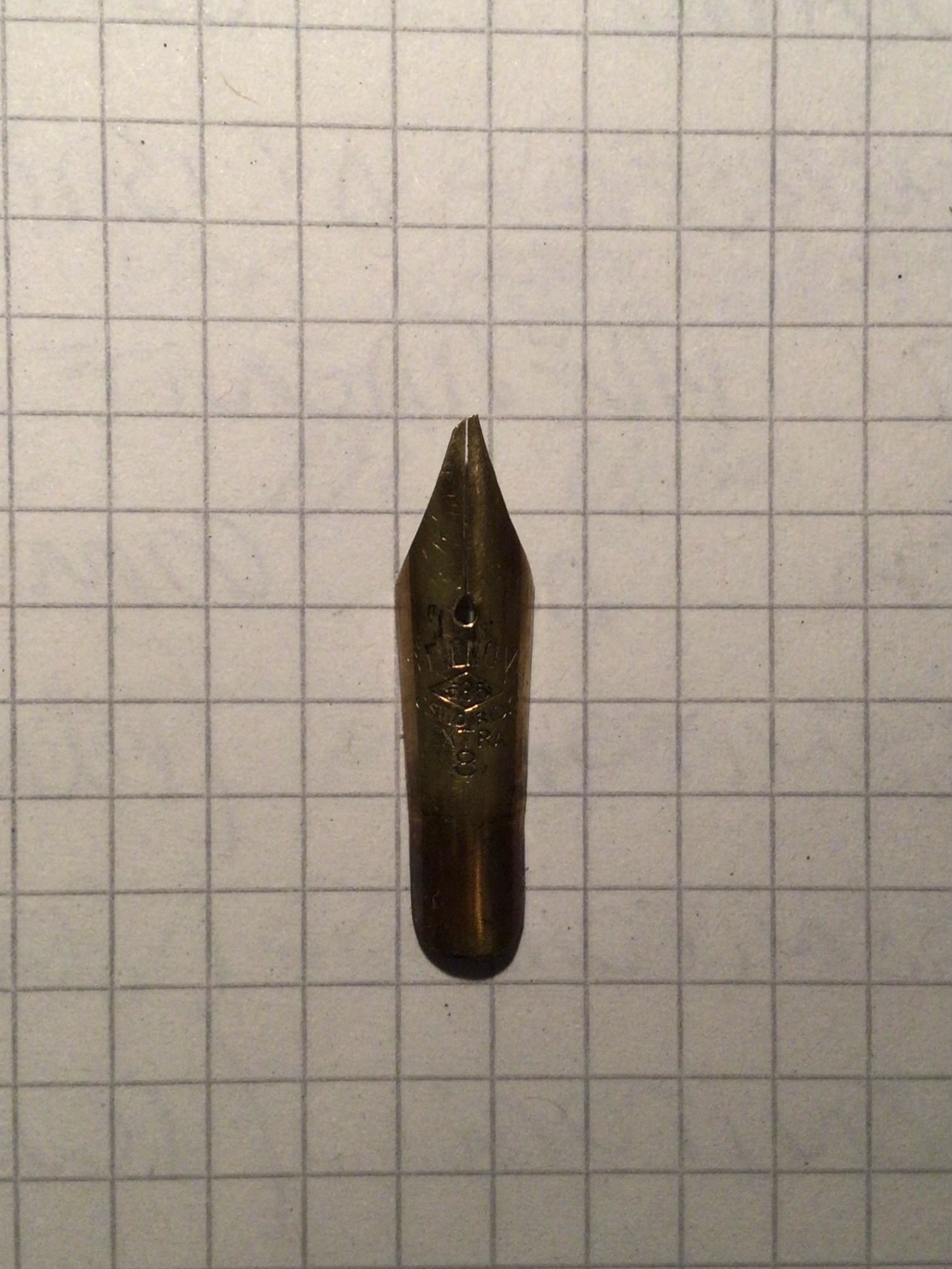 Allego foto del pennino smontato. Inizialmente credevo fosse un pennino gravemente danneggiato ma a guardarlo meglio potrebbe sembrare un italico. Anche se lo fosse sicuramente ha subito dei danni perché al tatto non risulta omogeneo e in punta graffia.