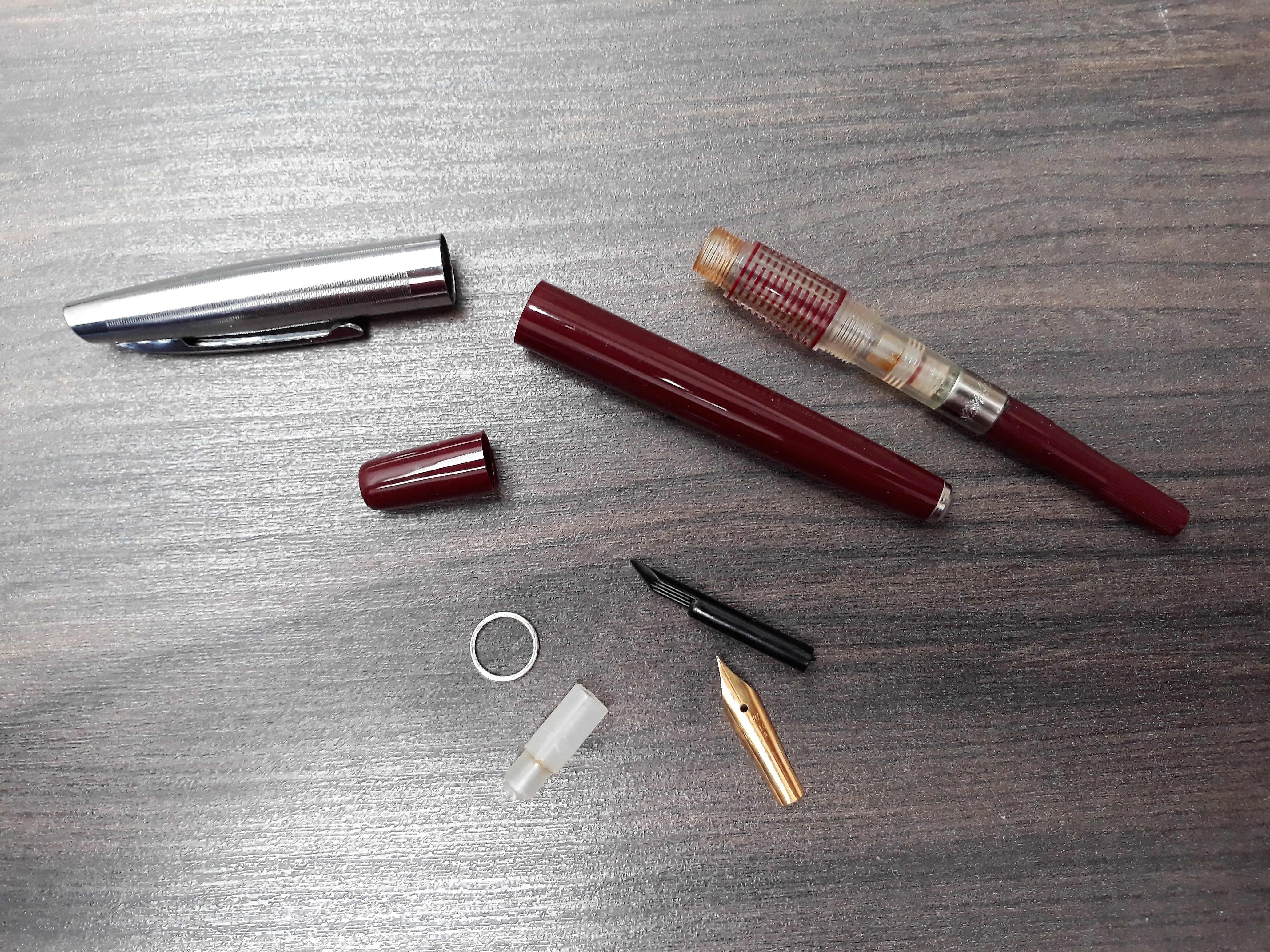 La penna è in ottime condizioni, ma lo stantuffo fatica a scorrere, perché il prodotto lubrificante applicato ai suoi tempi si è molto rappreso. Non sono un chimico e non so come potrei asportare il residuo di tale prodotto. Tentativi con acqua e sapone per piatti, oppure con Svitol, non hanno portato ad alcun risultato.