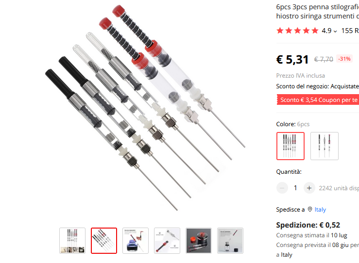 6 pezzi, io uso quello a molla per ricaricare le cartucce. Gli alltri li ho regalati insieme alle stilo jinhao...