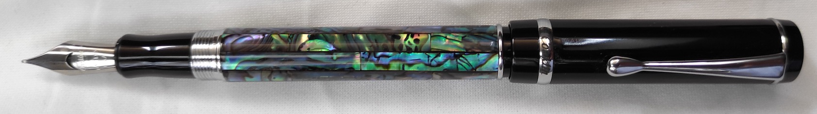 A vista la penna si presenta bene : il fusto di colore cangiante, a richiamare la conchiglia del mollusco marino noto con il nome di Abalone - da cui la denominazione di questa versione - , può esercitare un certo fascino a coloro i quali piace il madreperlato.