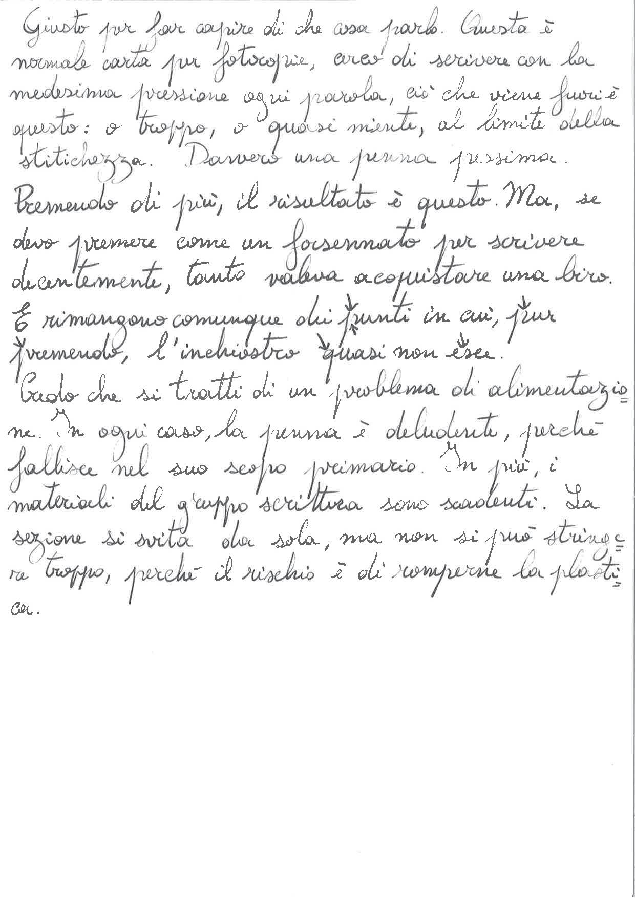Comunque, su carta buona funziona decentemente, ma su carta normale la scrittura è ancora pessima, cambia solo il fatto che il tratto M rende ancora più evidenti i casi in cui l'inchiostro si assottiglia fino a sparire.
