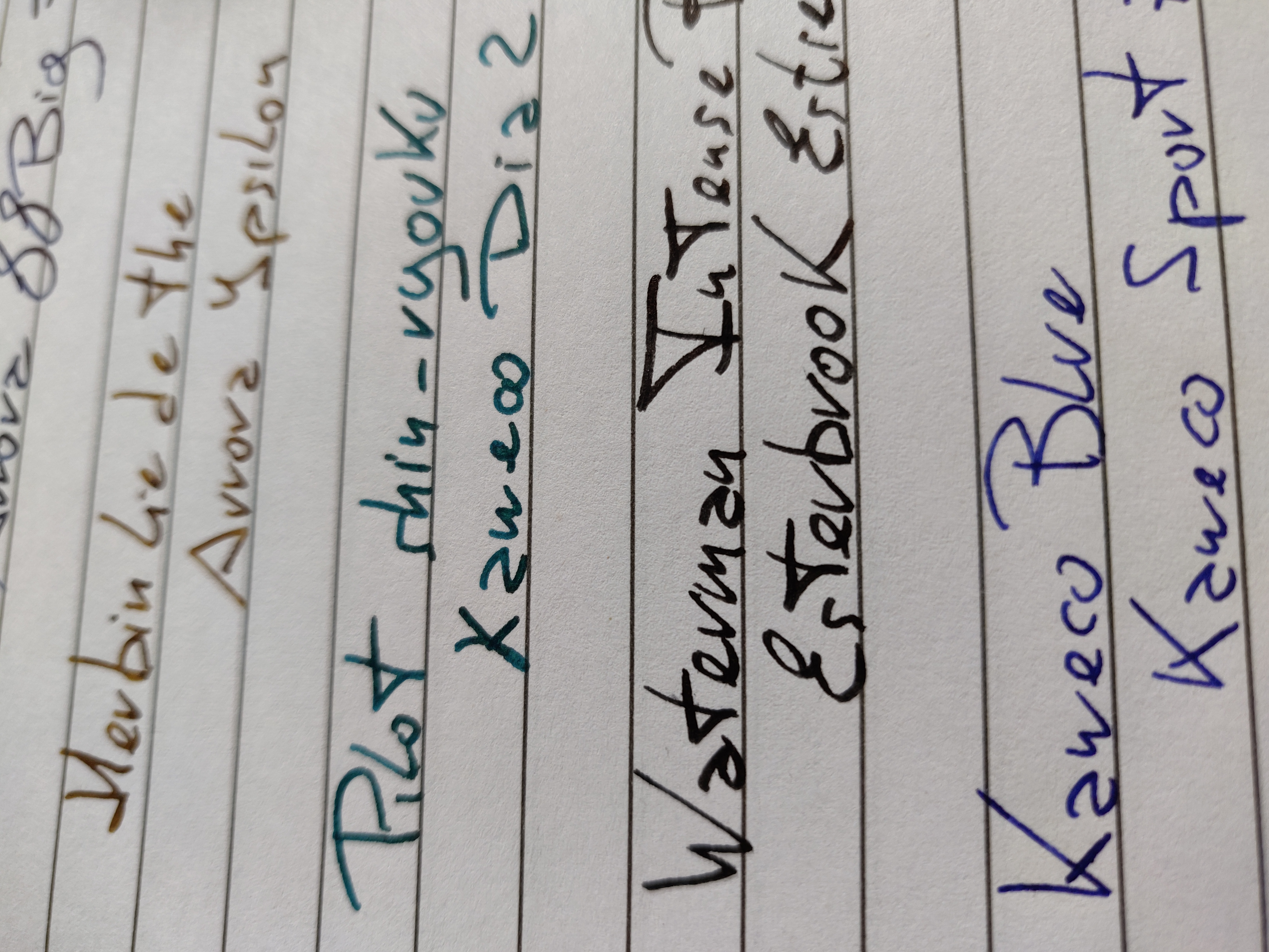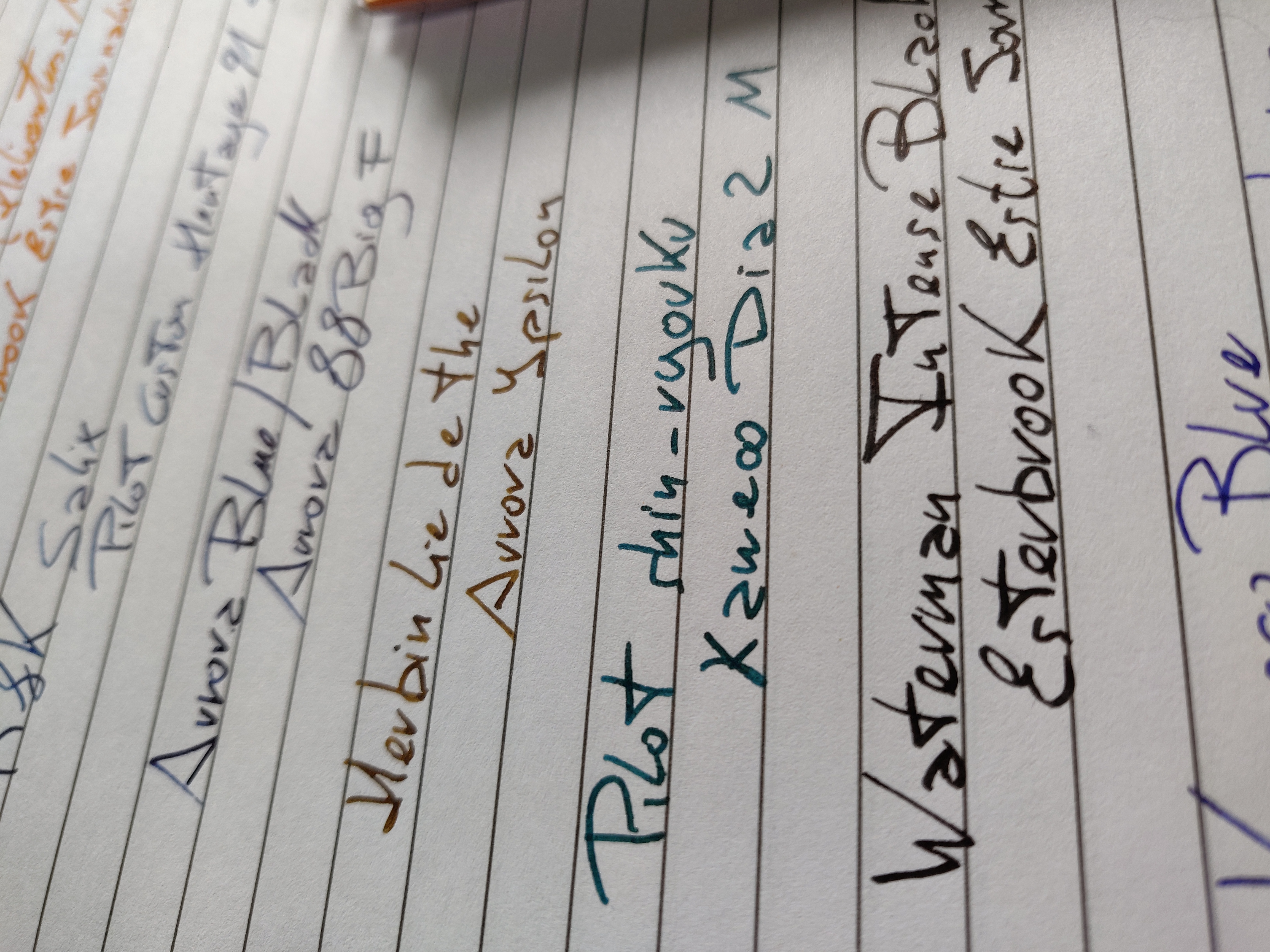 Al max una Noodler's Konrad, ma non la definirei abbondante... Anzi, trovata; una Jinhao 159 B, con l'inchiostro peggiore che ho, il Pelikan Adventurine.