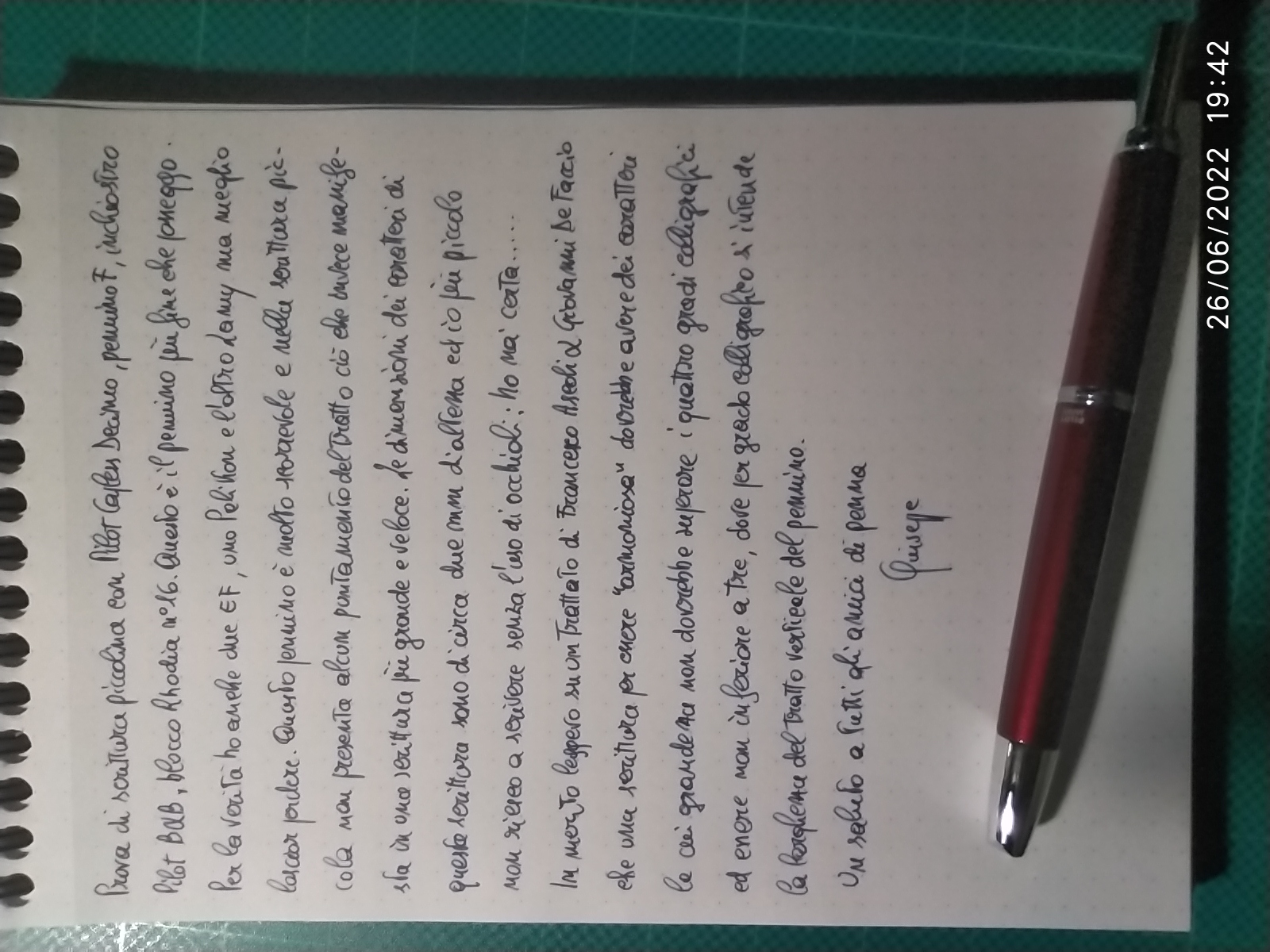 Vero, ma oggi avendo entrambe le penne già cariche, ho usato quel che avevo. Confermo comunque la differenza di tratto tra 14k e 21k Sailor, che tempo fa per uso personale avevo confrontato con lo stesso inchiostro. Se ne era parlato anche da qualche parte nel Forum: morbidezza diversa dovuta al metallo diverso