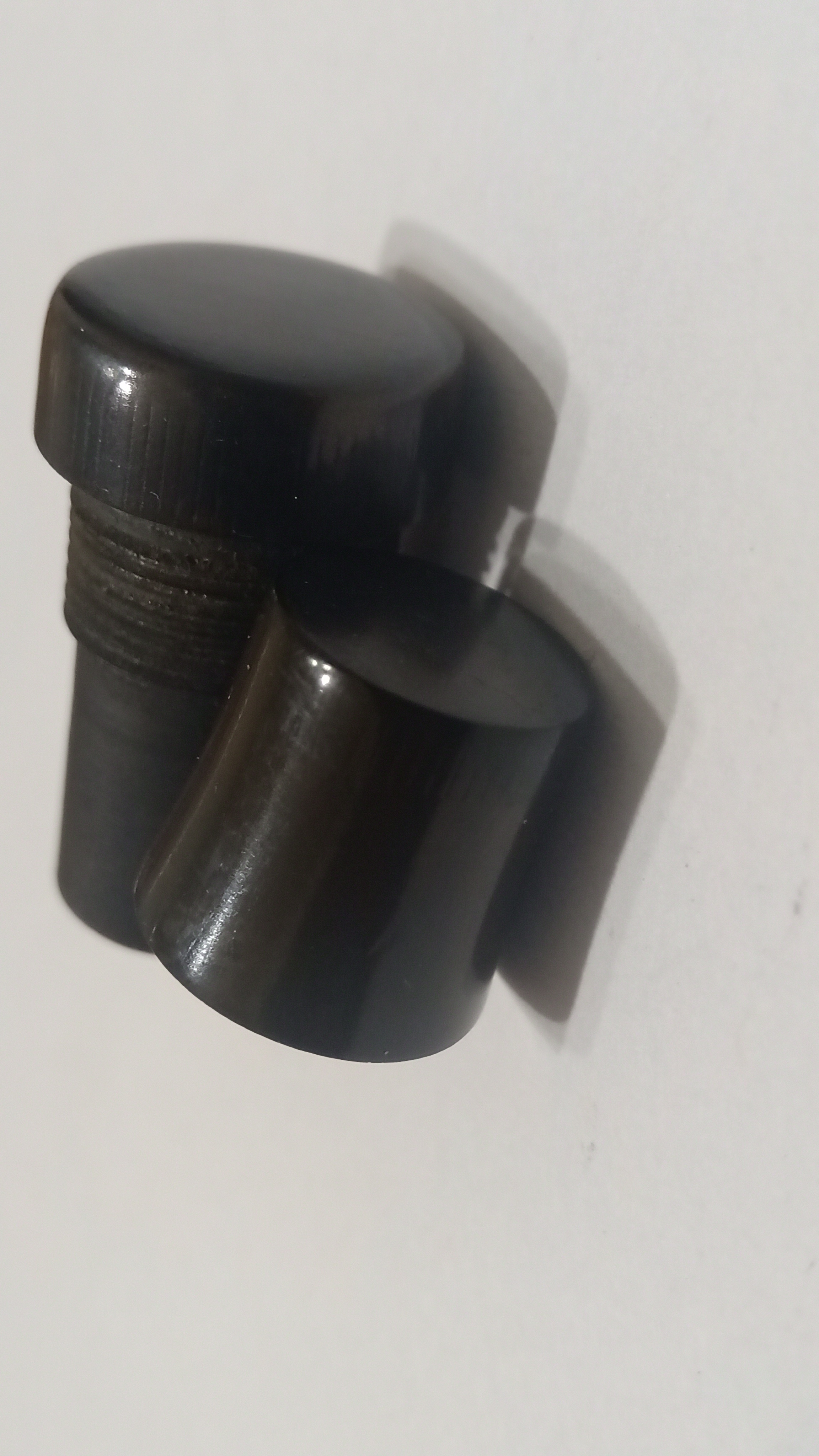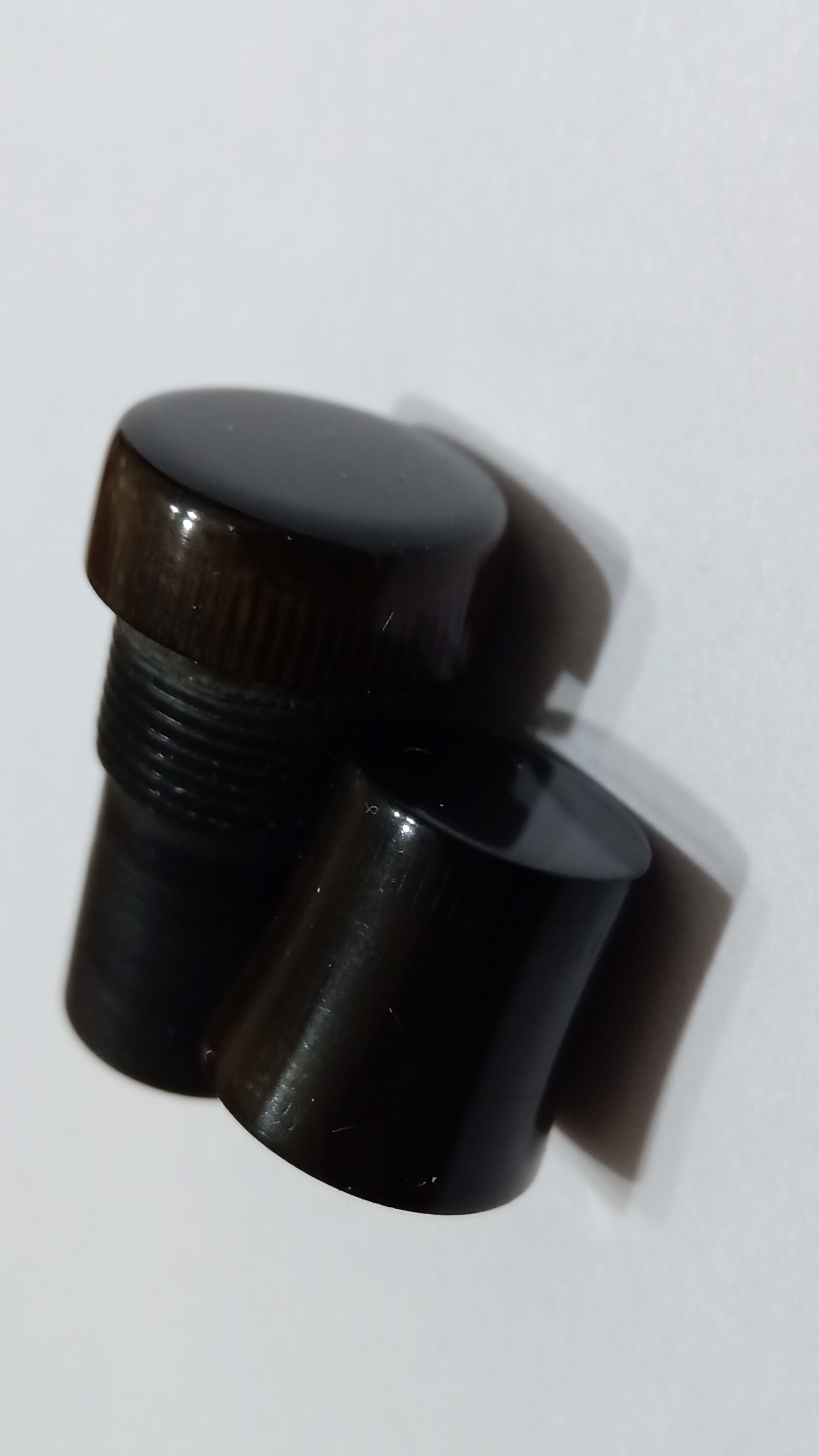 Both the end of the cap and the blind cap were incorrectly polished (scratches from sanding could be seen) and with their striation completely lost, with a slightly brown color due to the emerging sulfur from the ebonite.