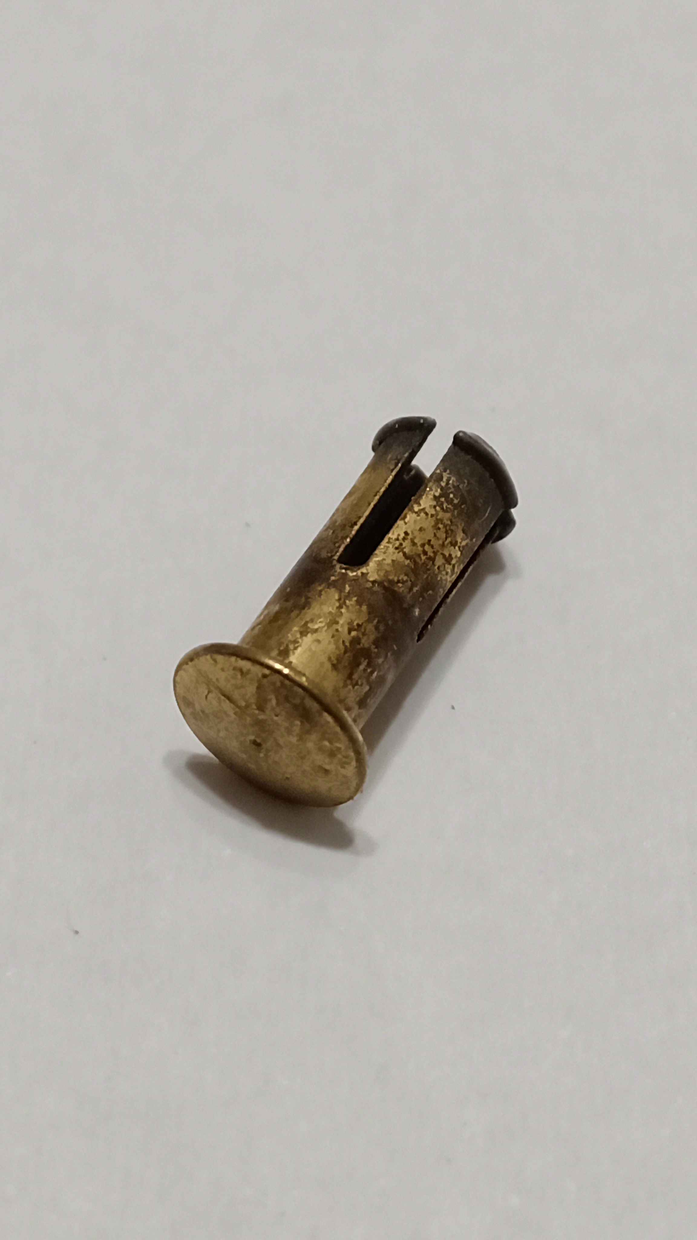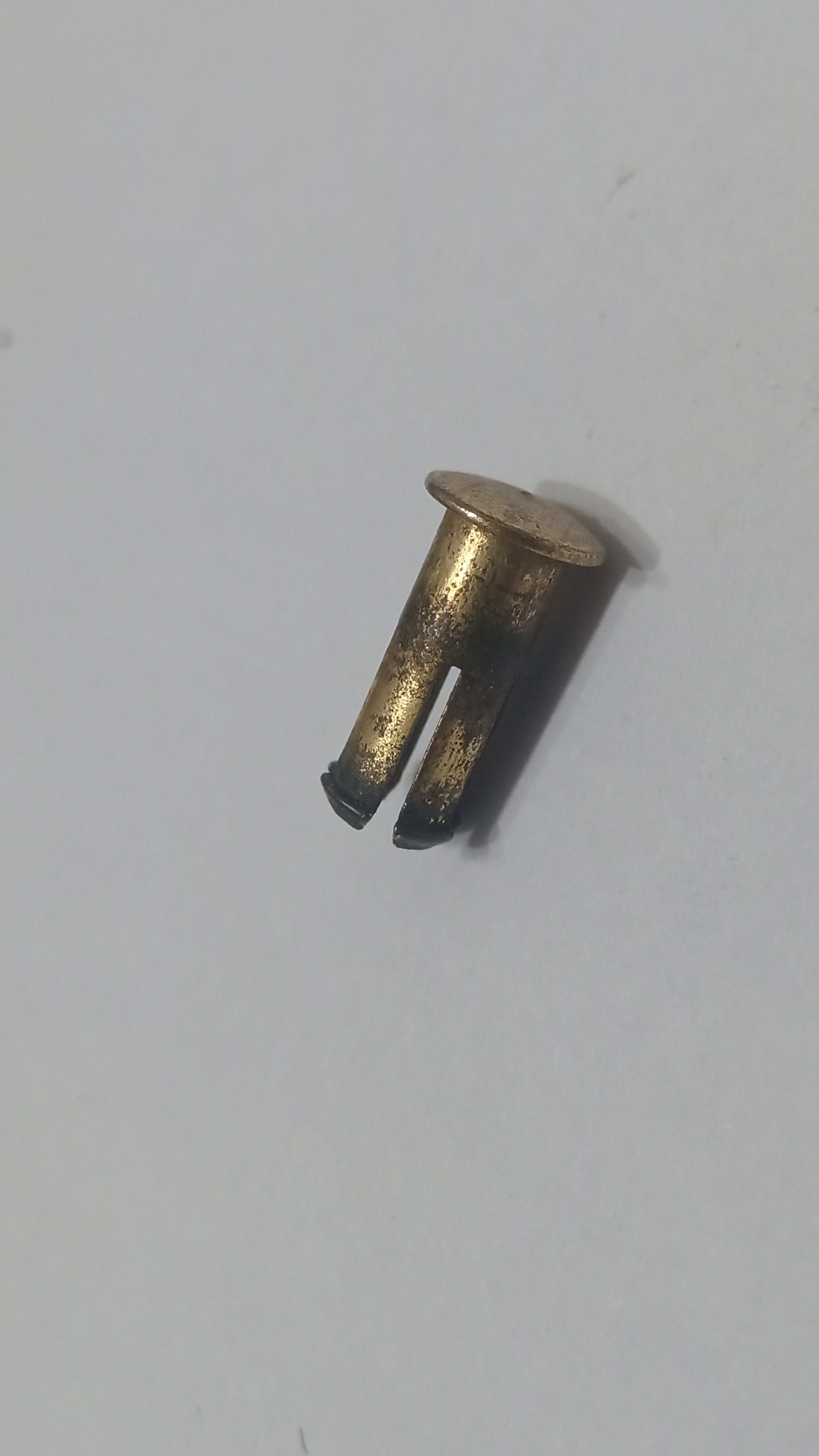 The button filling was completely rusted, and the internal strip all deformed and twisted, so it had to be disassembled to straighten it, and the button had to be subjected to intense polishing to achieve its original finish...