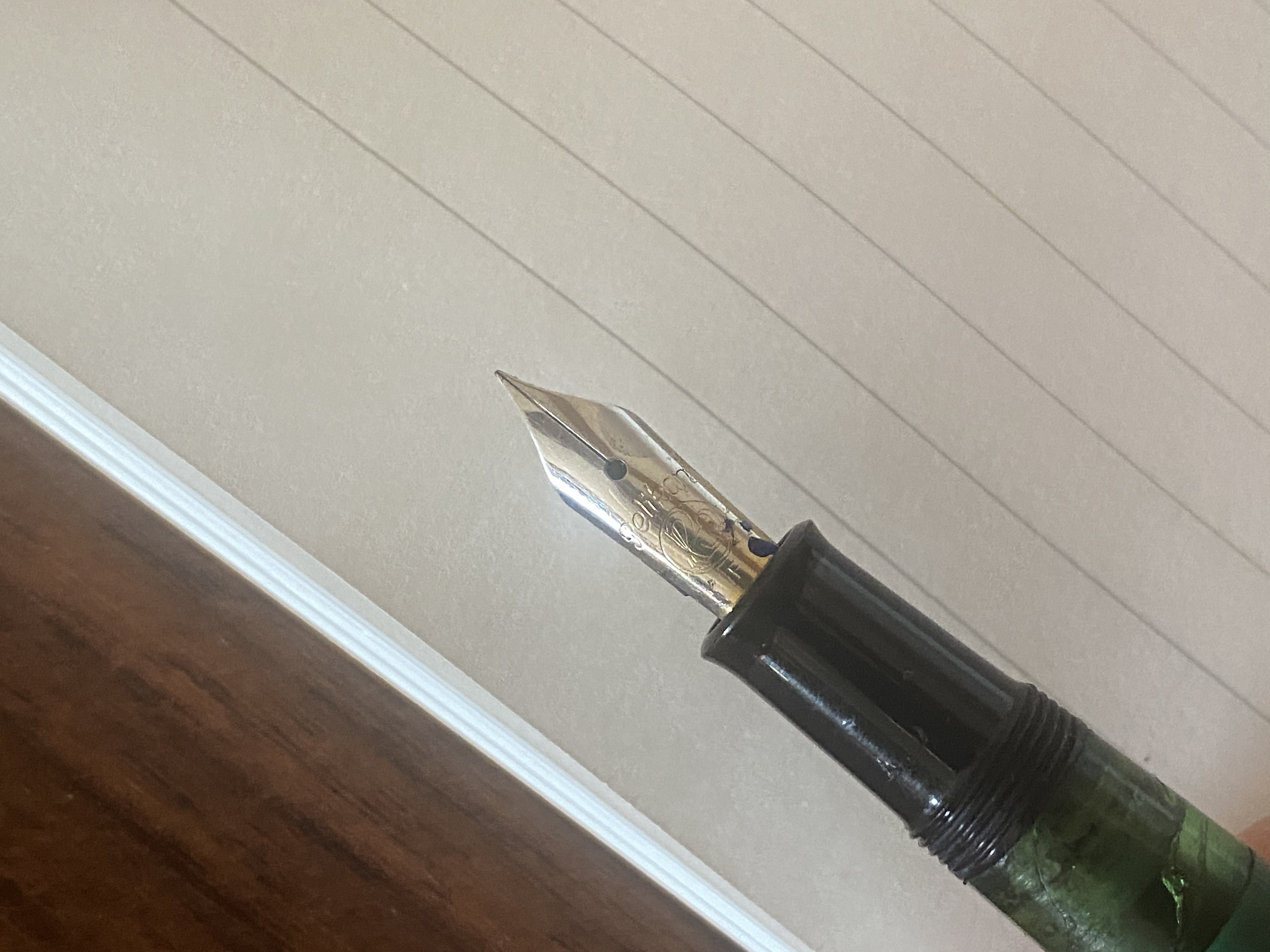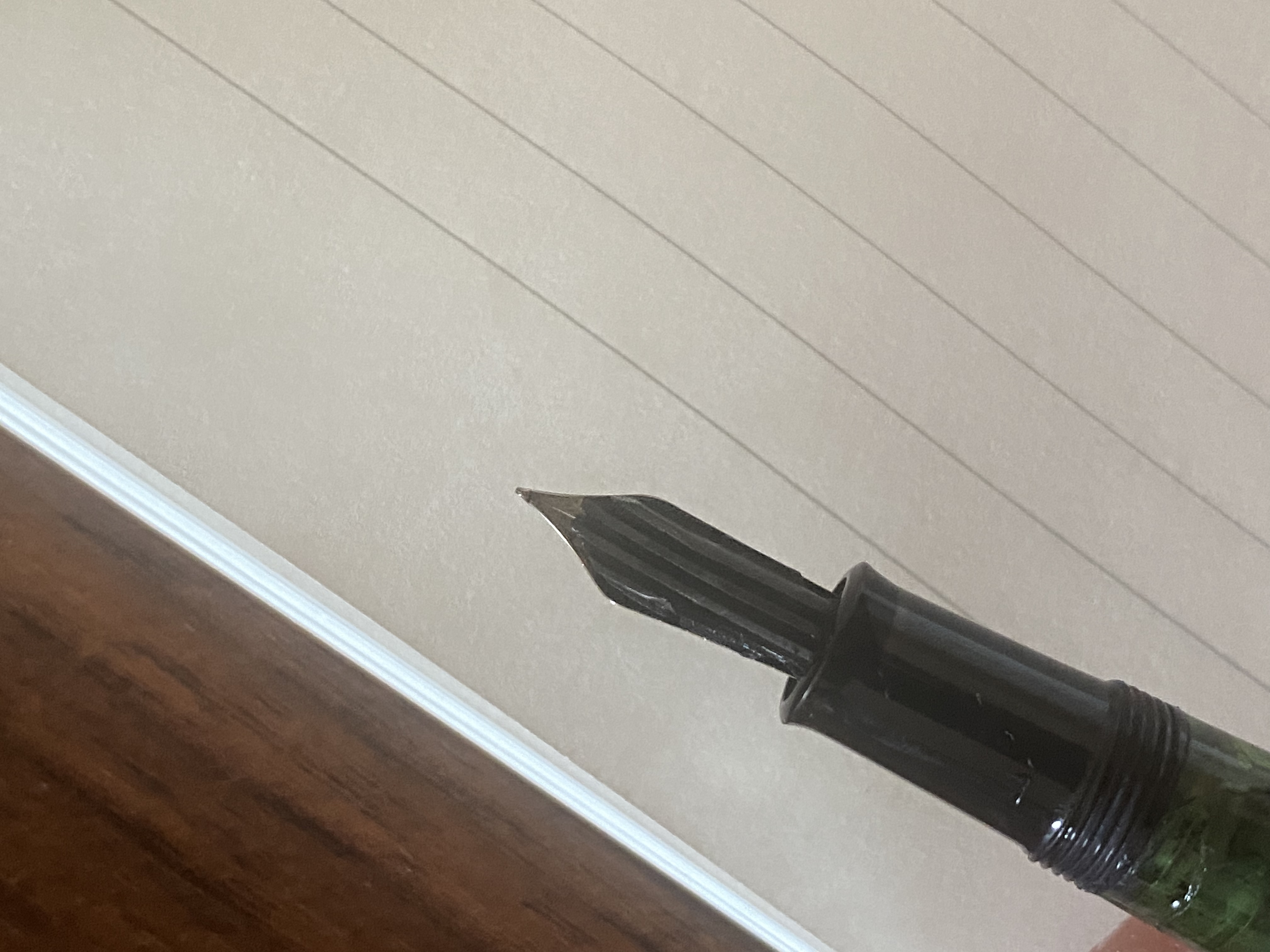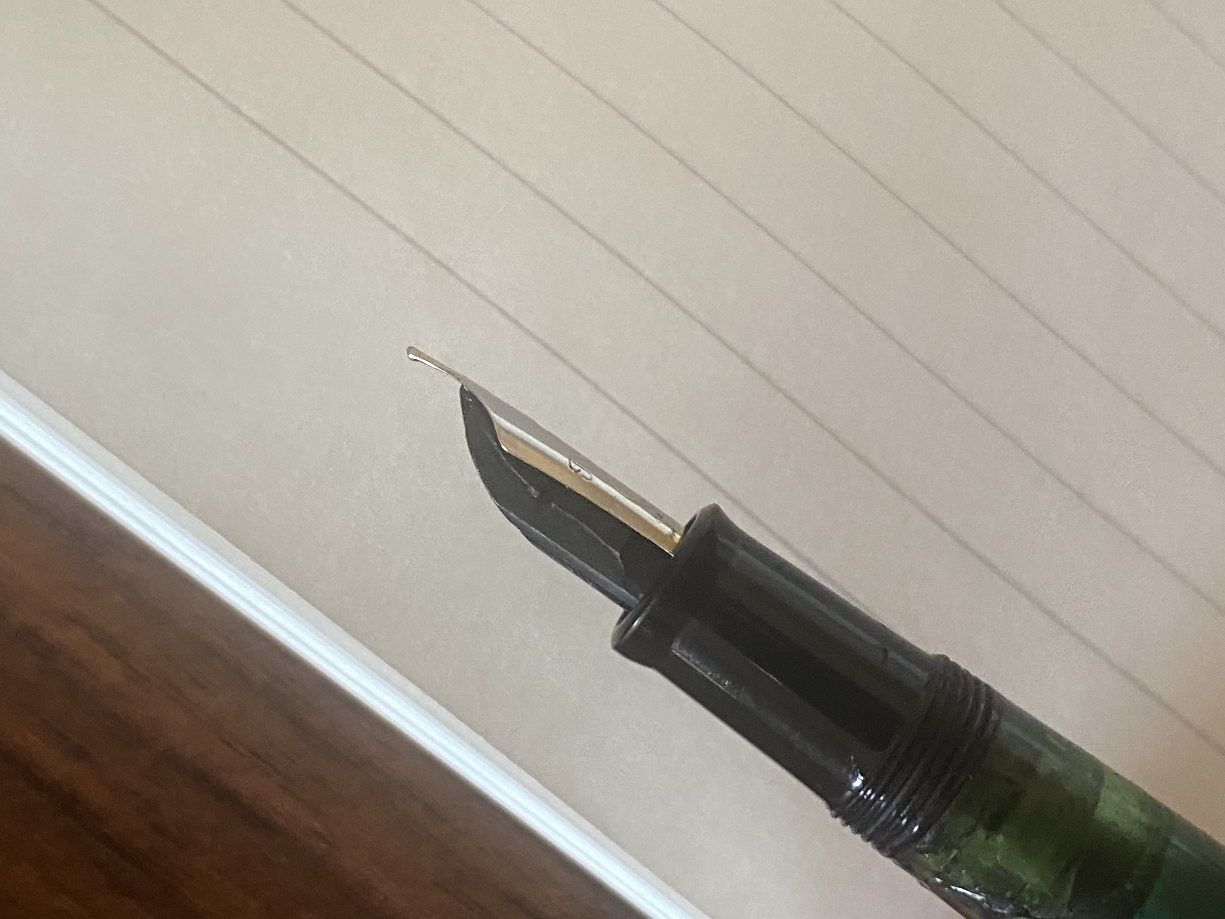 Il pennino non sembra rotto. Sembra poco centrato rispetto all'alimentatore. Un'aletta dell'alimentatore invece è rotta.