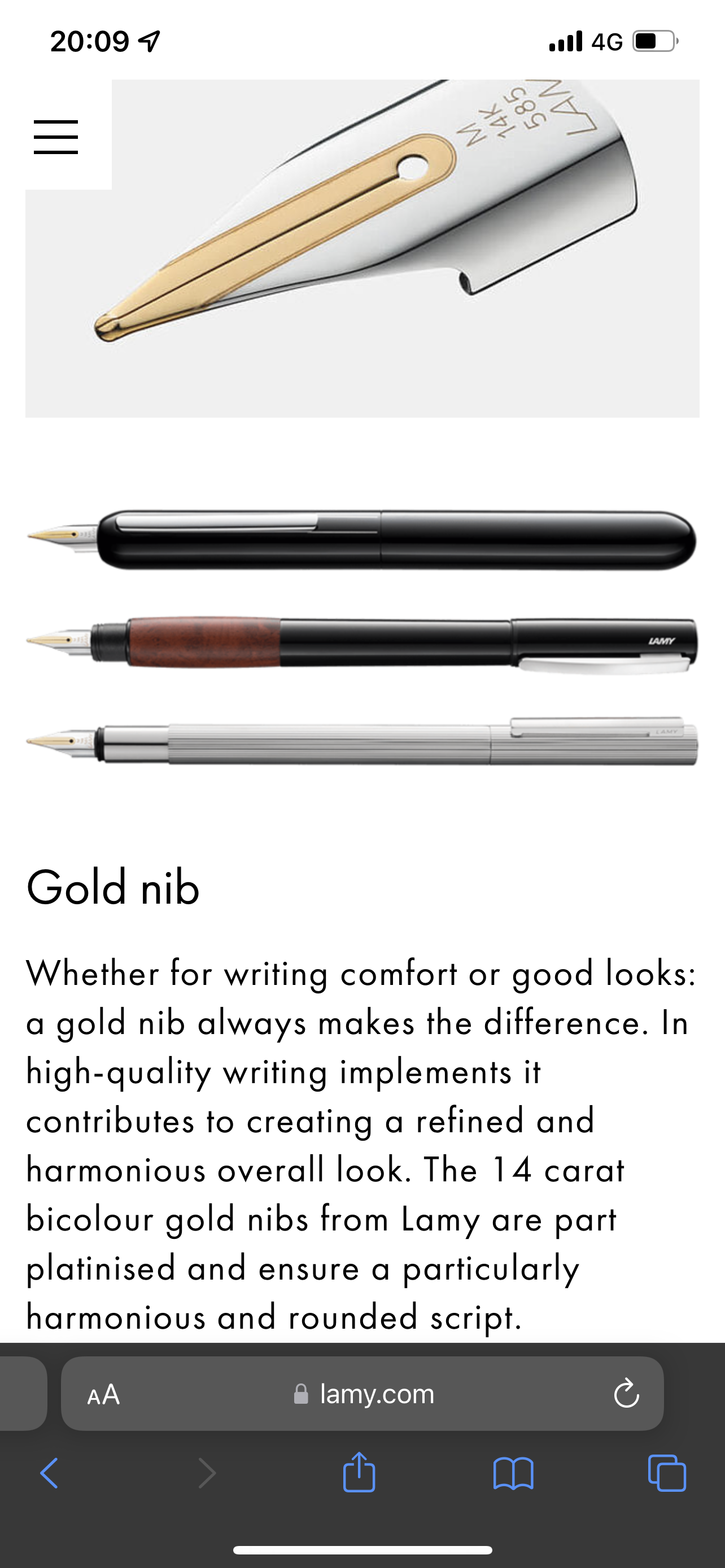 Nessuno ha la verità in tasca e nessuno avrà voglia di fondere un pennino Lamy per verificare se è d’oro oppure no, però possiamo tranquillamente fidarci di Lamy che ci dice che il suo è un pennino 14K. Avendone uno posso confermarti che è un unico pezzo con una parte rutheniata (il pennino è nero). Il comportamento di questi pennini è abbastanza diverso da quelli di acciaio (mi riferisco sempre ai pennini Lamy), ed offrono una gradevole elasticità.dueeffe ha scritto: ↑domenica 24 luglio 2022, 4:58