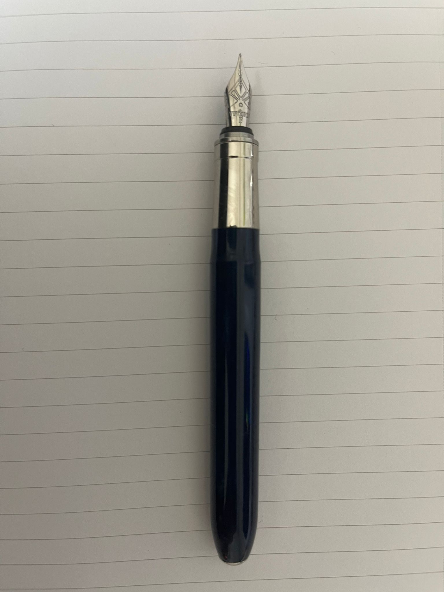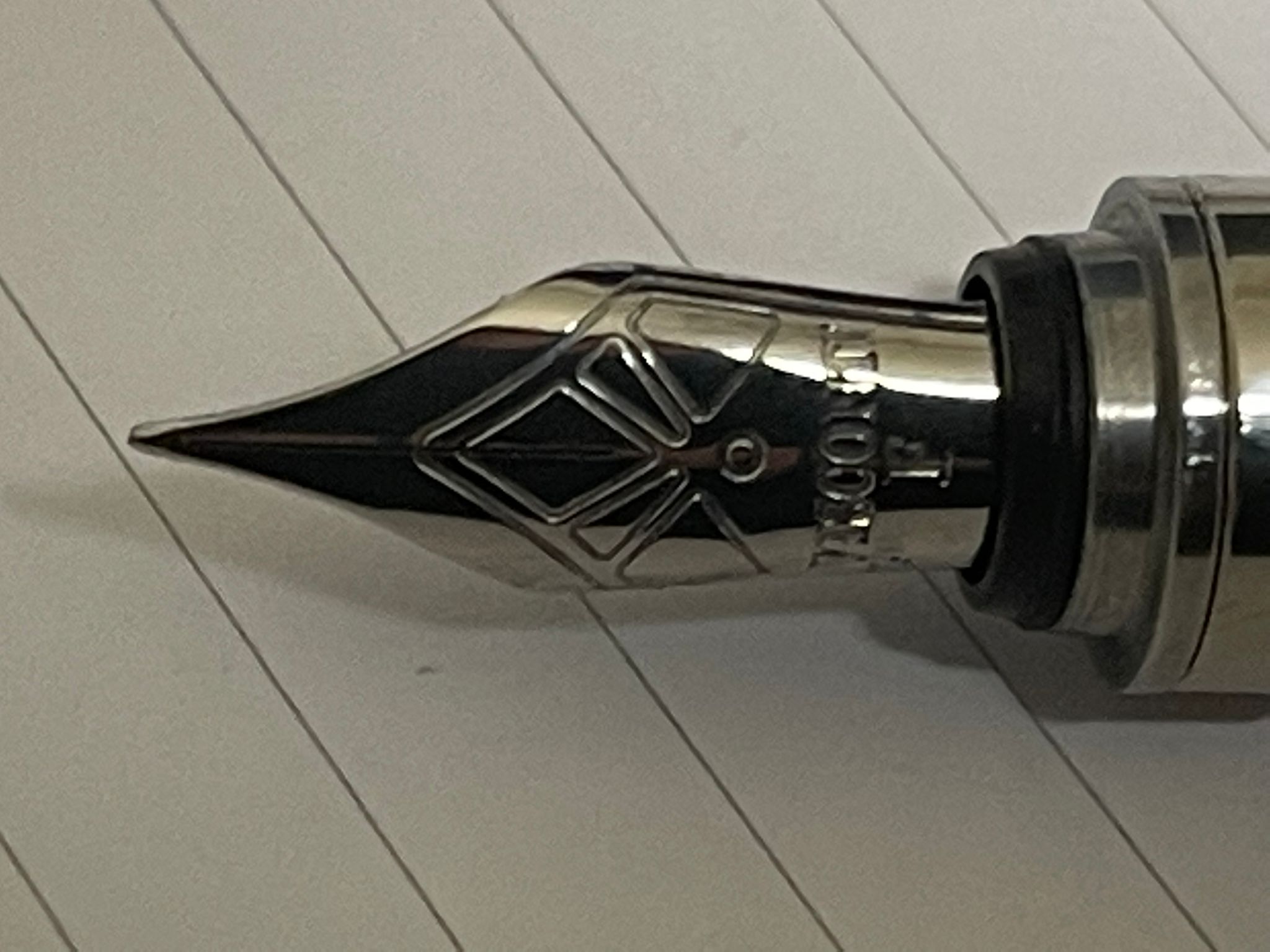 La mia ha il pennino precedente, quello con lo sfiato a mezzaluna, di cui in passato si è parlato male, ma il mio funziona benissimo. Credo sia lo stesso pennino che montava la Van Gogh, ossia un Bock 076. Il mio è un M generoso, il ché a me piace.