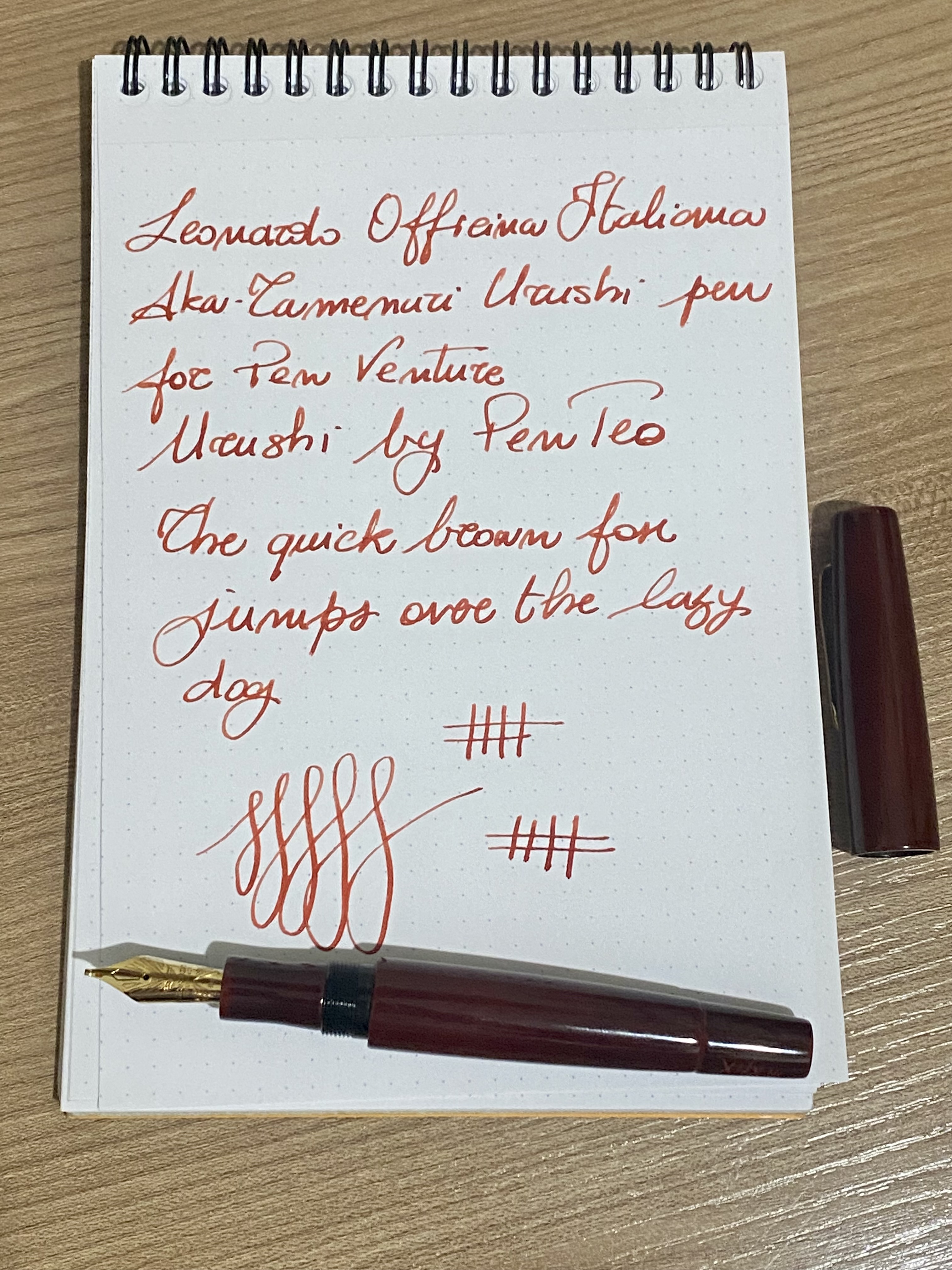 In definitiva non posso che essere, come al solito, estremamente soddisfatto di questa realizzazione di Leonardo, un marchio verso cui non nascondo la mia ammirazione. Non è una penna che costa due lire e neanche facile da trovare, ma il lavoro artigianale che c’è dietro si paga, i materiali sono di prima qualità, la realizzazione è senza compromessi e abbiamo un pennino in oro e ricarica a pistone. Personalmente non la trovo seconda a nessuna realizzazione in tema Giapponese sotto nessun aspetto e ora, ciliegina sulla torta, abbiamo anche il pennino fatto in casa!