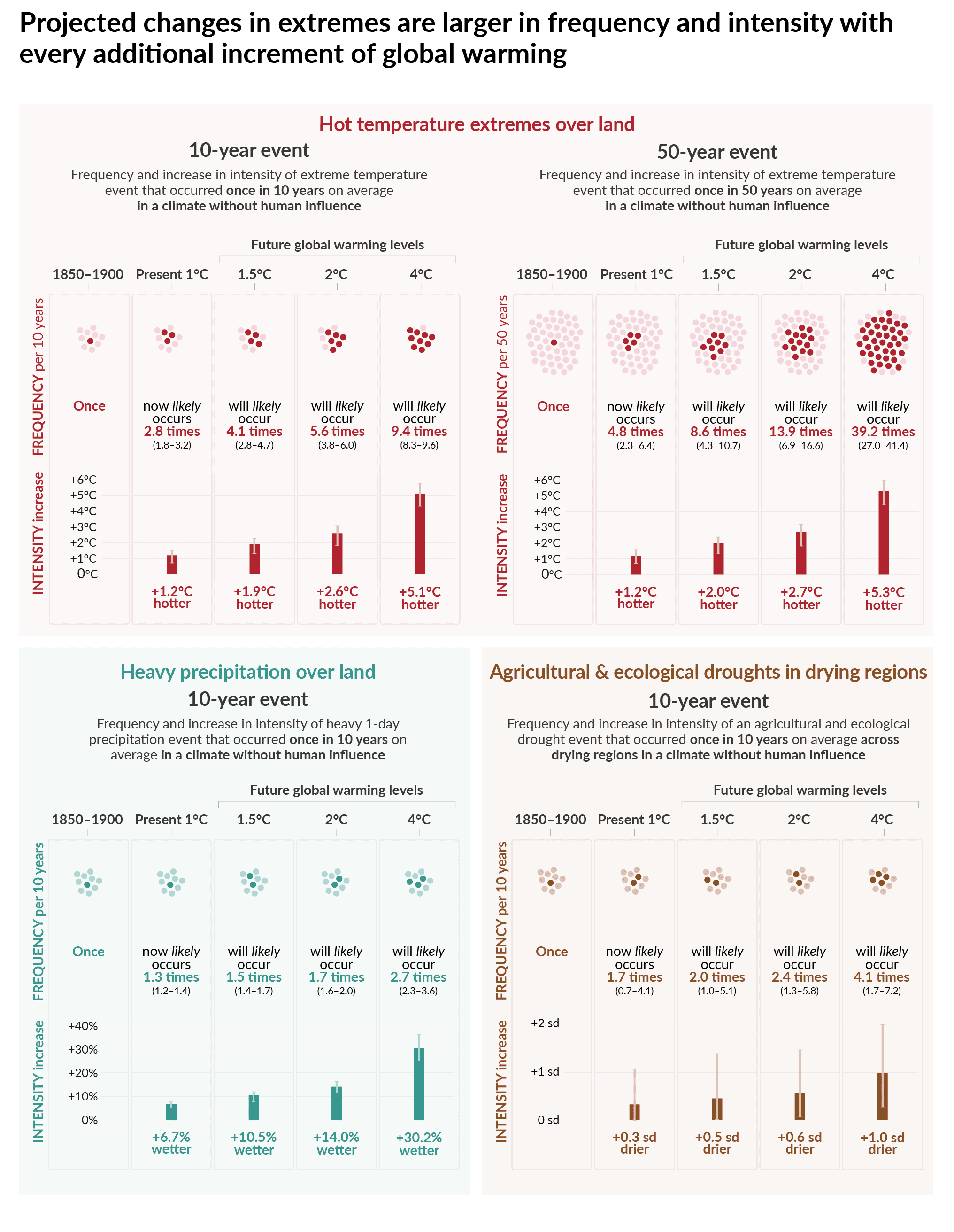 Emissioni di CO2 (NASA) Storico della temperatura, osservato e simulato (IPCC, AR6) Cause del riscaldamento globale (IPCC, AR6) Effetti del riscaldamento a 1.5 gradi Celsius (IPCC, AR6) Scenari futuri (gli scenari SSP1 1.9 e 2.6 sono da ignorare visto che sono praticamente irrealizzabili) (IPCC, AR6) Purtroppo non riesco a caricare le immagini in alta definizione. Se foste interessati, cercatele tra le seguenti fonti: