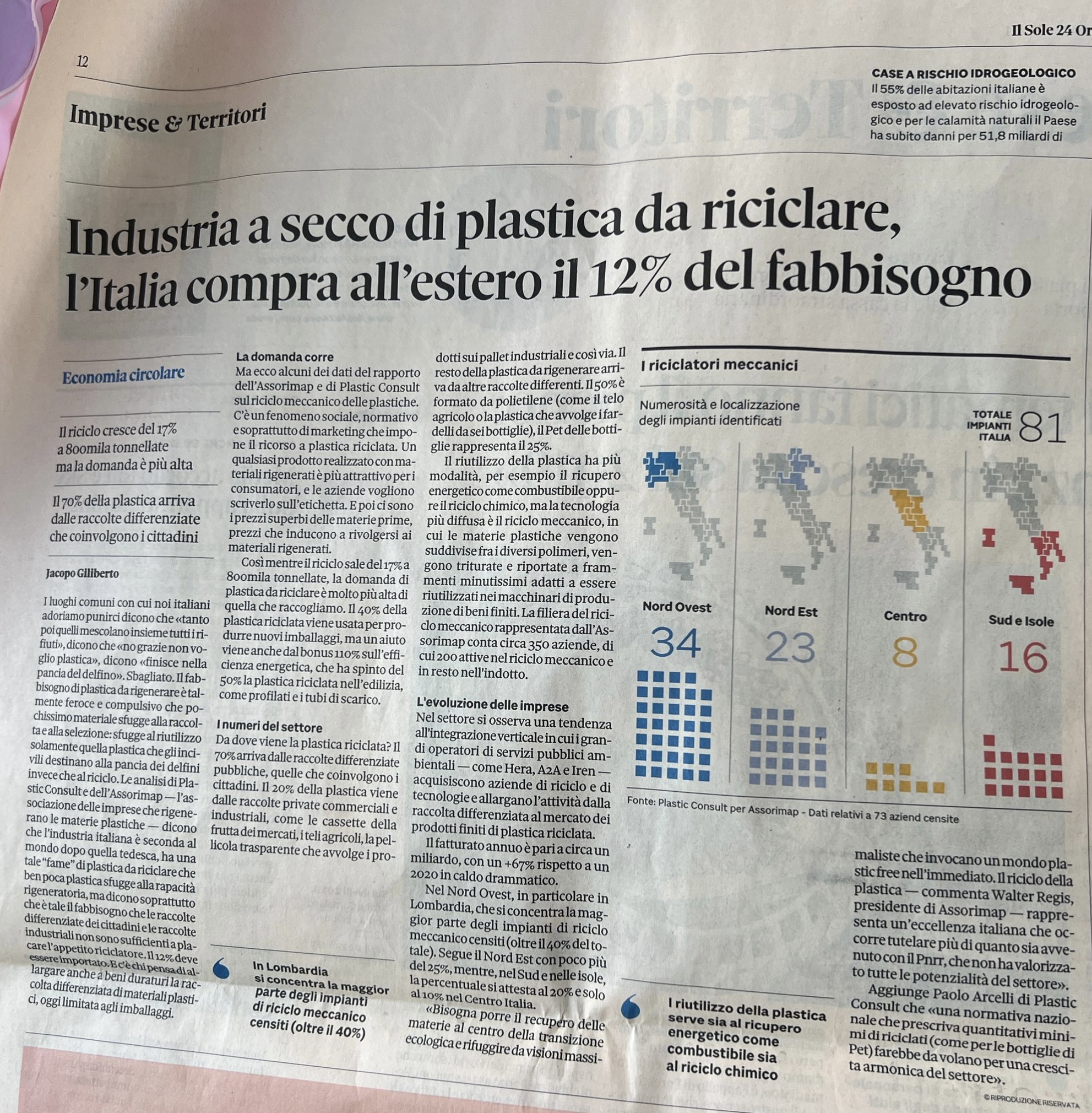 Articolo del Sole 24 ore di qualche giorno fa. Lavoro nell’azienda di famiglia che ricicla PVC dal 1973 e di questi articoli se ne trovano a bizzeffe, ma poi si incolpa la plastica