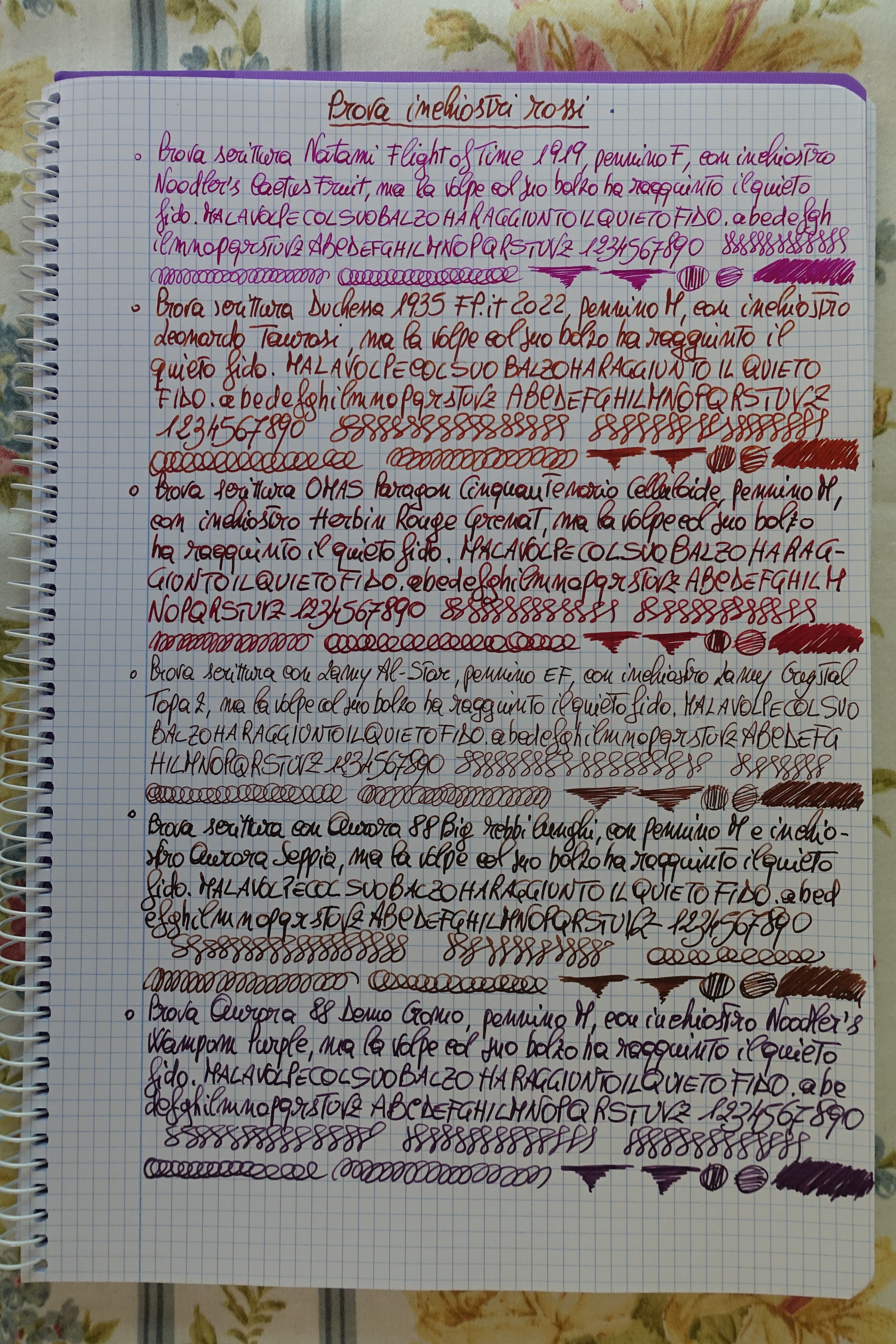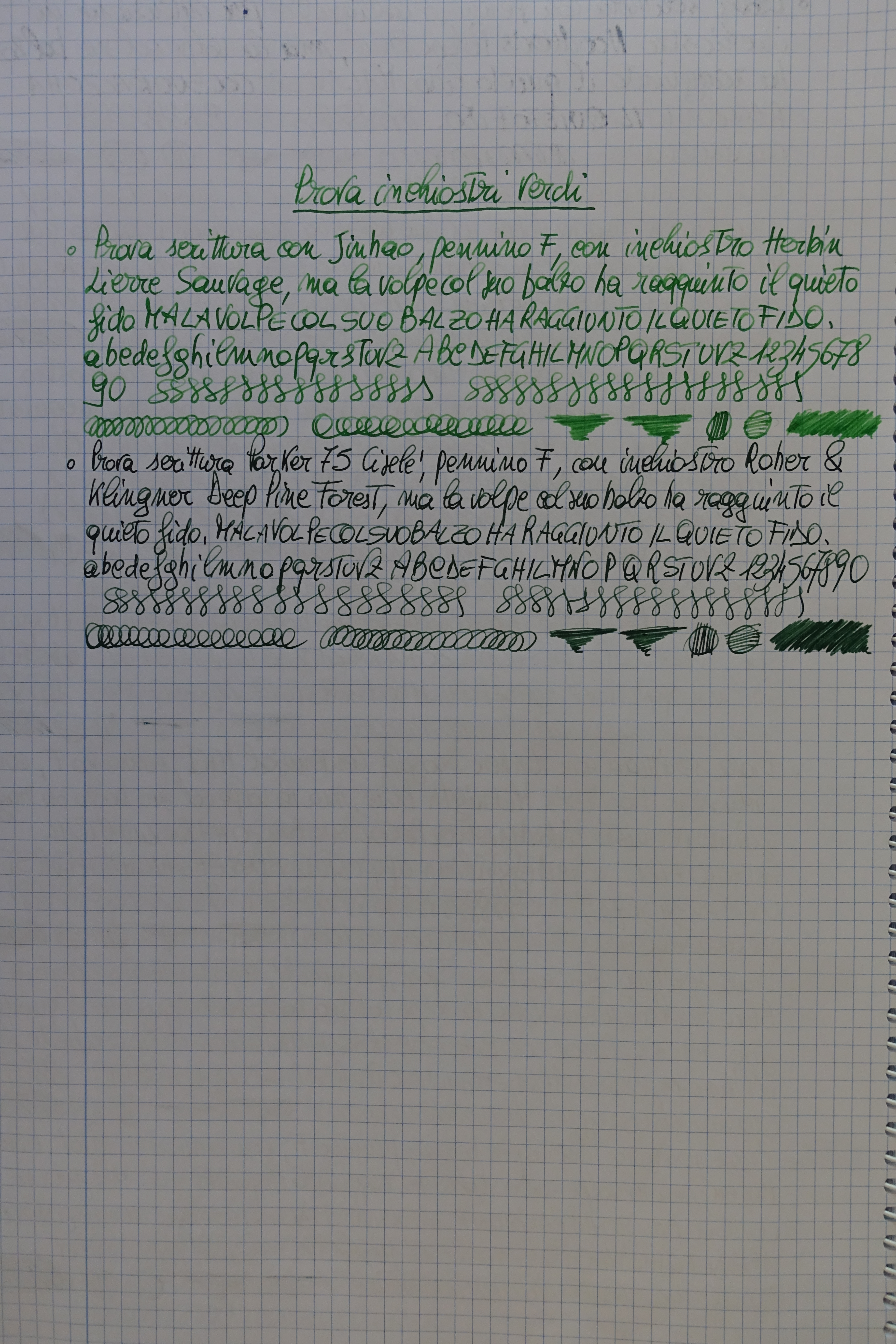 Questa invece è la prova di scrittura dei vari inchiostri con penne diverse su carta Oxford 80 g/mq :