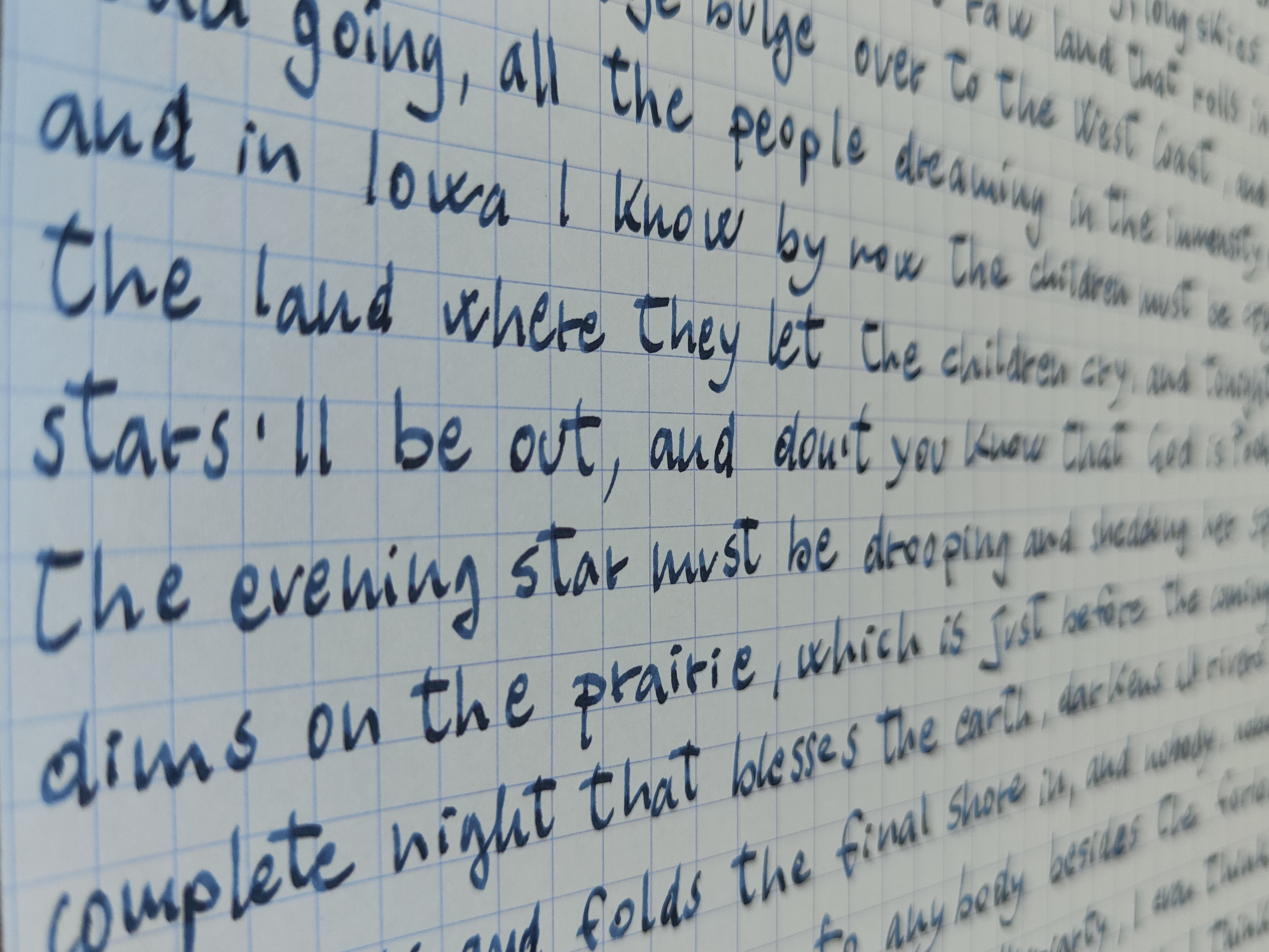 Il pennino Architect si adatta, come il CSI, alla mia scrittura "obliqua." Inizialmente, l'ho caricato con il Rohrer& Klingner Blu Mare. Sotto, un esempio dal quaderno di lavoro, carta Leuchtturm: