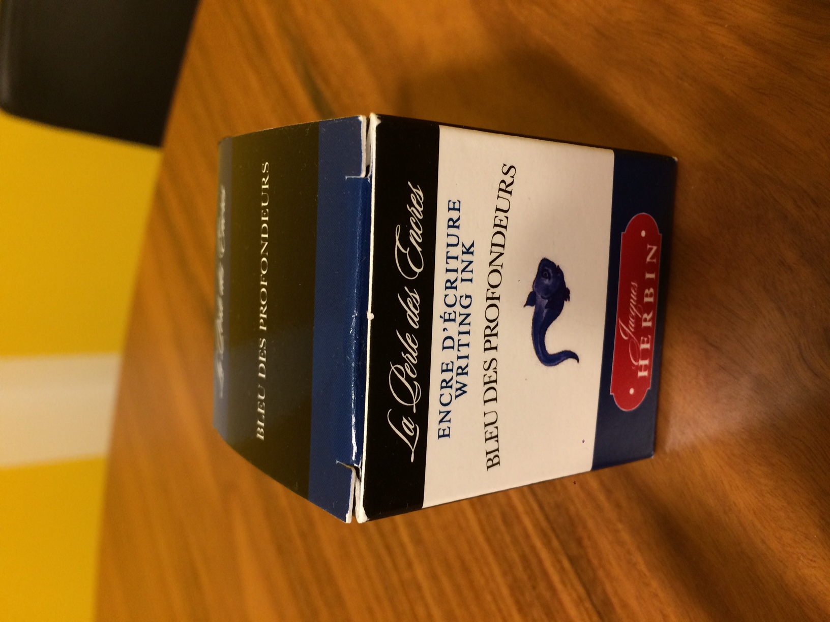 Avevo intenzione di inchiostrare la penna con un bel blue-black e, non avendone, ho deciso di prendere un calamaio di Herbin Bleu des Profondeurs sul "noto" negozio online che vende di tutto.