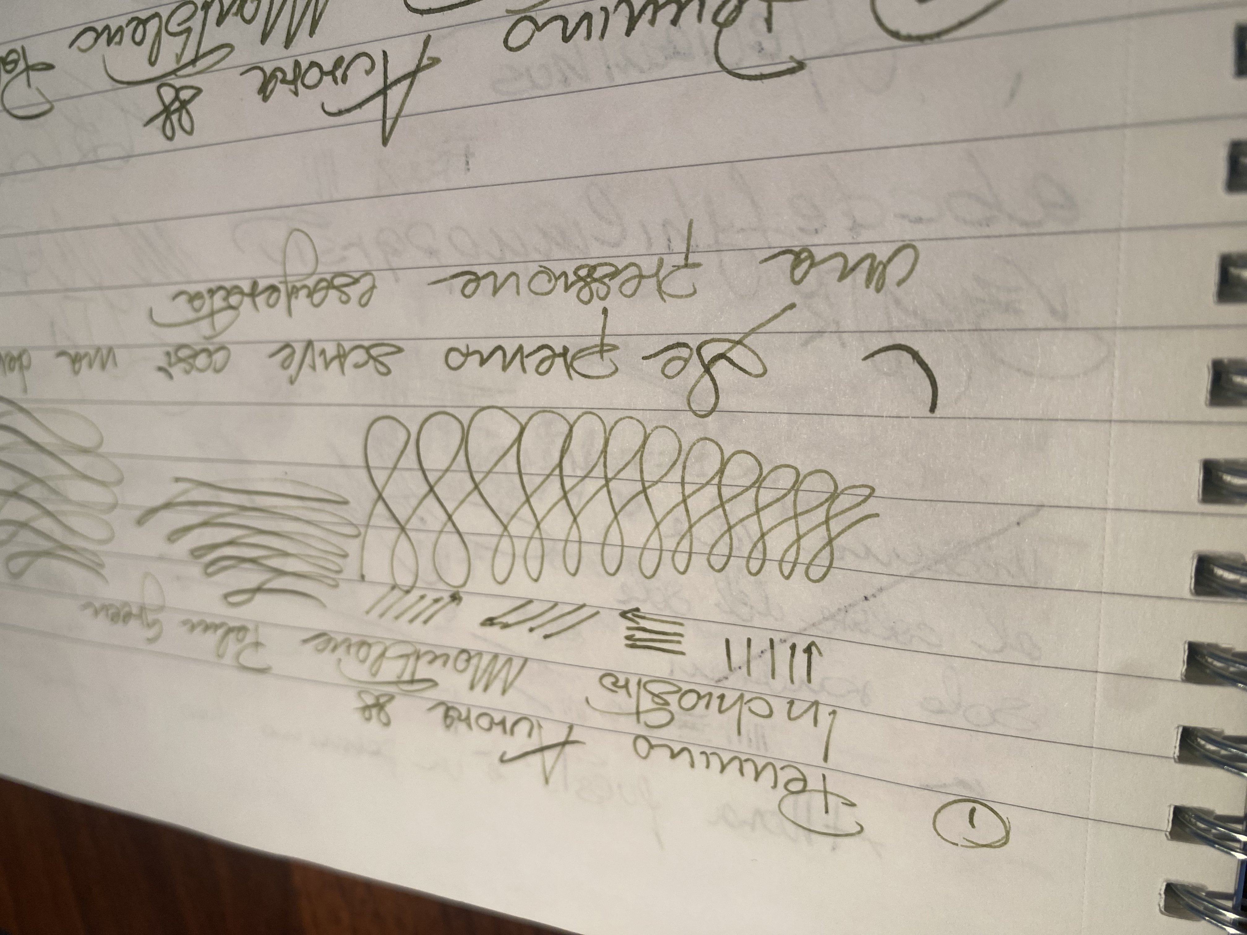 Il numero 2 è quello che uso di solito, anzi di rado, perché troppo abbondante; presumo sia un medio, è morbido e scrive così come vedete senza pressione alcuna.