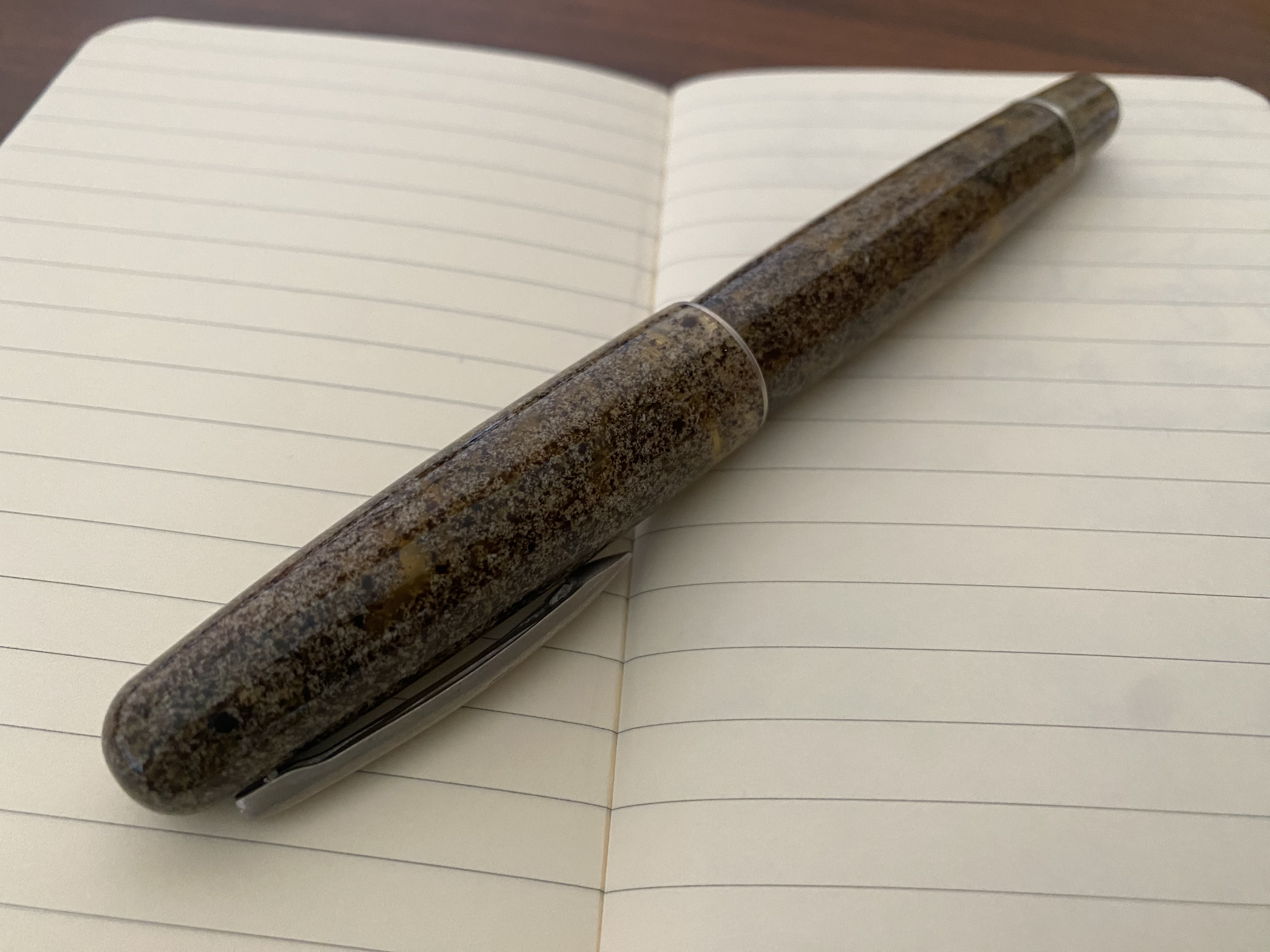 Oltre la forma quello che mi ha colpito subito e mi ha fatto comprare la penna è la sua semplicità, ovvero la mancanza di anelli, verette e ammennicoli vari che sinceramente ormai sono un po’ tutti uguali. La sento leggera, bilanciata: io non calzo mai il cappuccio.