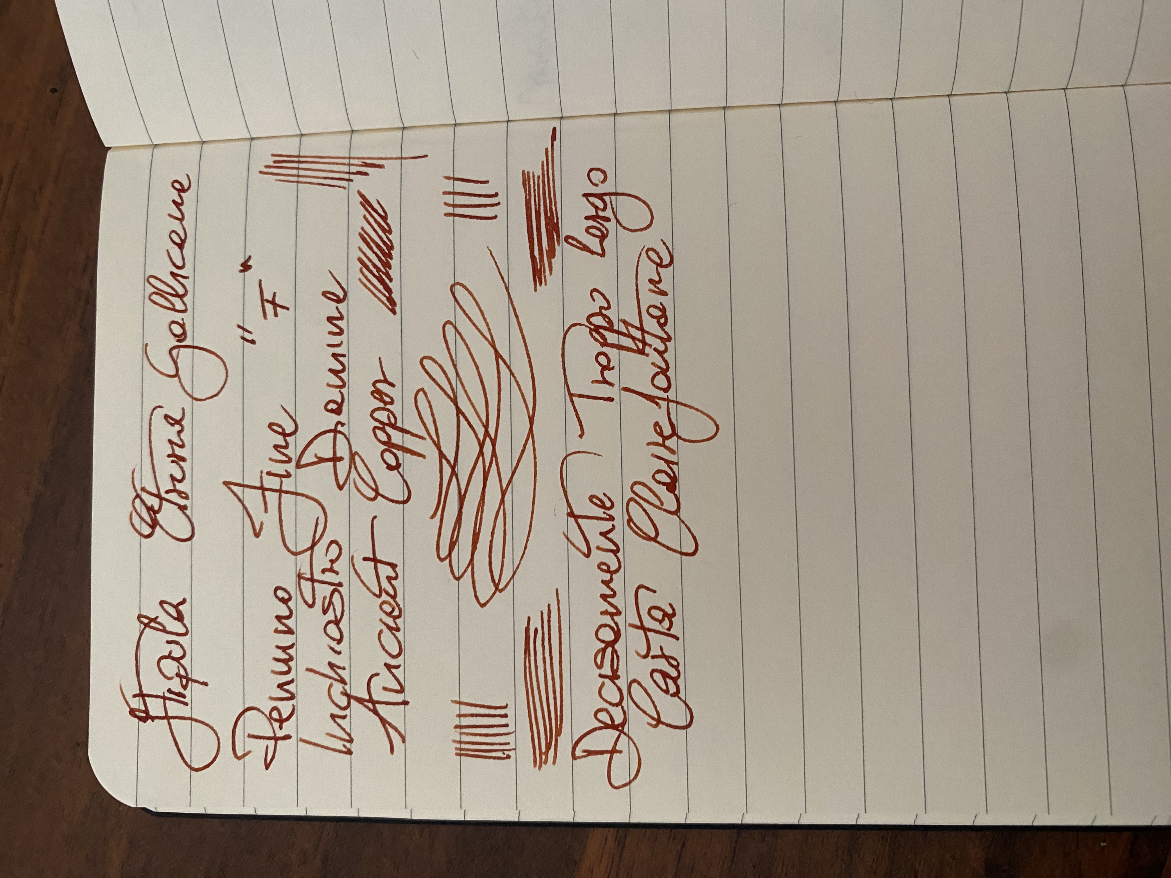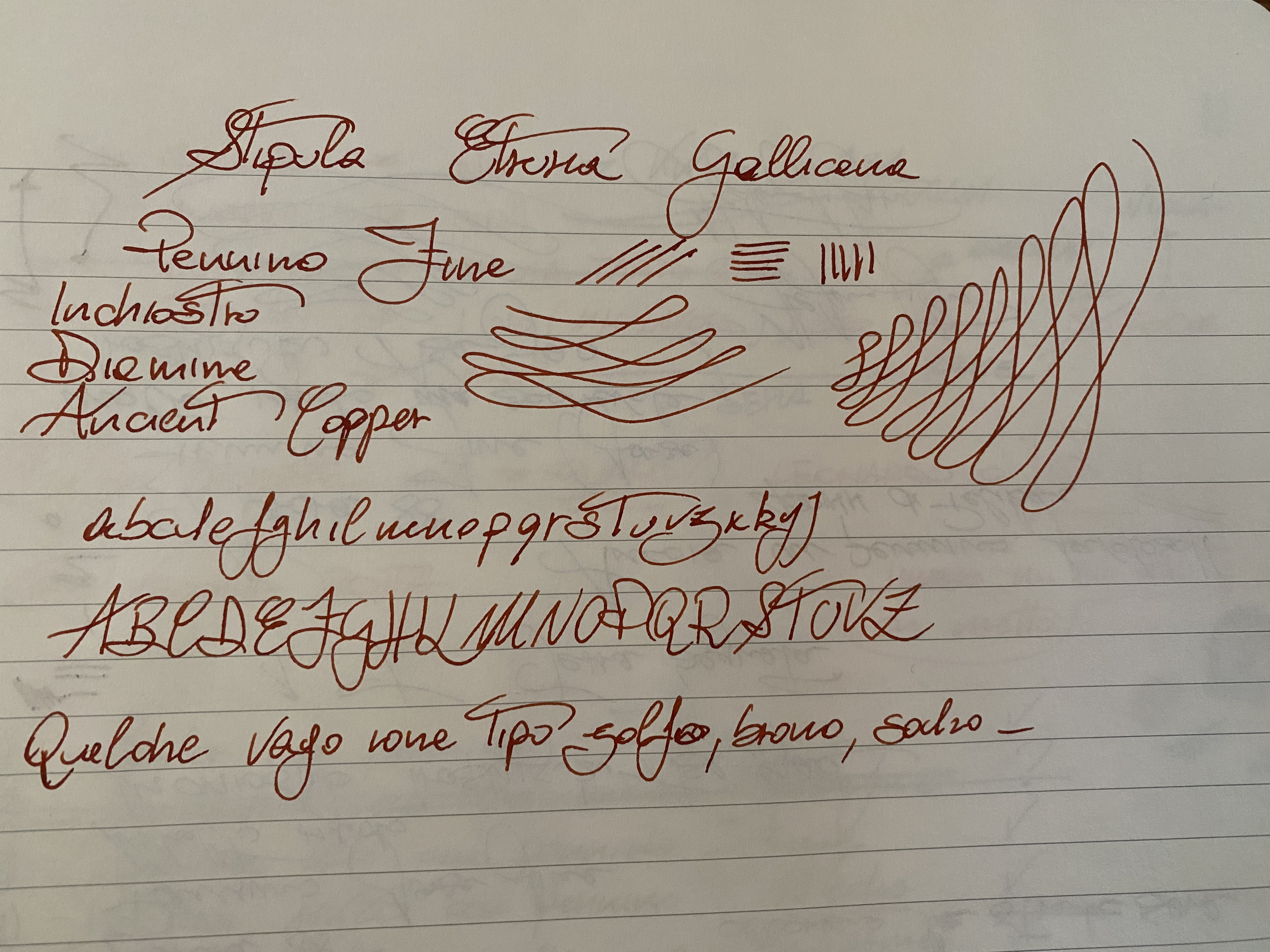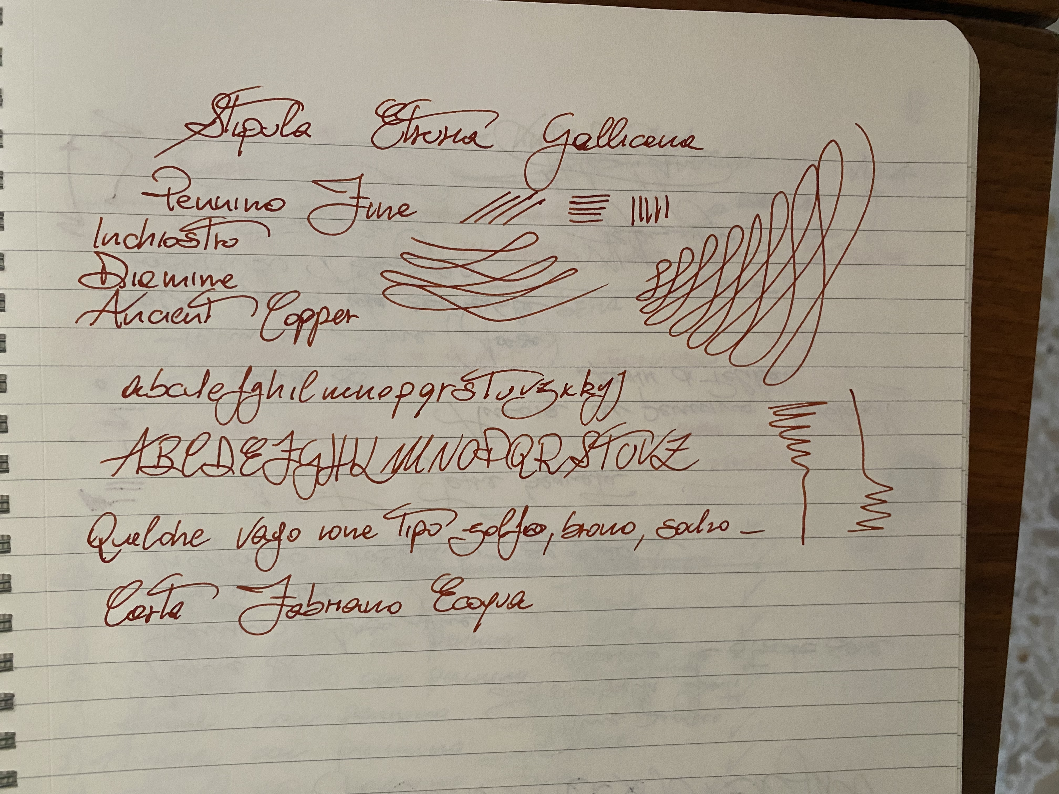 Allego prove fatte su ecoqua e clairefontaine con inchiostro diamine ancient copper. Se avete domande/suggerimenti dite pure, io intanto vado ad ordinare un pennino jowo extrafine da qualche parte…