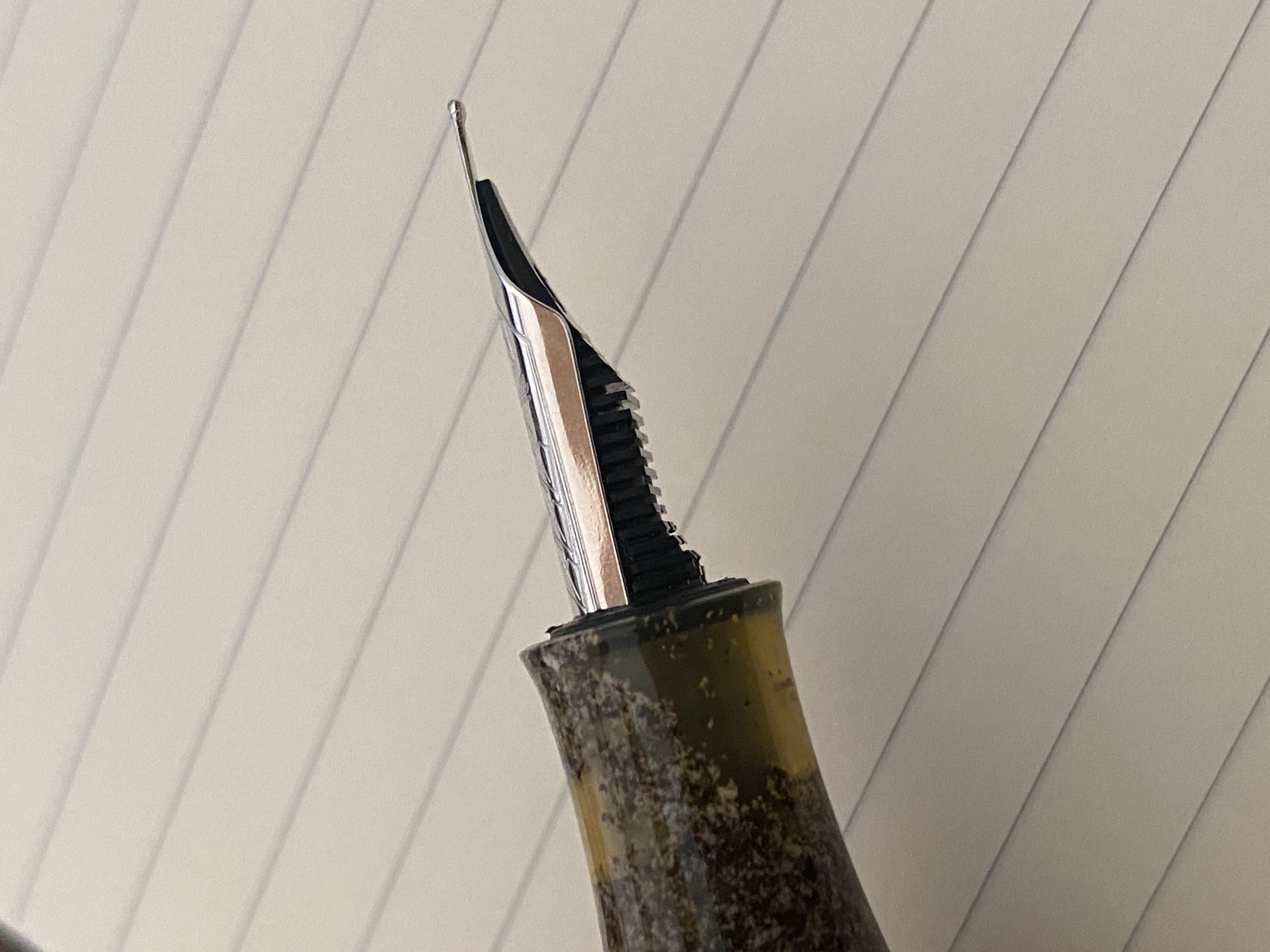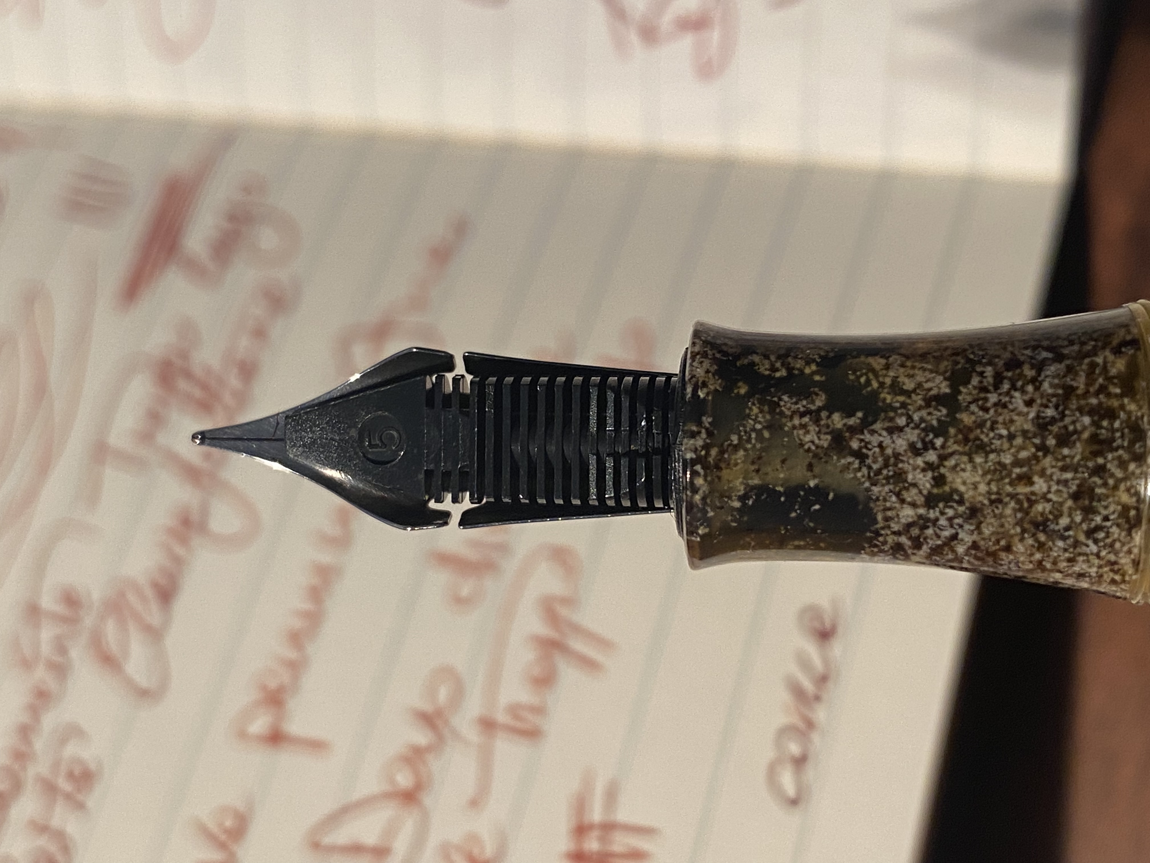 Il fatto è che il pennino F fine scrive molto molto largo, come un medio abbondante. Ora devo ordinare un pennino altrui perché, un EF non lo fanno, così mi è stato risposto. Per il resto non ha per ora manifestato problemi di scrittura, scrive bene regolare forse anche troppo!!