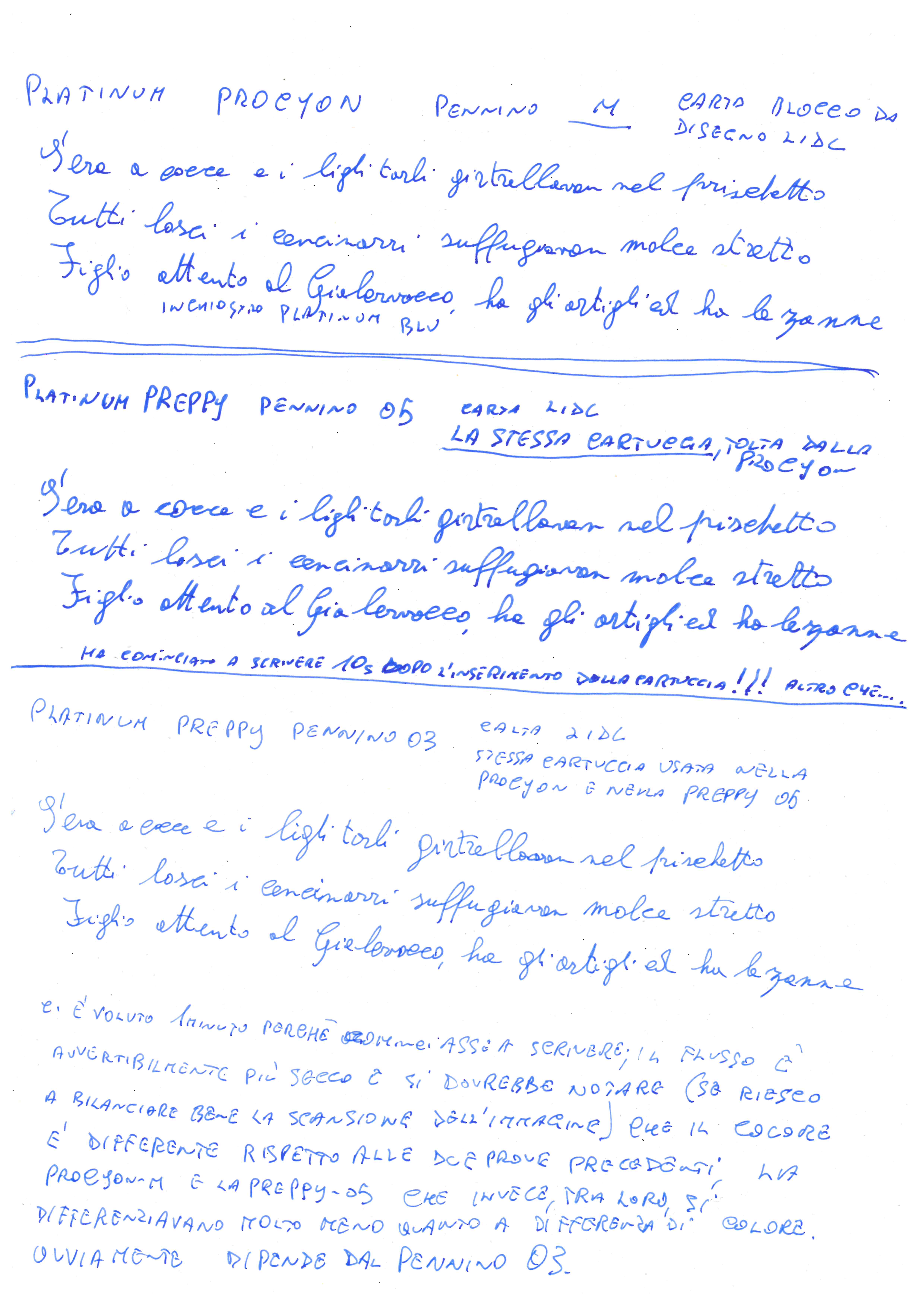 La cartuccia dell'inchiostro (platinum blu) è sempre la stessa, ed è stata trasferita da una penna all'altra