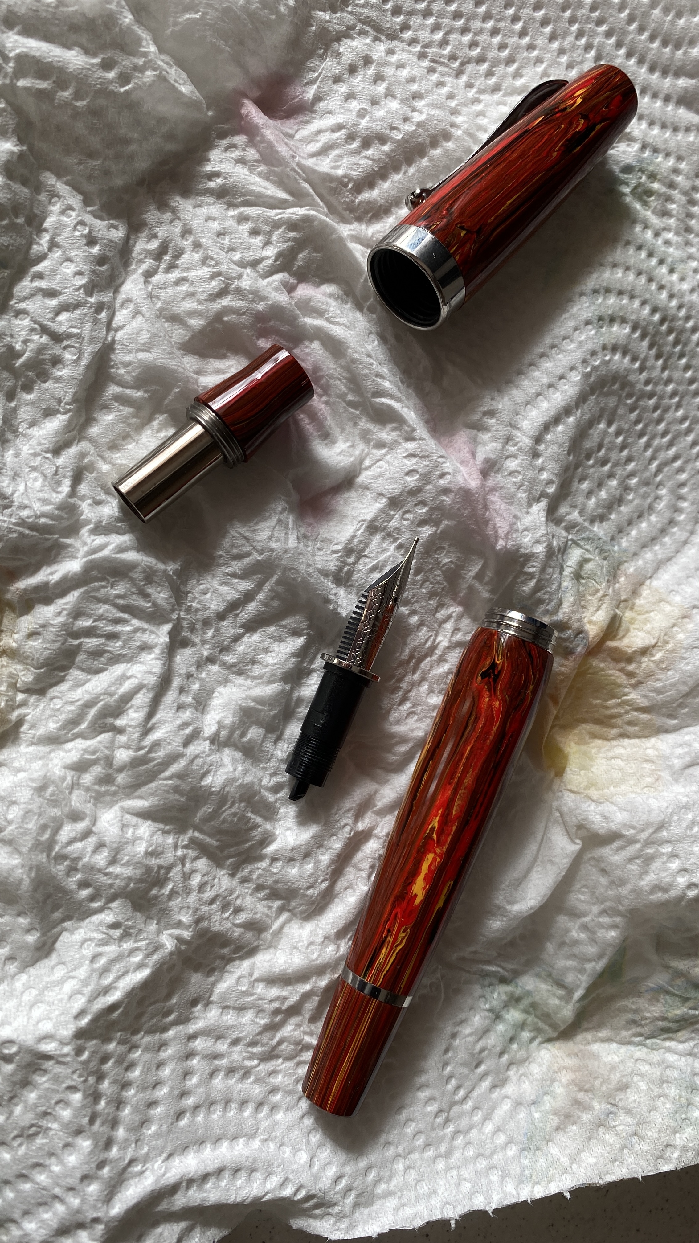 Le ultime parole famose… è un idrante con inchiostro Diamine Oxblood. E’ l’unica penna che abbia mai provato con tratto ancora più abbondante della Starwalker che già è esagerata. Probabilmente è stato detto ma ora non ricordo, il gruppo scrittura si può cambiare? Con gruppo Jowo? oppure Bock?