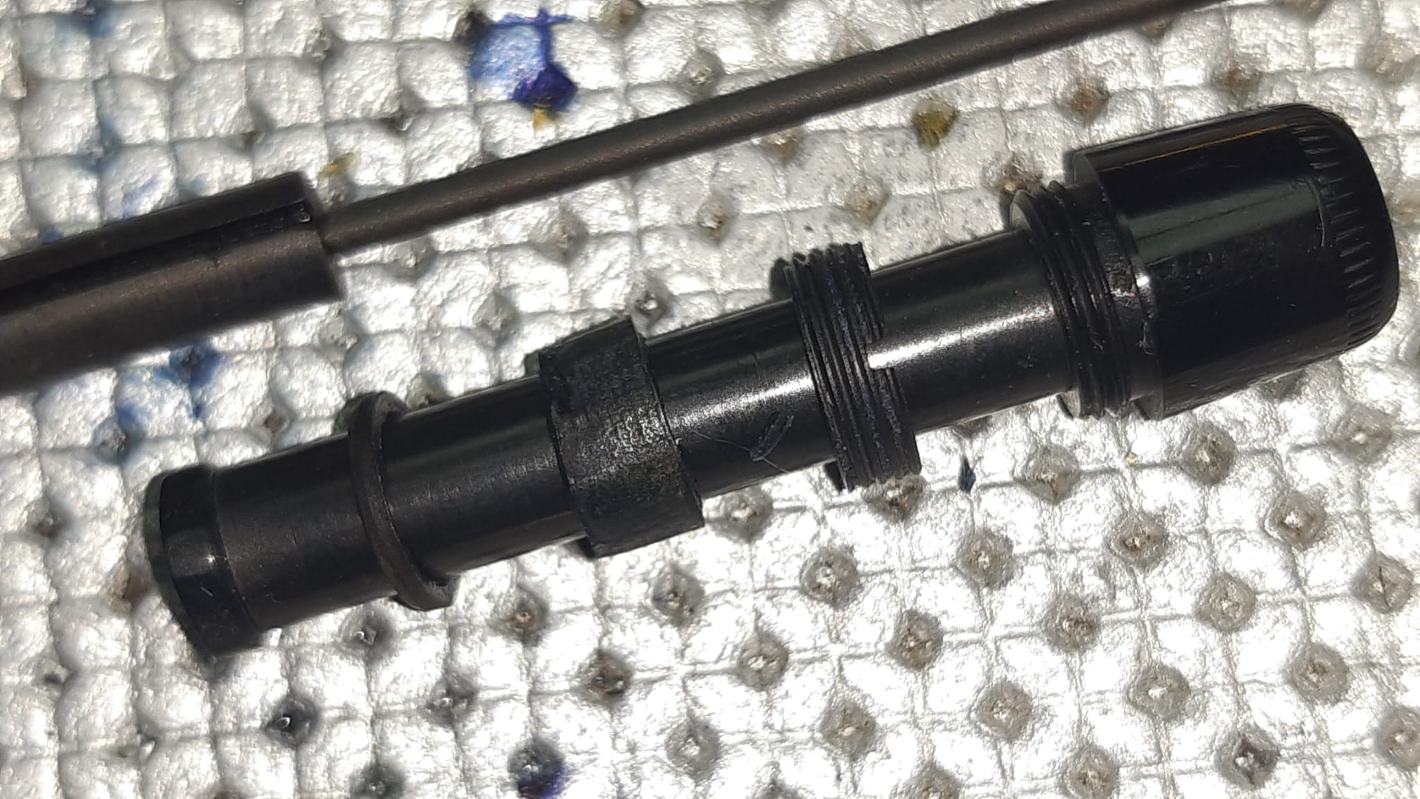 Le altre foto sono della prima che ho trovato, nera, versione con tre verette fine. Questa la ho fatta smontare da un riparatore perché mi sa che la vite dello stantuffo è incollata al fondello...infatti nemmeno chi me la ha riparata ha svitato quella ma ha usato una chiave per estrarre direttamente la ghiera filettata con tutto il blocco del pistone, sughero compreso. Poi non è nemmeno riuscito a svitare la piccola ghiera all'estremita del pistone che gli impedisce di sfilarsi da dietro, evidentemente incollata pure quella (la ha tagliata e sostituita con un ricambio altrimenti non sarebbe riuscito a inserire il suchero). E è impossibile svitare pure la sezione, pare incollata anche quella.