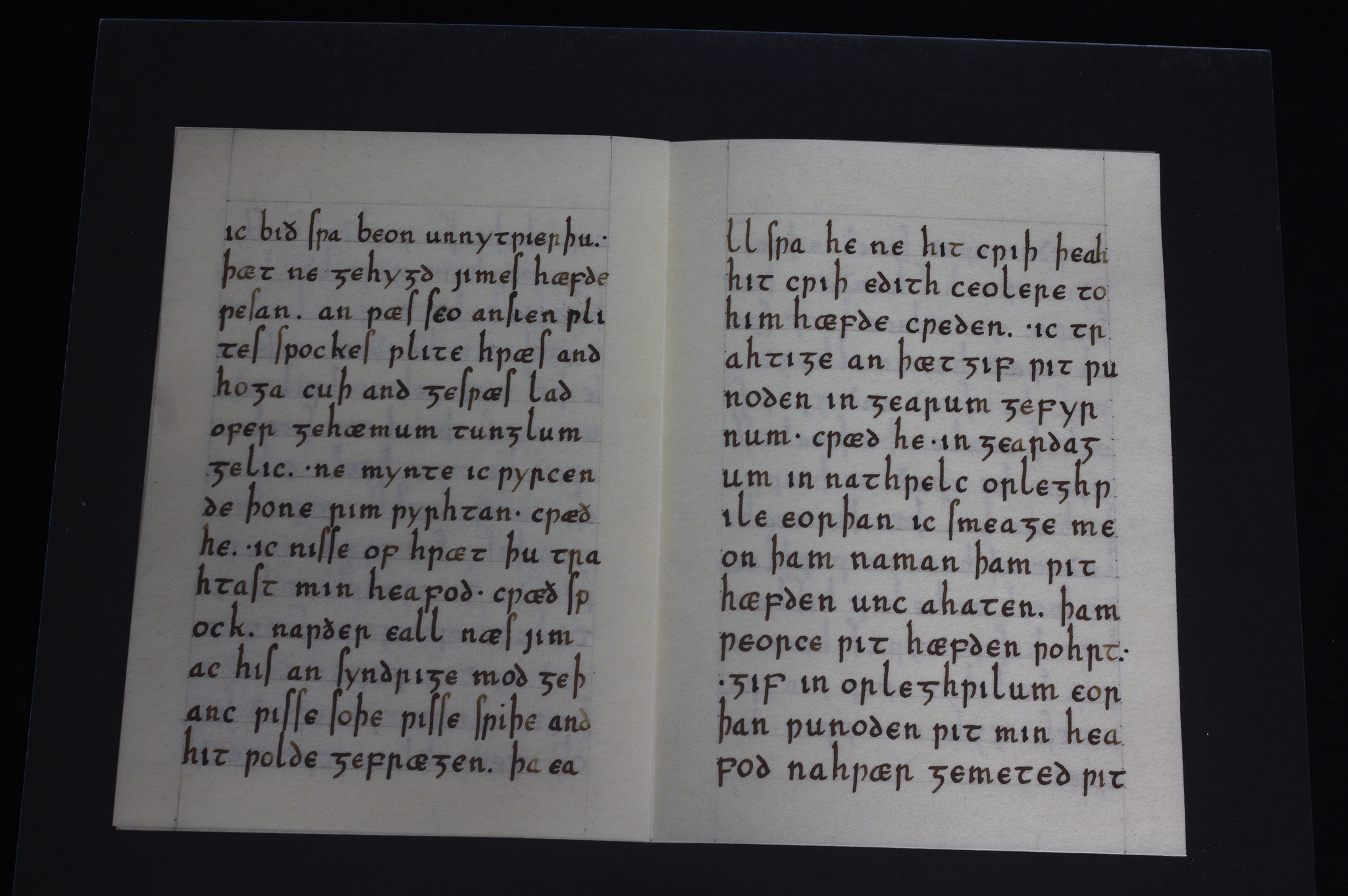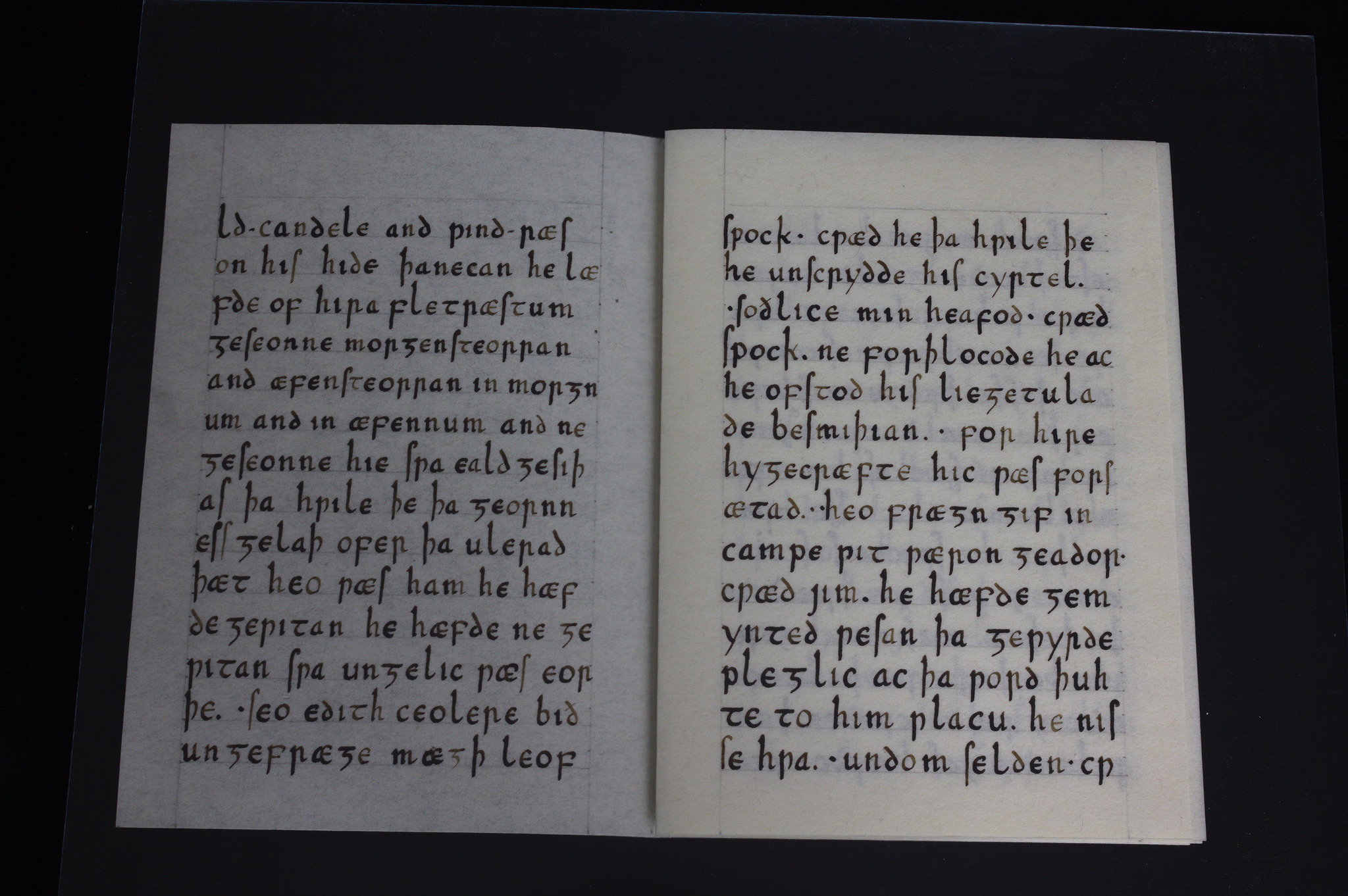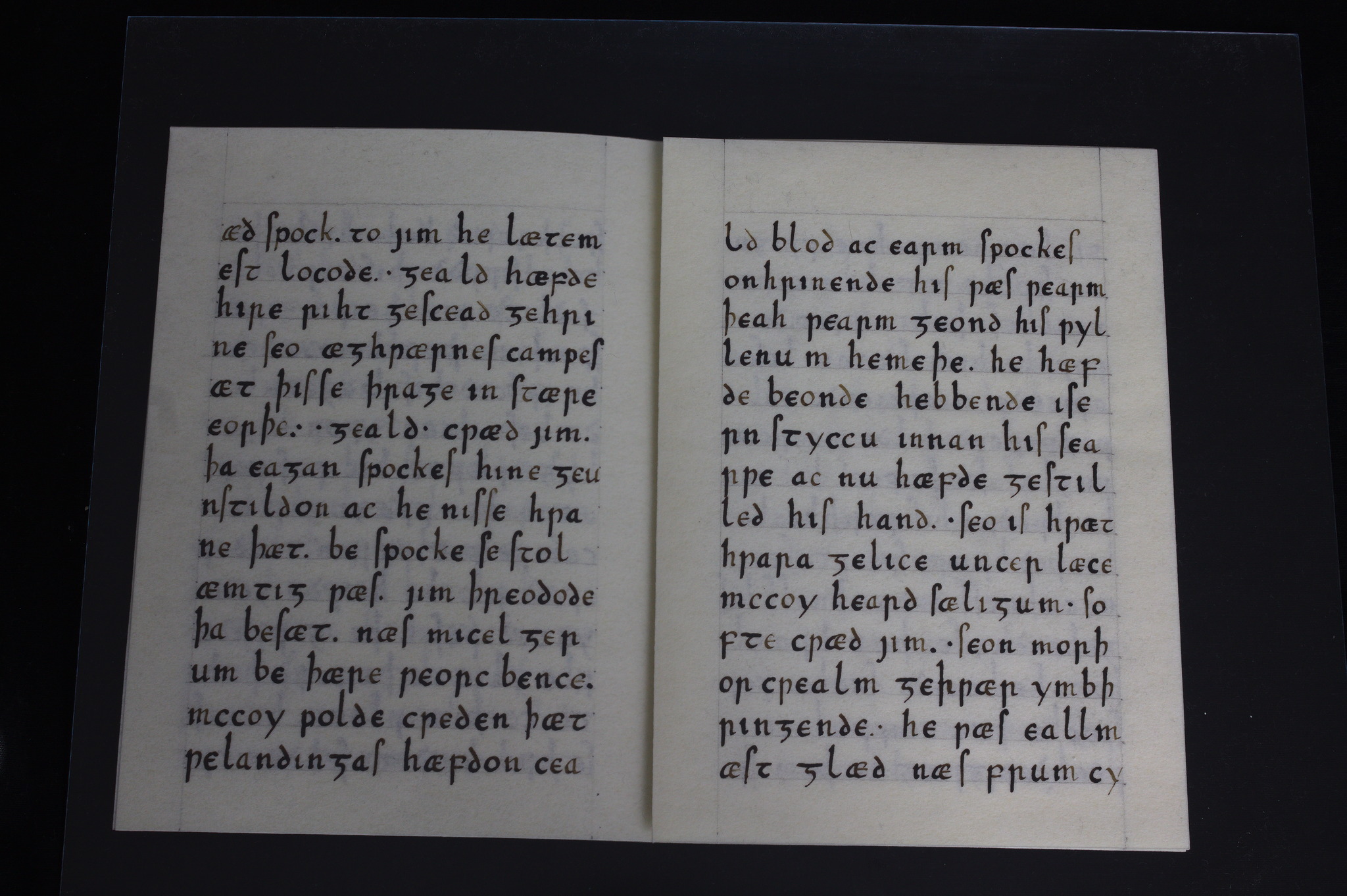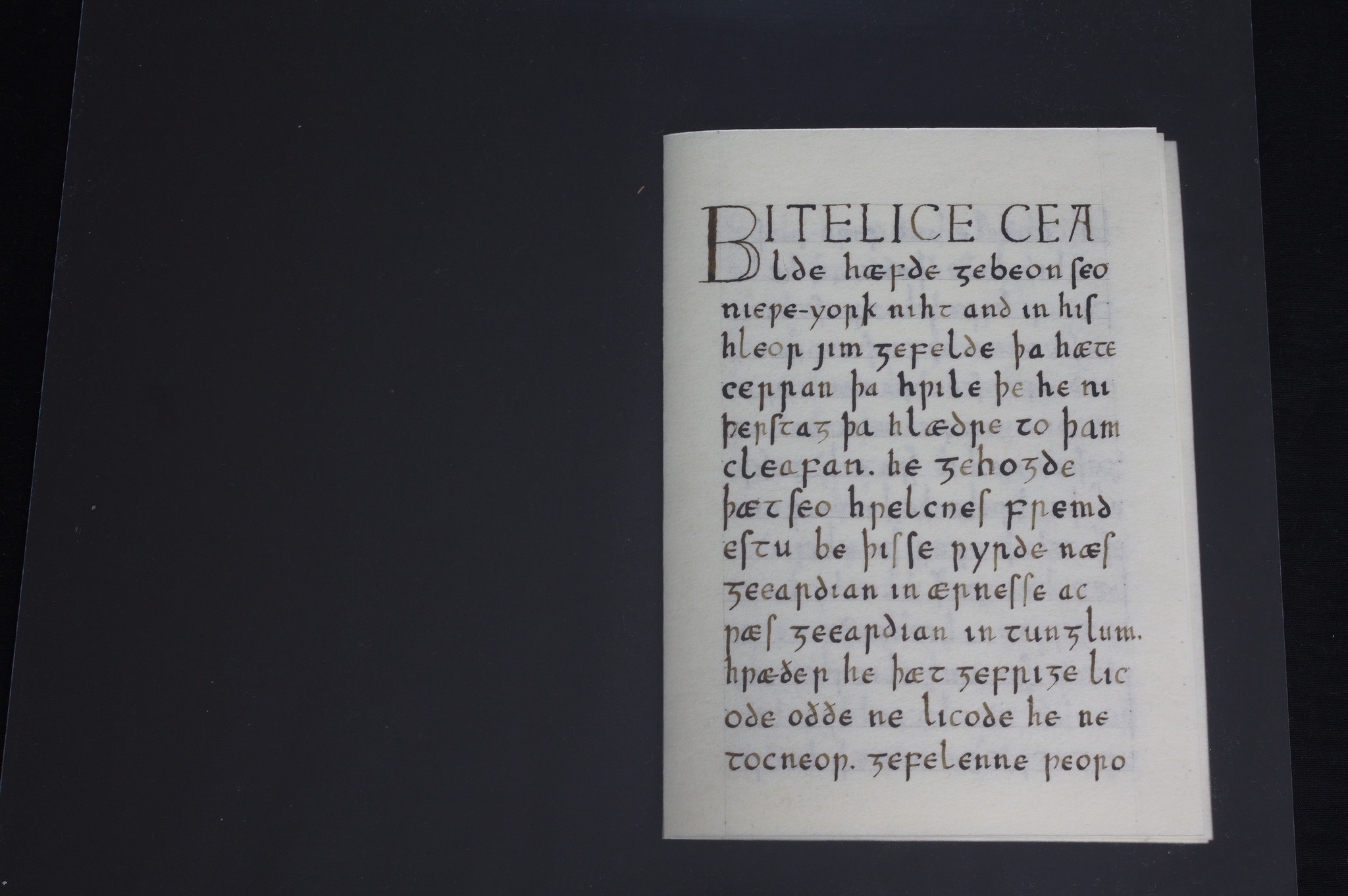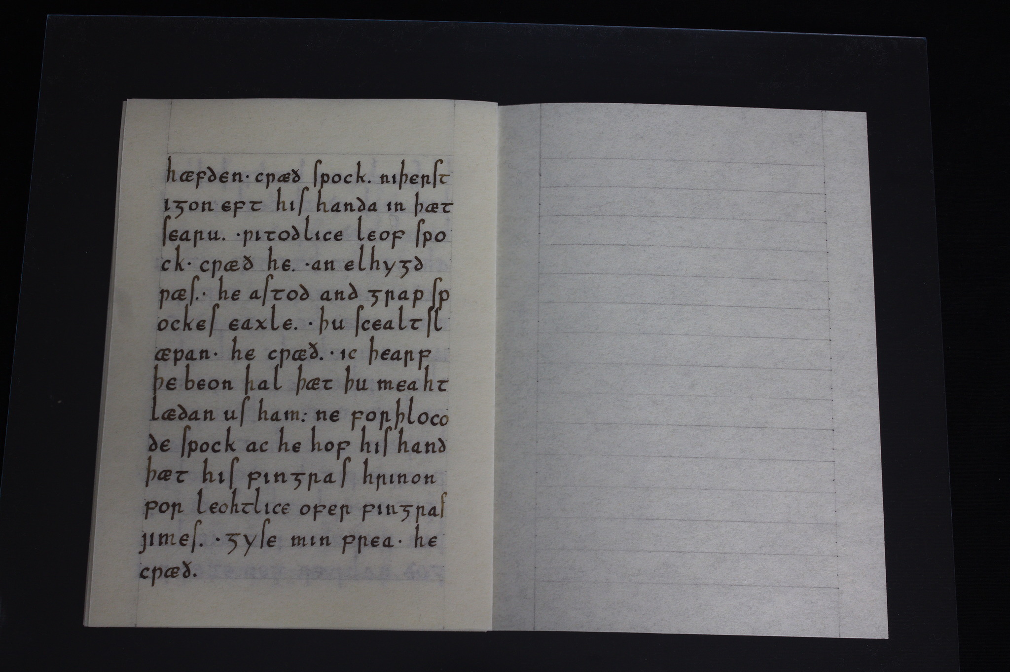 Però prima di dirvi che testo è provo a vedere se qualcuno indovina (almeno l'argomento generale): intanto posso dire che la lingua è Old English, e che ci sono tre parole sparse nel testo che potrebbero dare degli indizi, e sono tutte e tre presenti nella pagina di sinistra nella terza foto