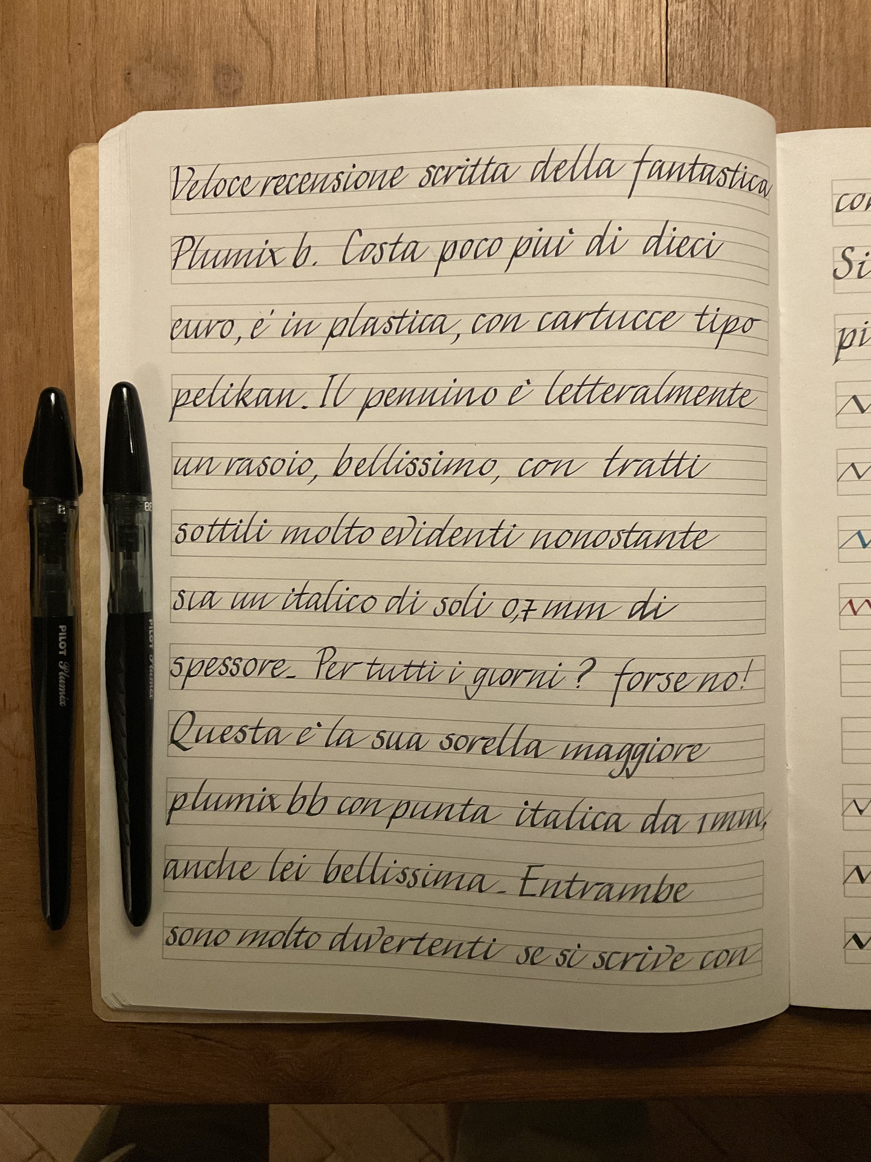 Ho provato anche io entrambe le Plumix B e BB, ma come penna da tutti i giorni è pessima: decisamente troppo affilato come pennino.