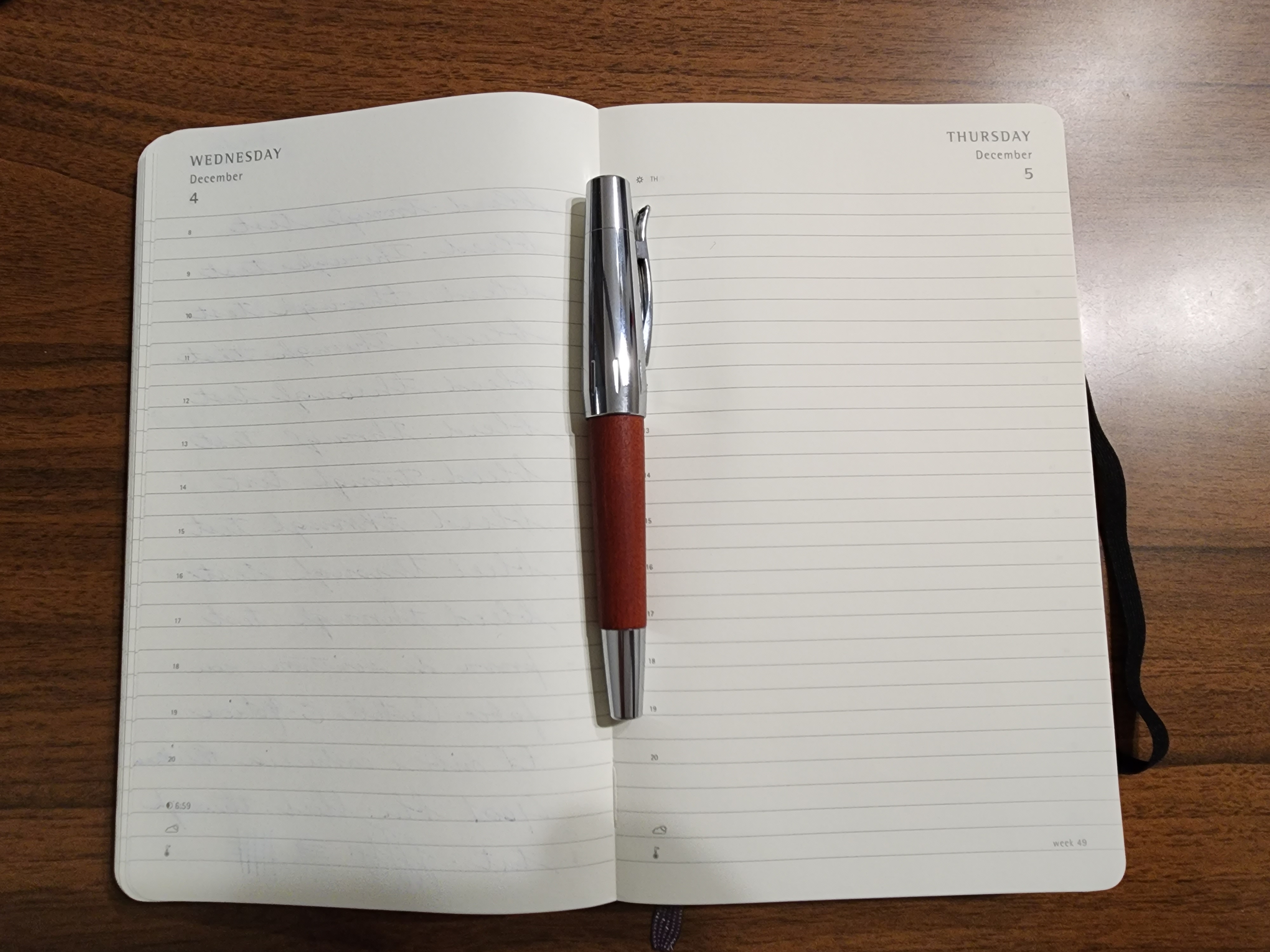 Io ho usato per tutto l'anno una Moleskine settimanale (settimana a sinistra, pagina note a destra), perché l'avevo presa con un super-sconto l'anno scorso (ultima rimasta, pagata 5€ in una cartoleria).