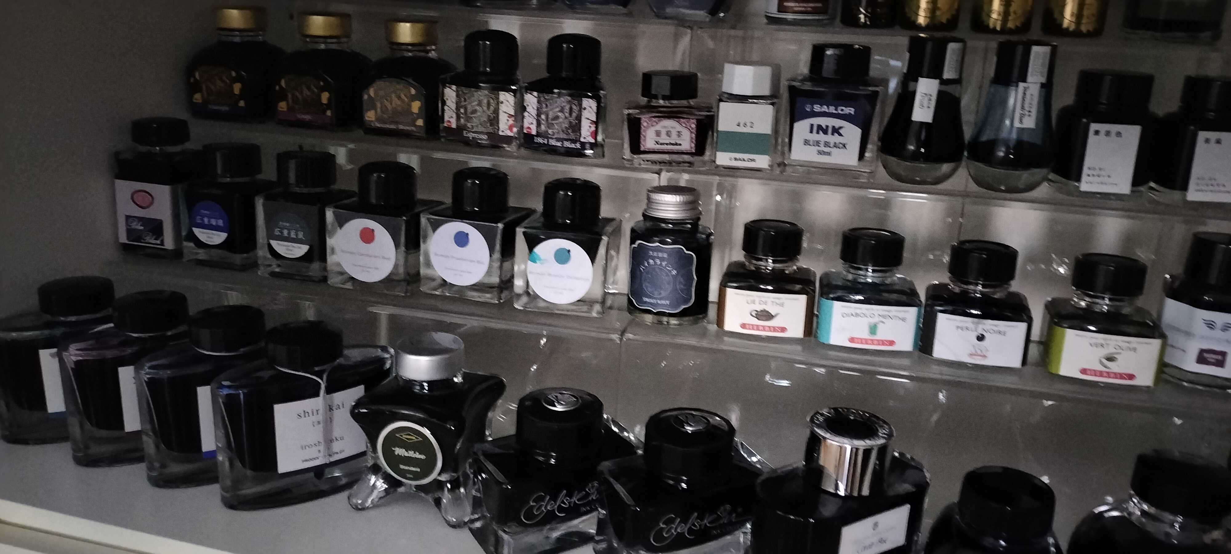 Li tenevo in un cassetto un tempo ma ogni volta dovevo tirar fuori diversi vetri prima di trovare quello giusto poi ho optato per degli espositori trovati in amazzonia e devo dire che sono un ottima soluzione fino a chè il numero di calamai riesce a starci poi ad un certo punto i posti si esauriscono anche gli spazi cosi come si esaurisce la pazienza della capo famiglia nonchè mia moglie ...